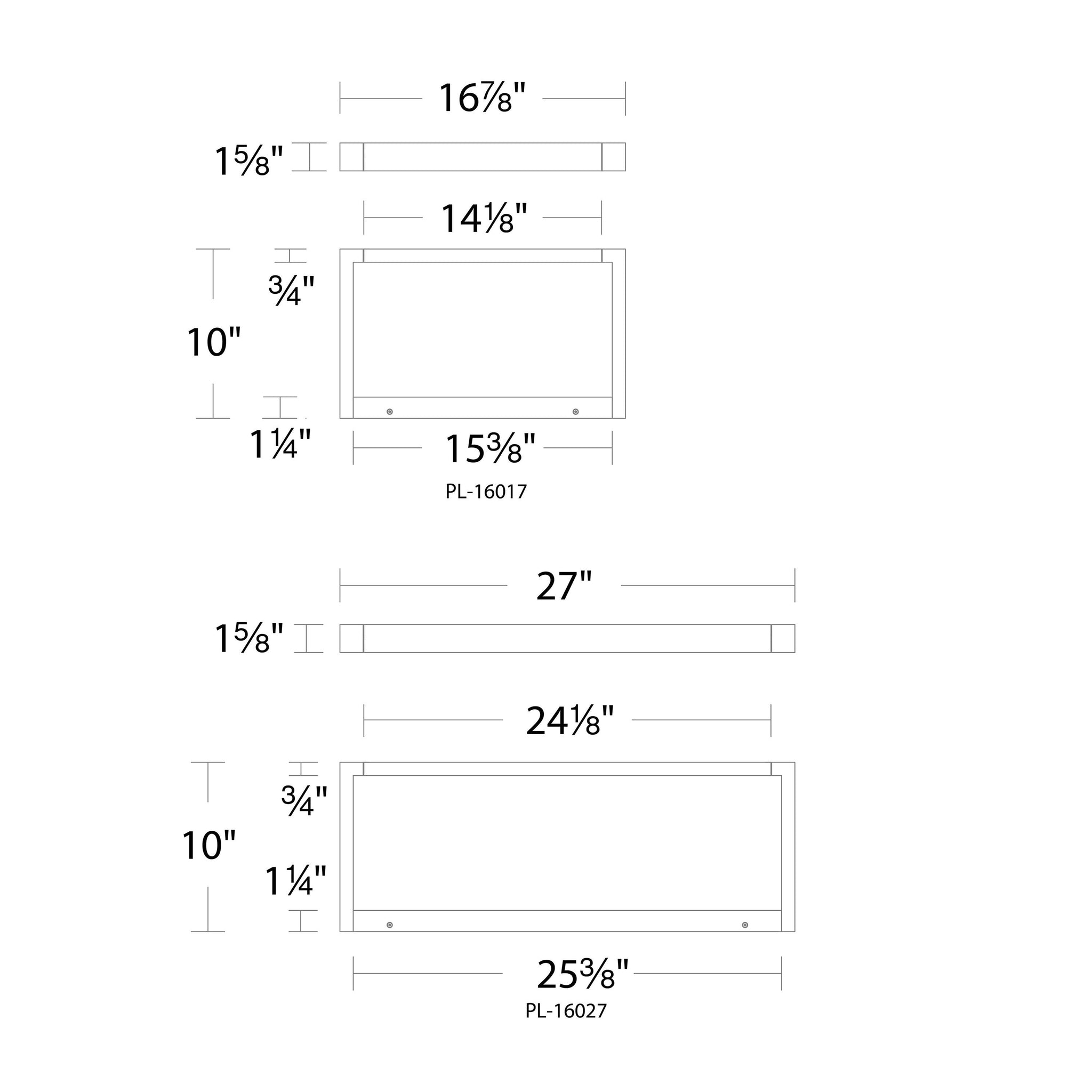 - Small: 16.88"W X 1.63"H; 10" Extension
