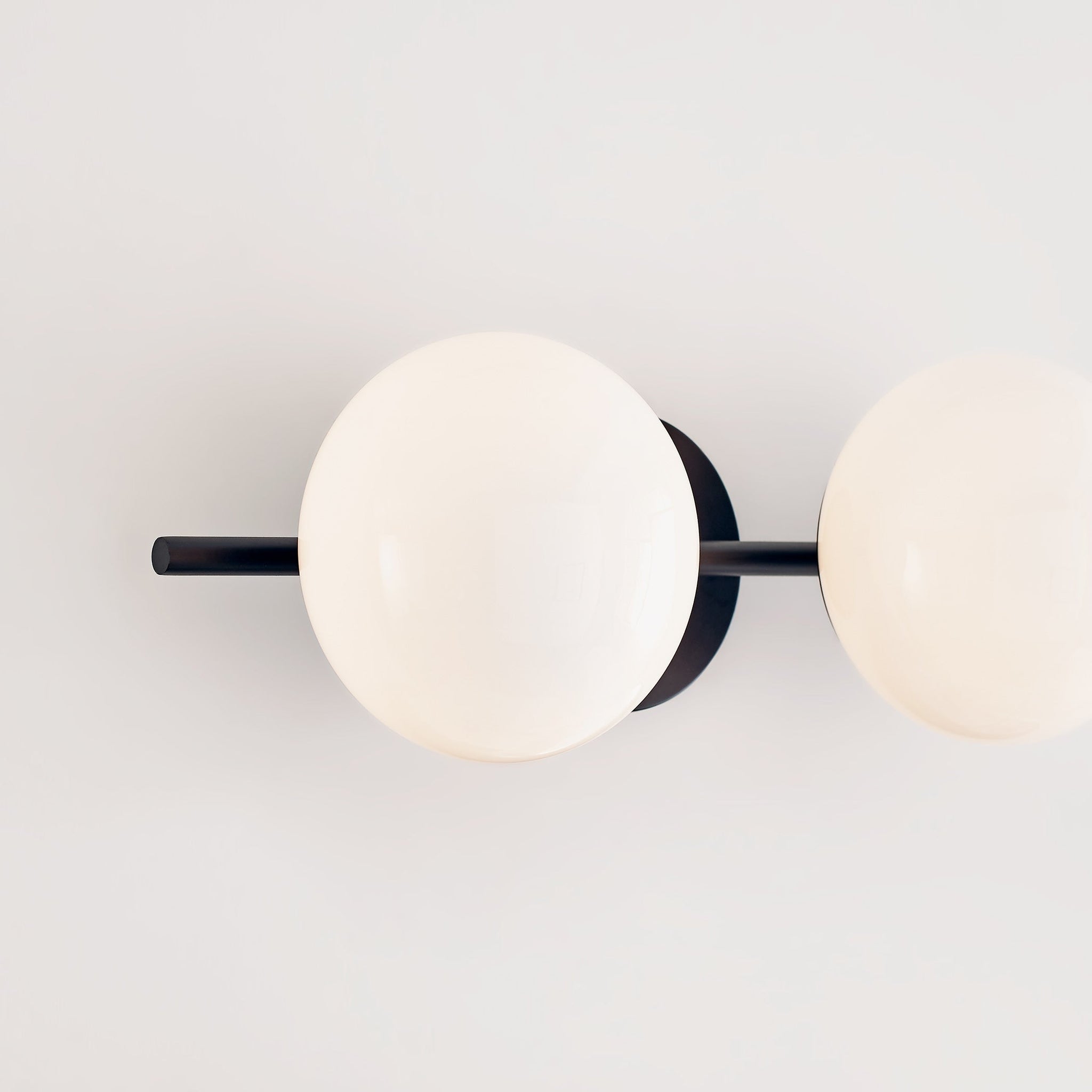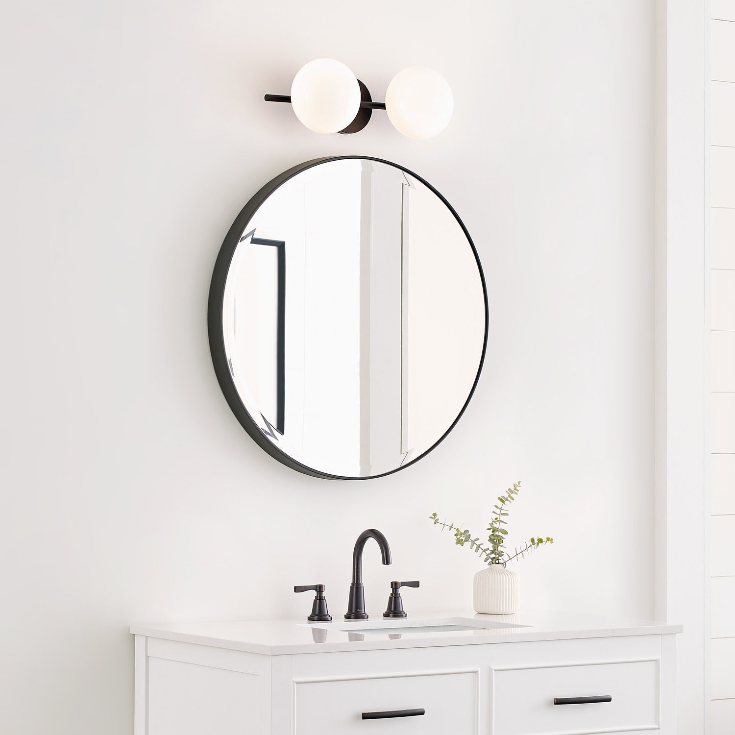Create a retro expression to luxe bathroom retreats with this energy-efficient contemporary Lune LED Vanity Wall Light from Visual Comfort Studio. Slender with a minimalistic framework, this Mid-Century Modern-inspired vanity wall light gives off an all-around bright illumination with its vintage-like opaque globes.