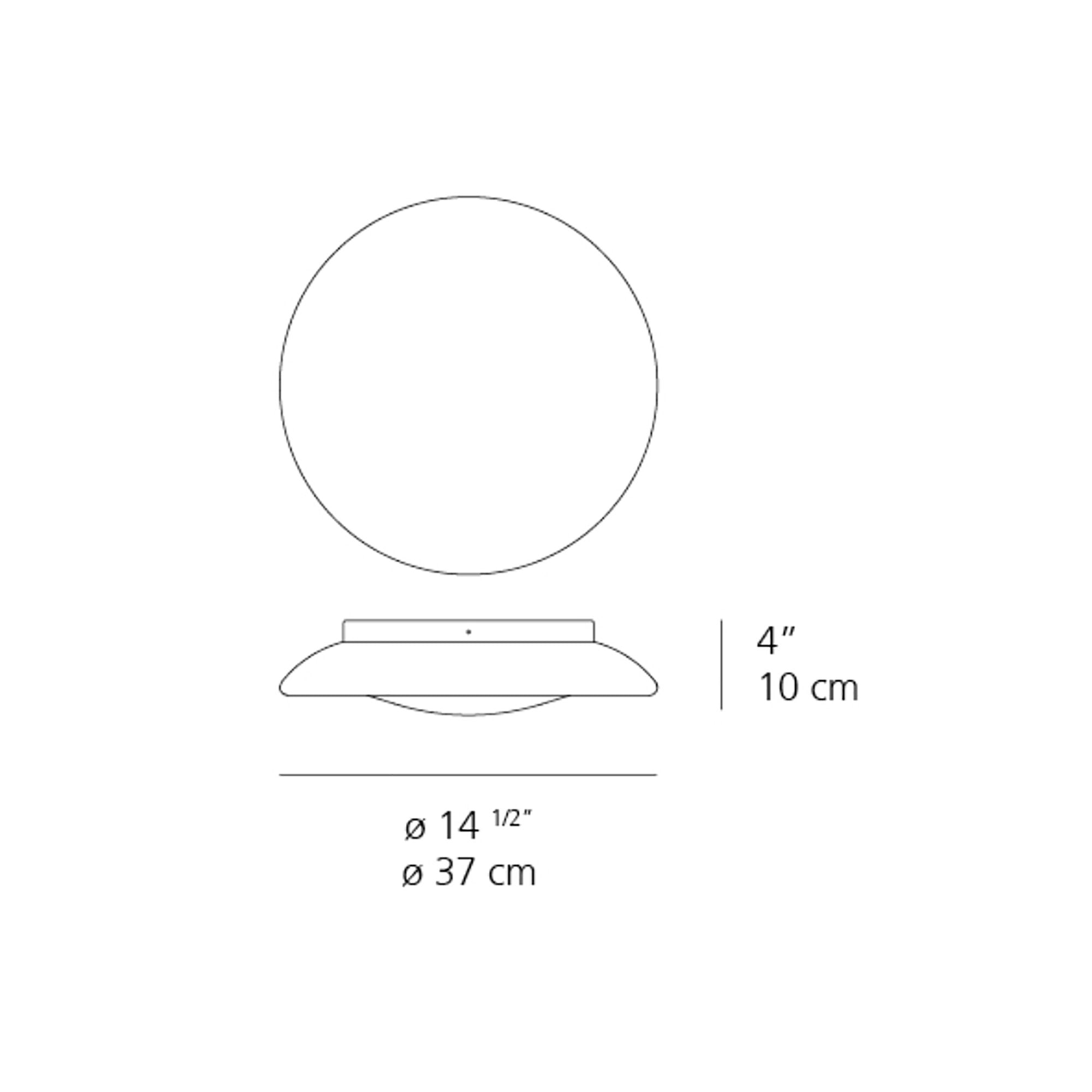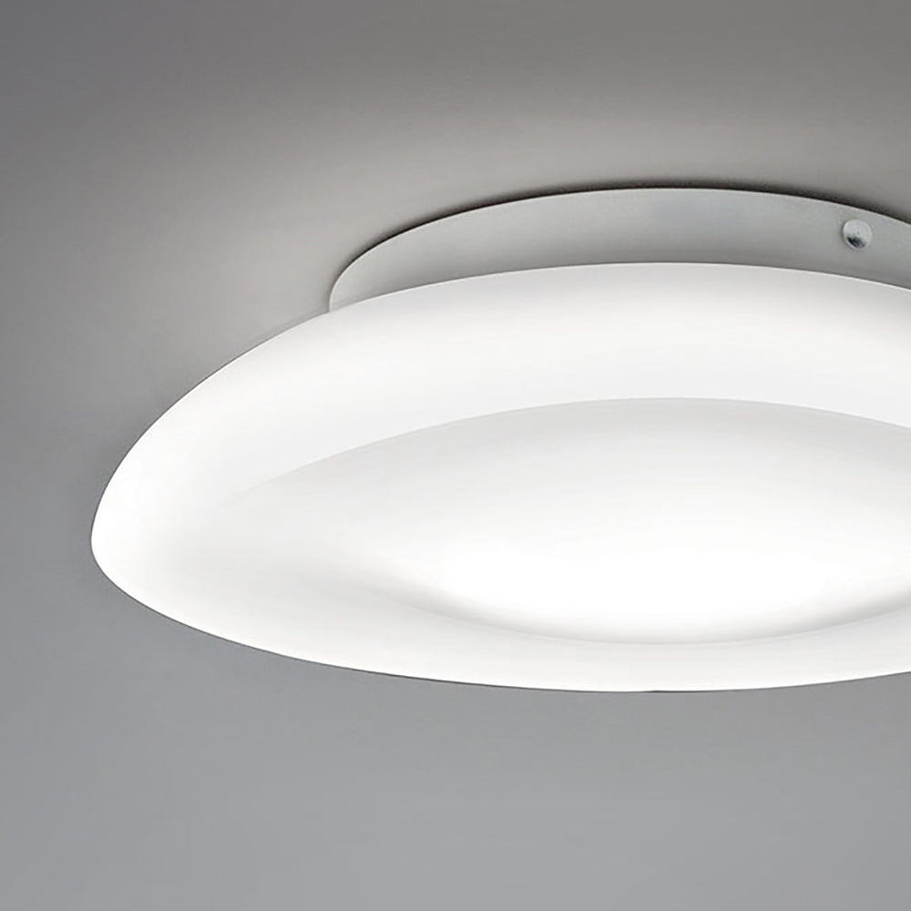 Handblown opal glass shows off soft curvature of the Lunex LED Ceiling / Wall Light from Artemide as it contributes to a glowing atmosphere.