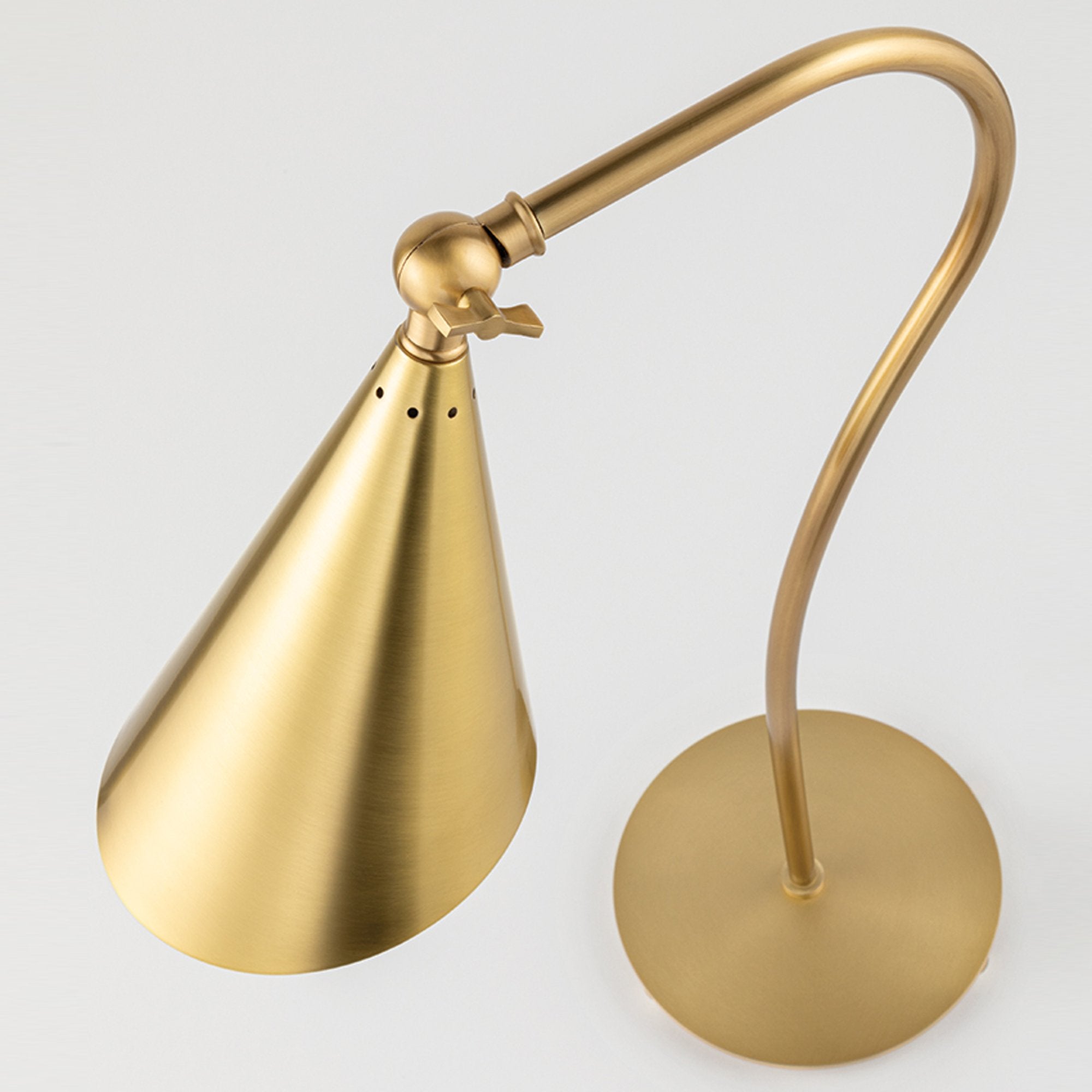 The Lupe Table Lamp from Mitzi builds on an iconic staple in studio décor, embellishing with a slate of tempting alterations. This industrial-inspired metal lamp features a tempting bias-cut cone shade with tiny perforations and a shapely tube body that creates visual balance.