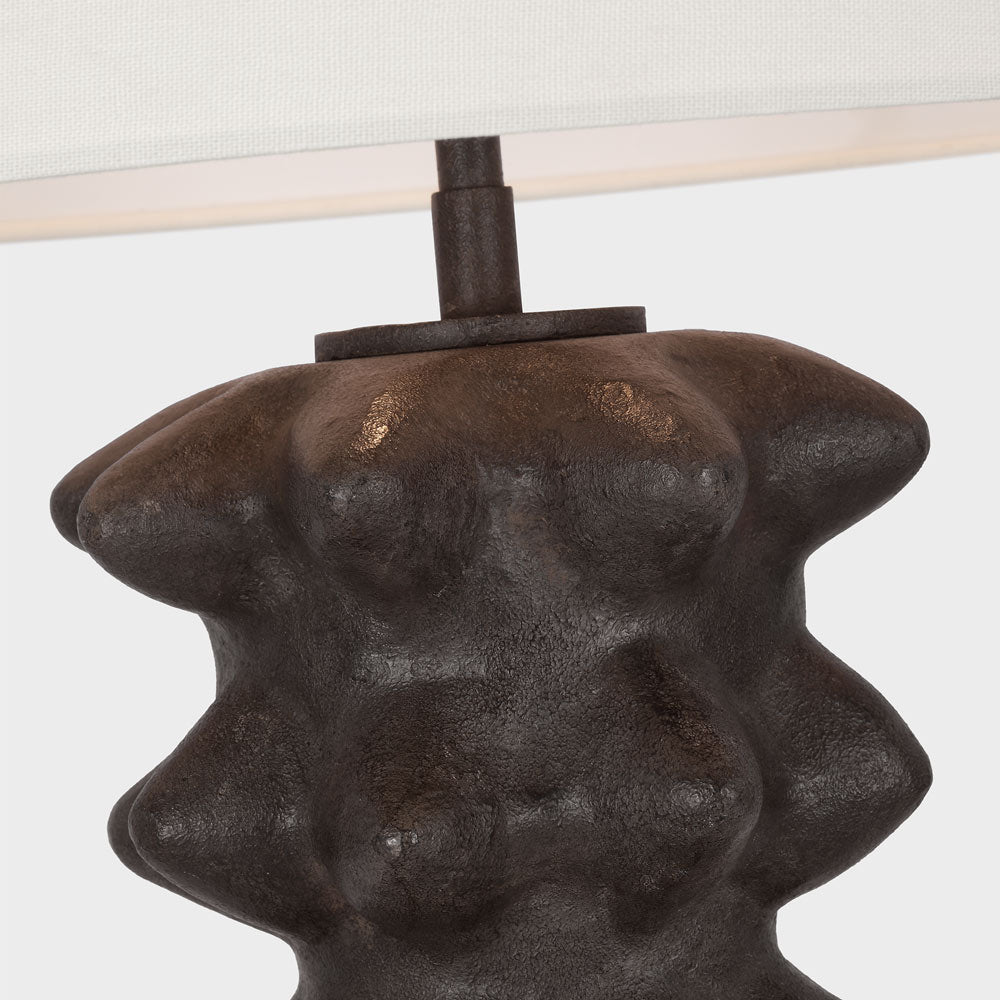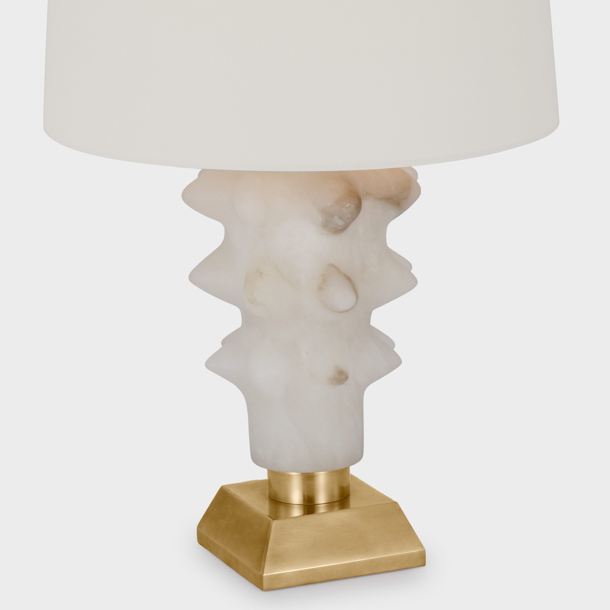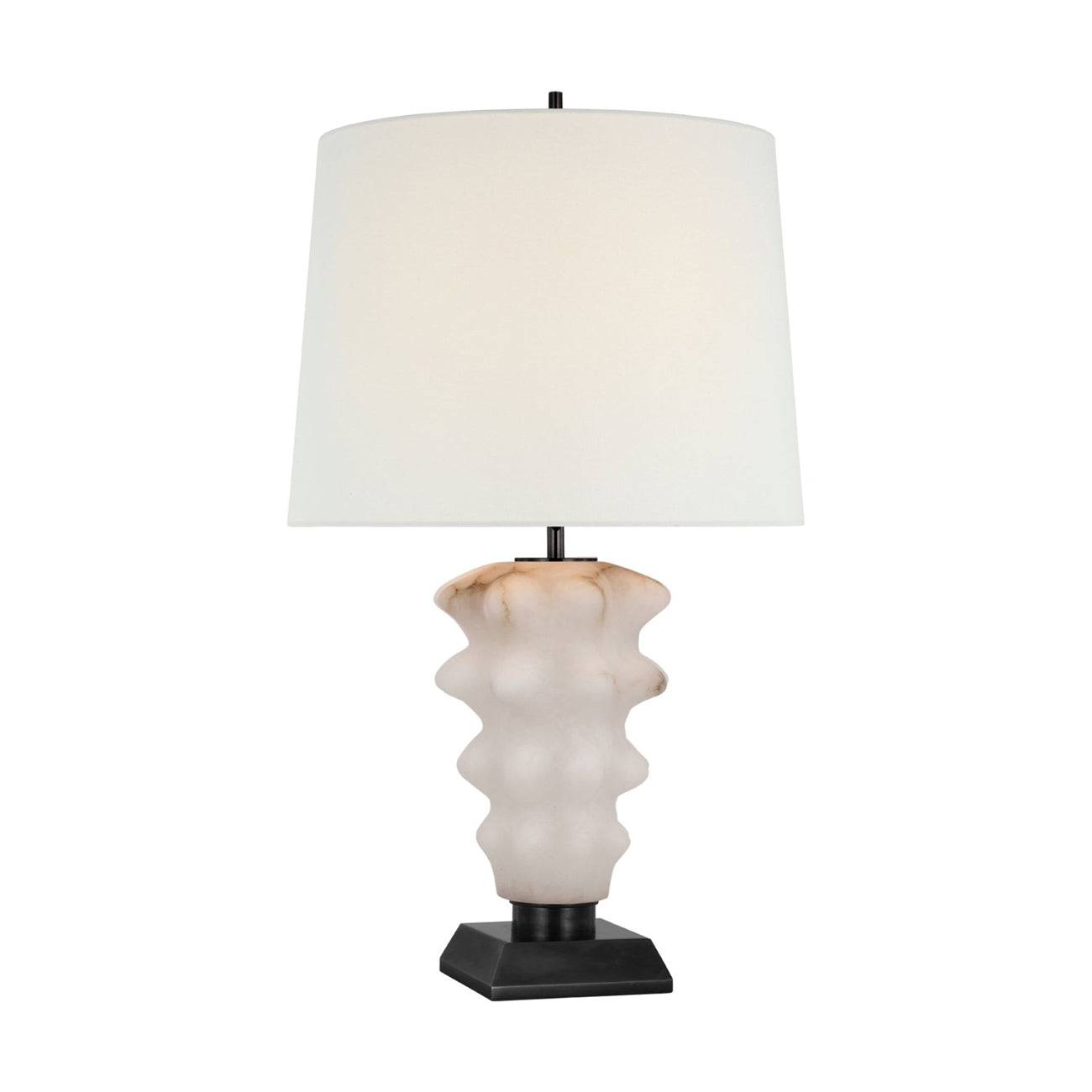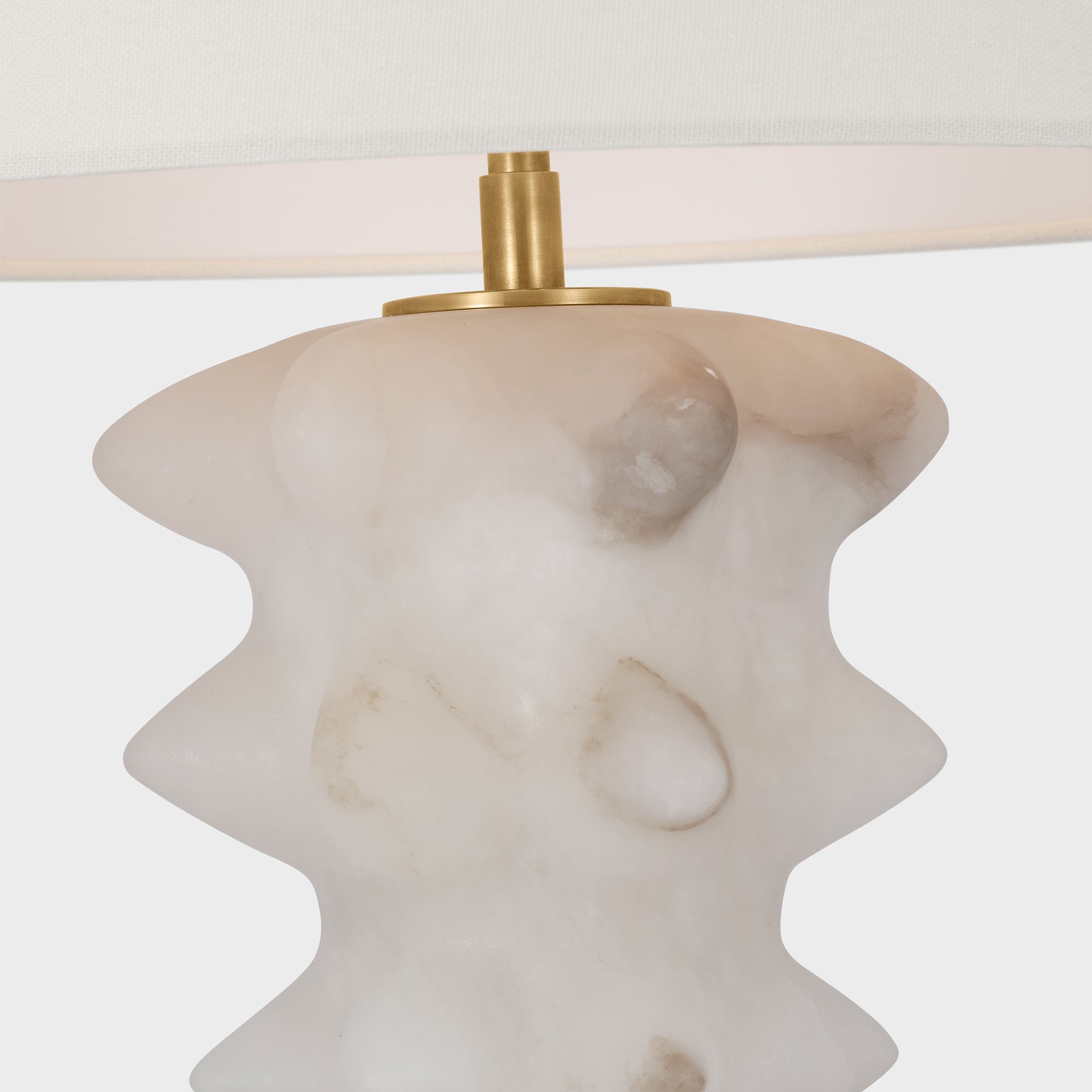 The Luxor Table Lamp from Visual Comfort Signature bends the glam aesthetic of alabaster, shaping into a quirky tapered accordion silhouette set atop a prominent metal frame. Classic natural characteristics of alabaster weave in graining and coloration resulting in a unique piece most every time. Make this lamp a fashion statement with earthy ambiance as it lights up a bedroom, living room, or foyer.