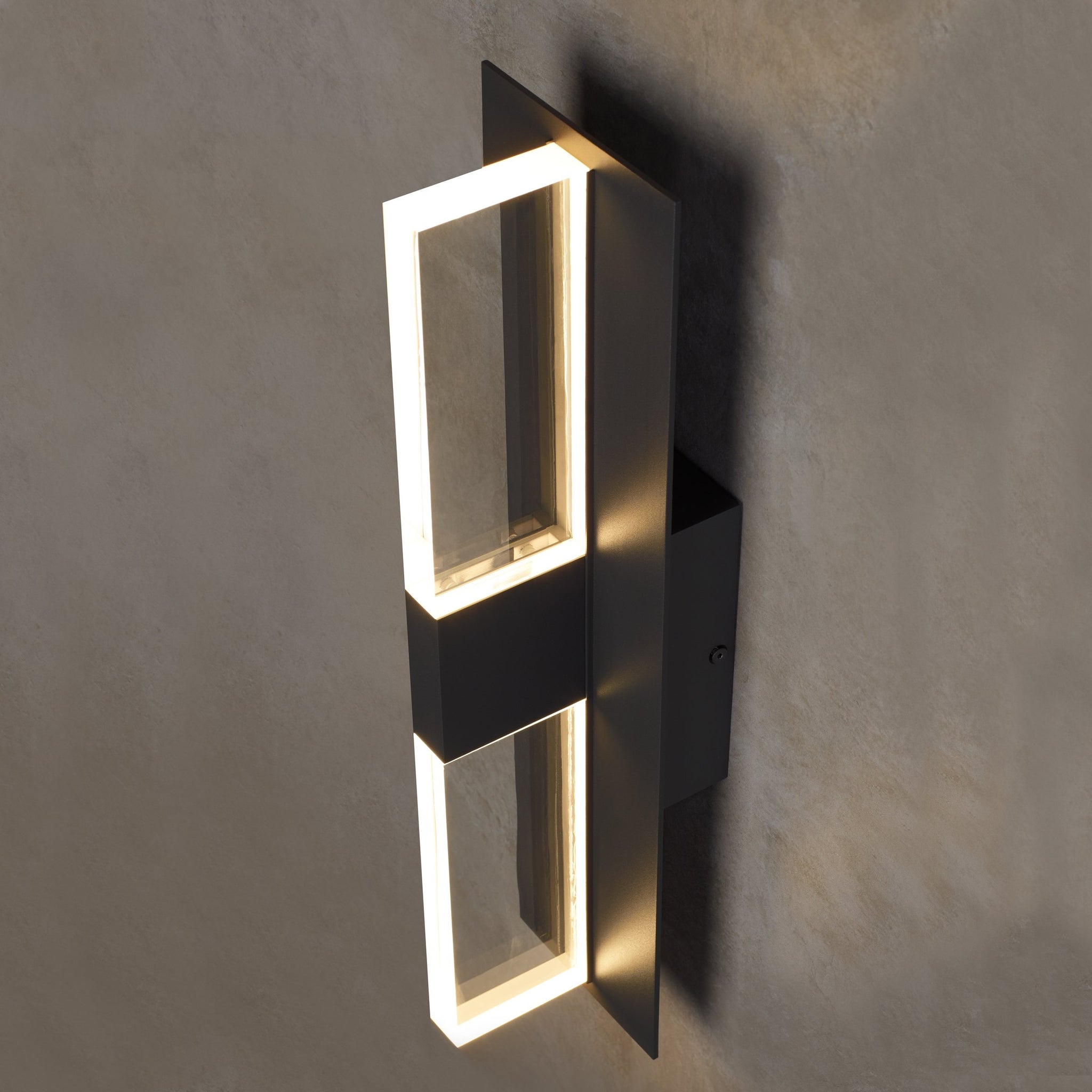 Combining modern geometric design with unique diffuser materials, the Lyft 18 Outdoor LED Wall Light by Sean Lavin for Visual Comfort Modern can create two distinct lighting experiences. solid, sand-blasted acrylic diffusers that create a wide dispersion of soft LED up and down light. or clear acrylic diffusers that add sparkle to the illuminated area with equally effective light distribution. This unique outdoor light fixture features a durable, powder coat finish available in three finishes. Charcoal, Black or Bronze. Lyft 18 Outdoor LED Wall Light feature stainless steel hardware and impact-resistant, UV stabilized acrylic lensing for added durability and stability.