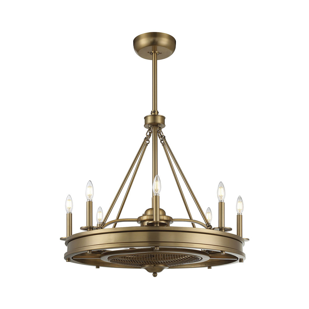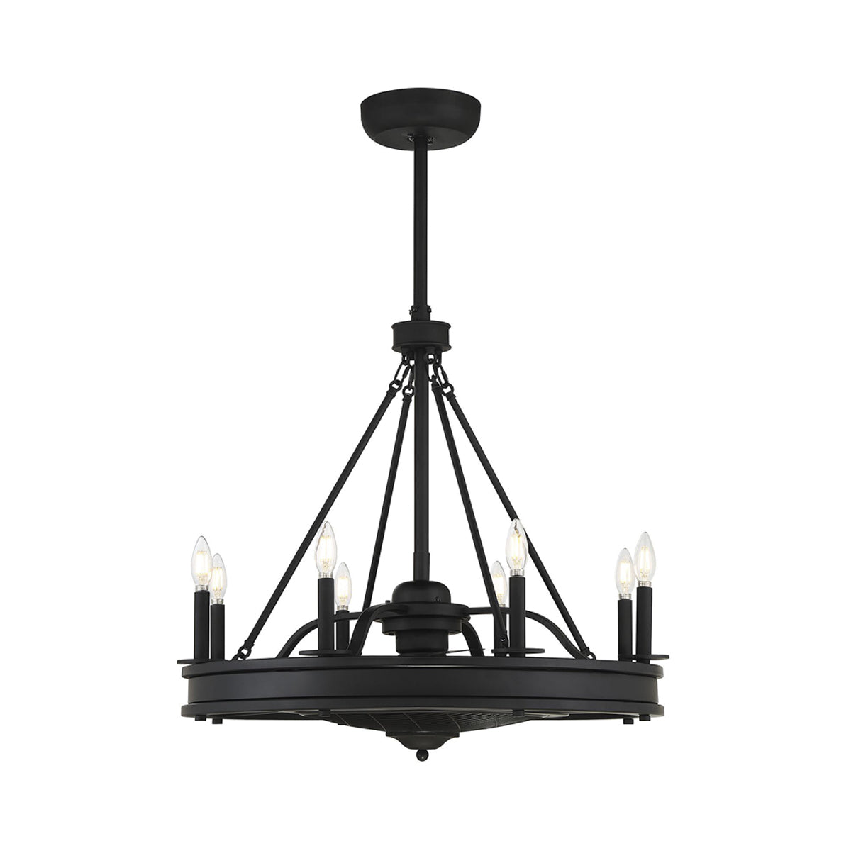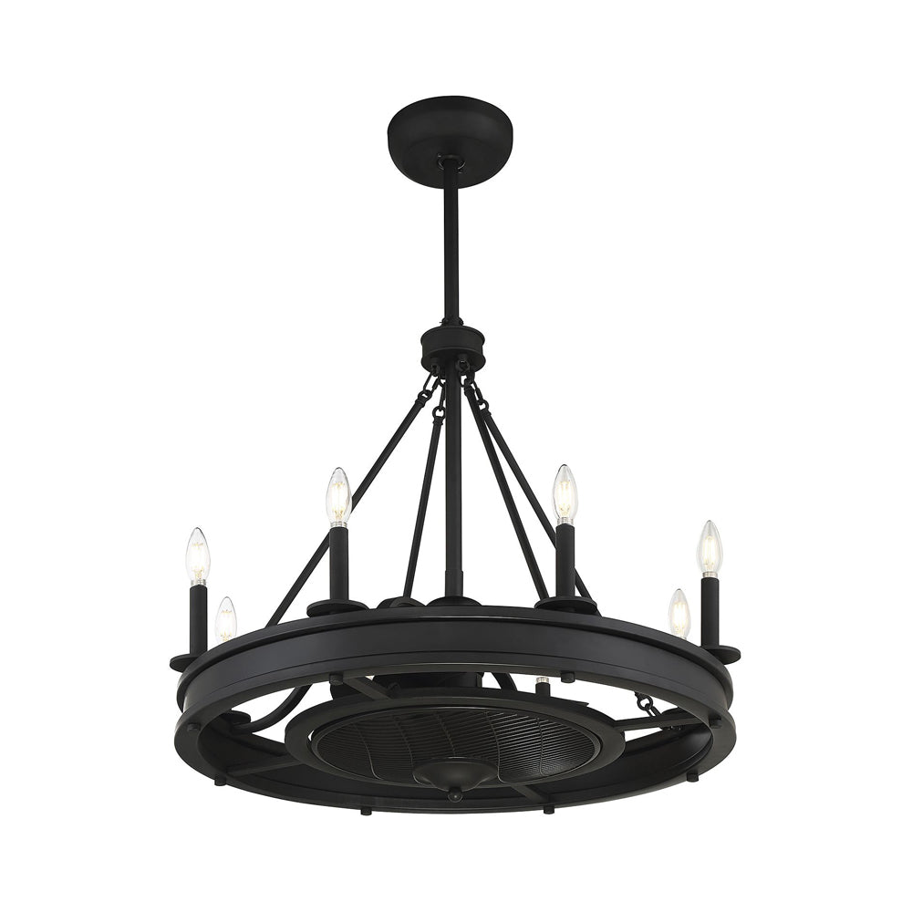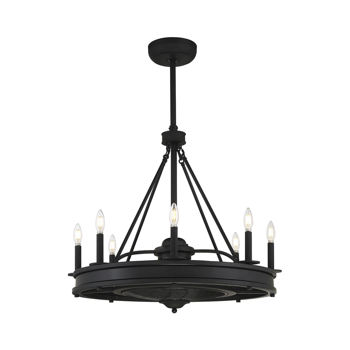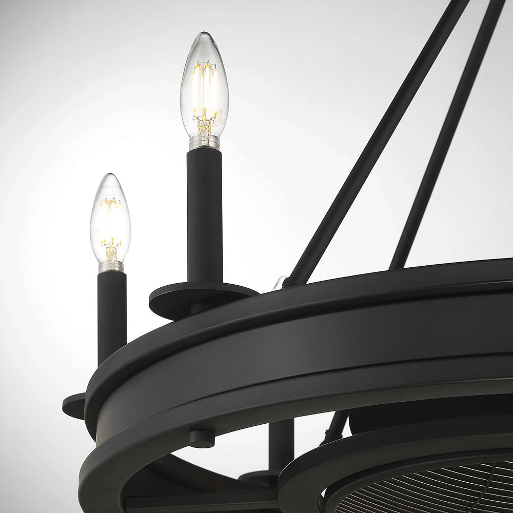 Take a bold approach to interior design with the classic look of a combination fan and light fixture. The Lyon Fan D'Lier from Savoy House commands attention with an intricately styled slender drum frame and accents fashioned of metal, as candelabra lights temper its dynamic aesthetic. Enjoy the benefit of breezy air circulating from a steel fan mechanism increasing the purpose and value of this exceptional fixture.