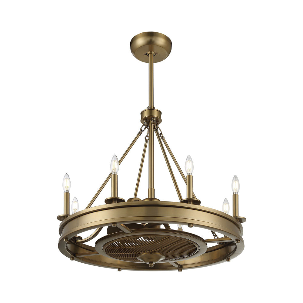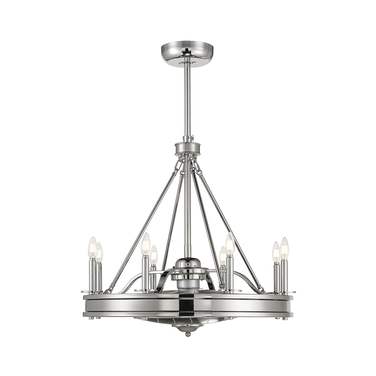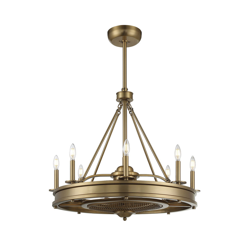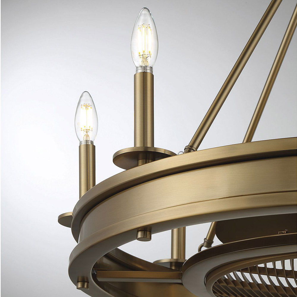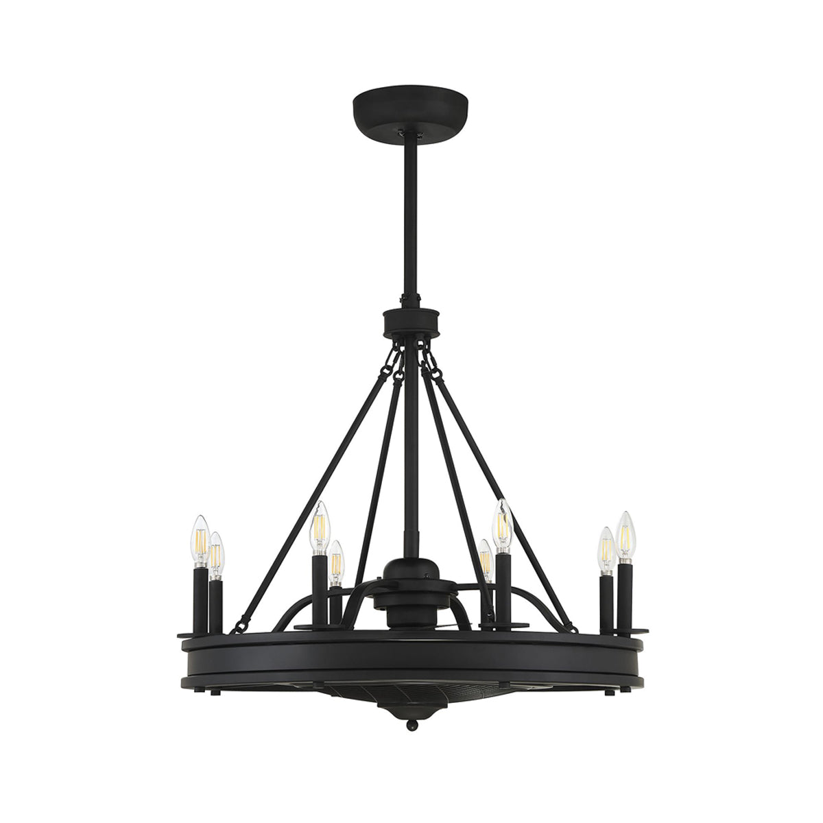 Take a bold approach to interior design with the classic look of a combination fan and light fixture. The Lyon Fan D'Lier from Savoy House commands attention with an intricately styled slender drum frame and accents fashioned of metal, as candelabra lights temper its dynamic aesthetic. Enjoy the benefit of breezy air circulating from a steel fan mechanism increasing the purpose and value of this exceptional fixture.