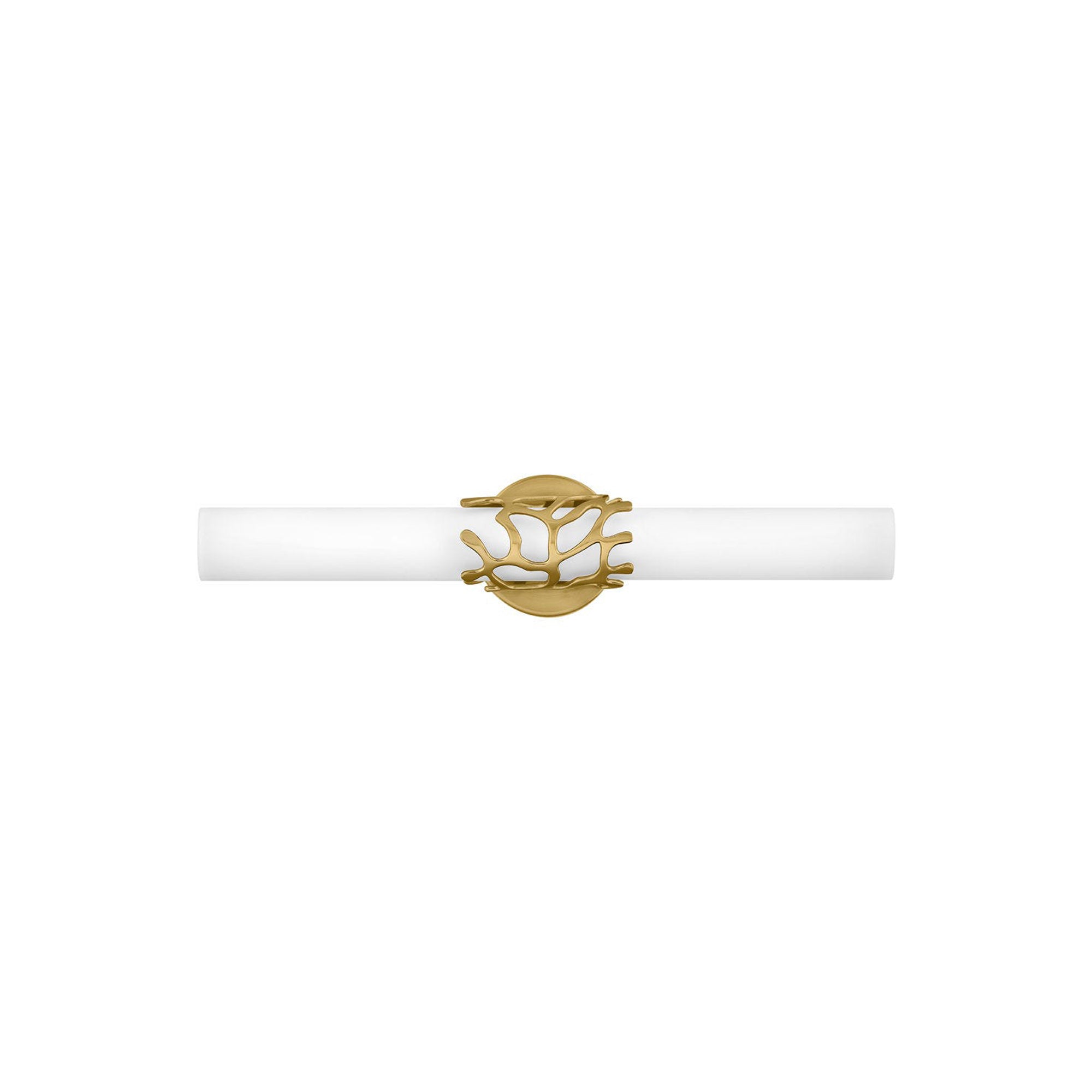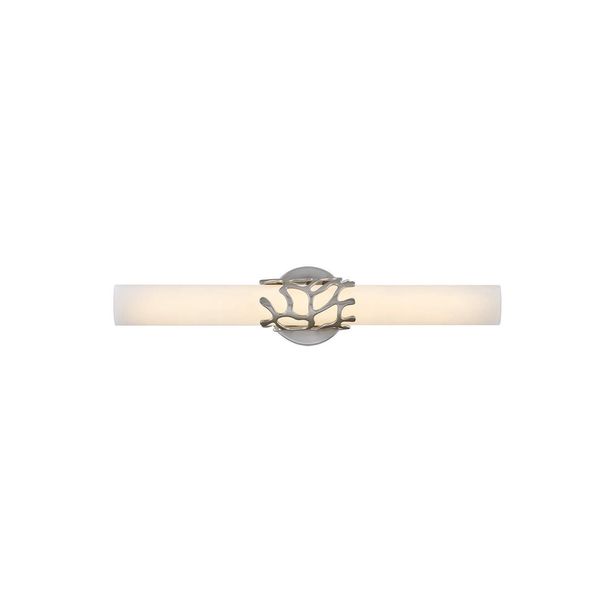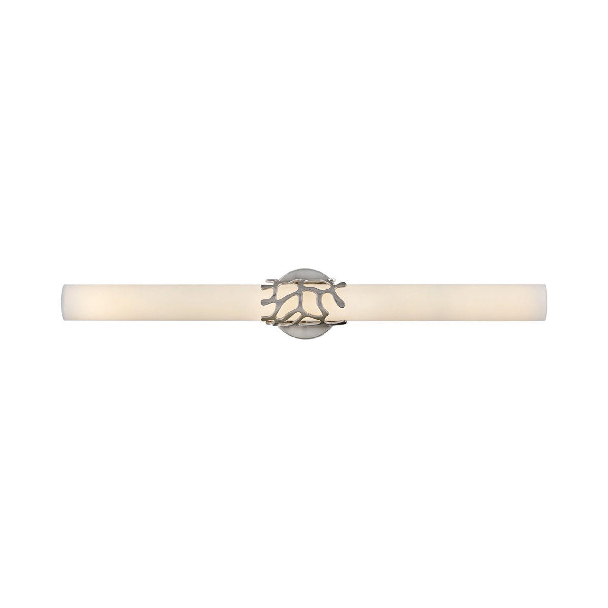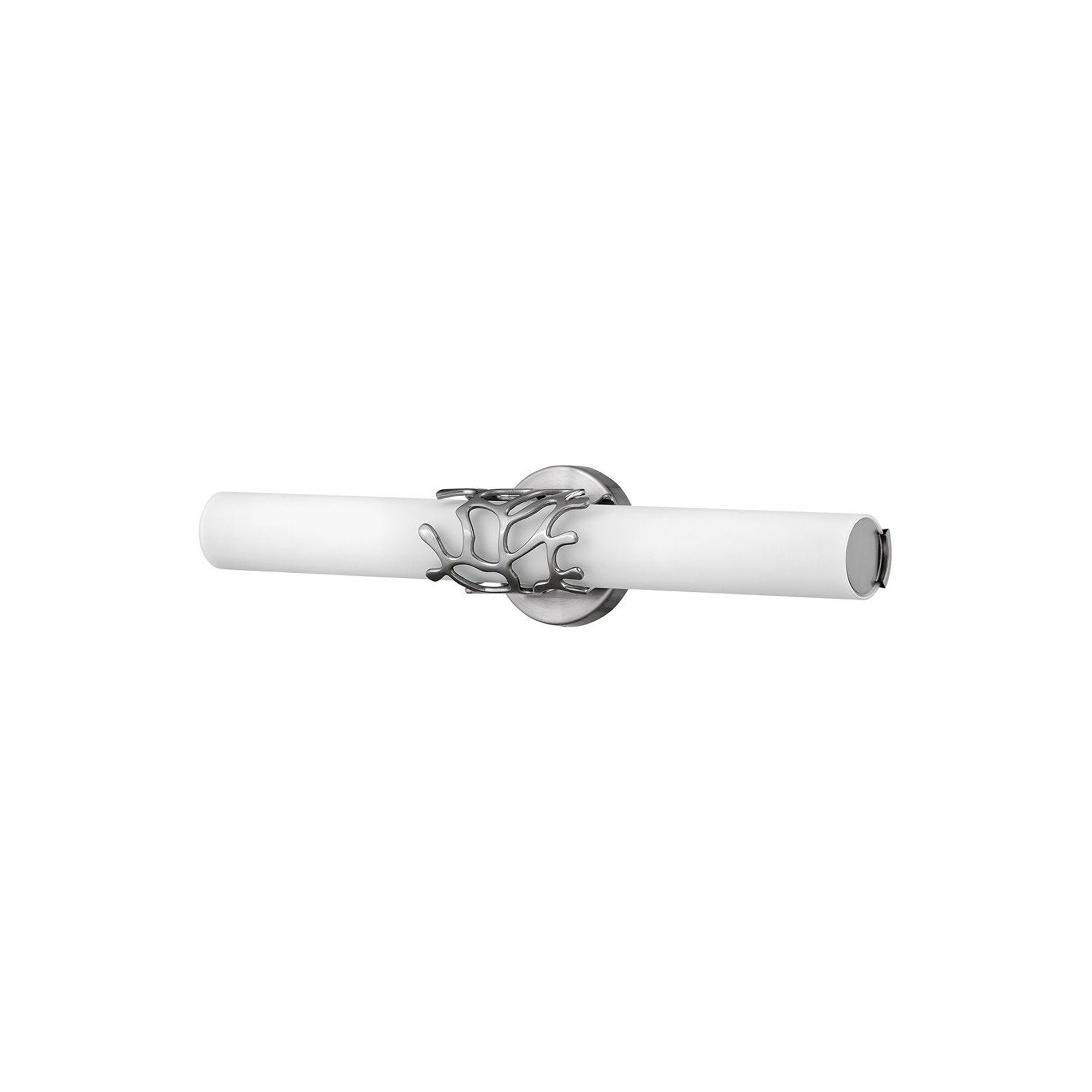 Elevate a modern coastal vanity with the dynamic, organic beauty of the Lyra LED Bath Vanity Light from Hinkley. A metal bracelet inspired by tropical corals takes centerstage, offering earthy refinement that brims with character without overwhelming surrounding decor. A sleek tube of etched opal glass completes the look and delivers superb, diffused illumination for grooming, beauty, and ambiance.