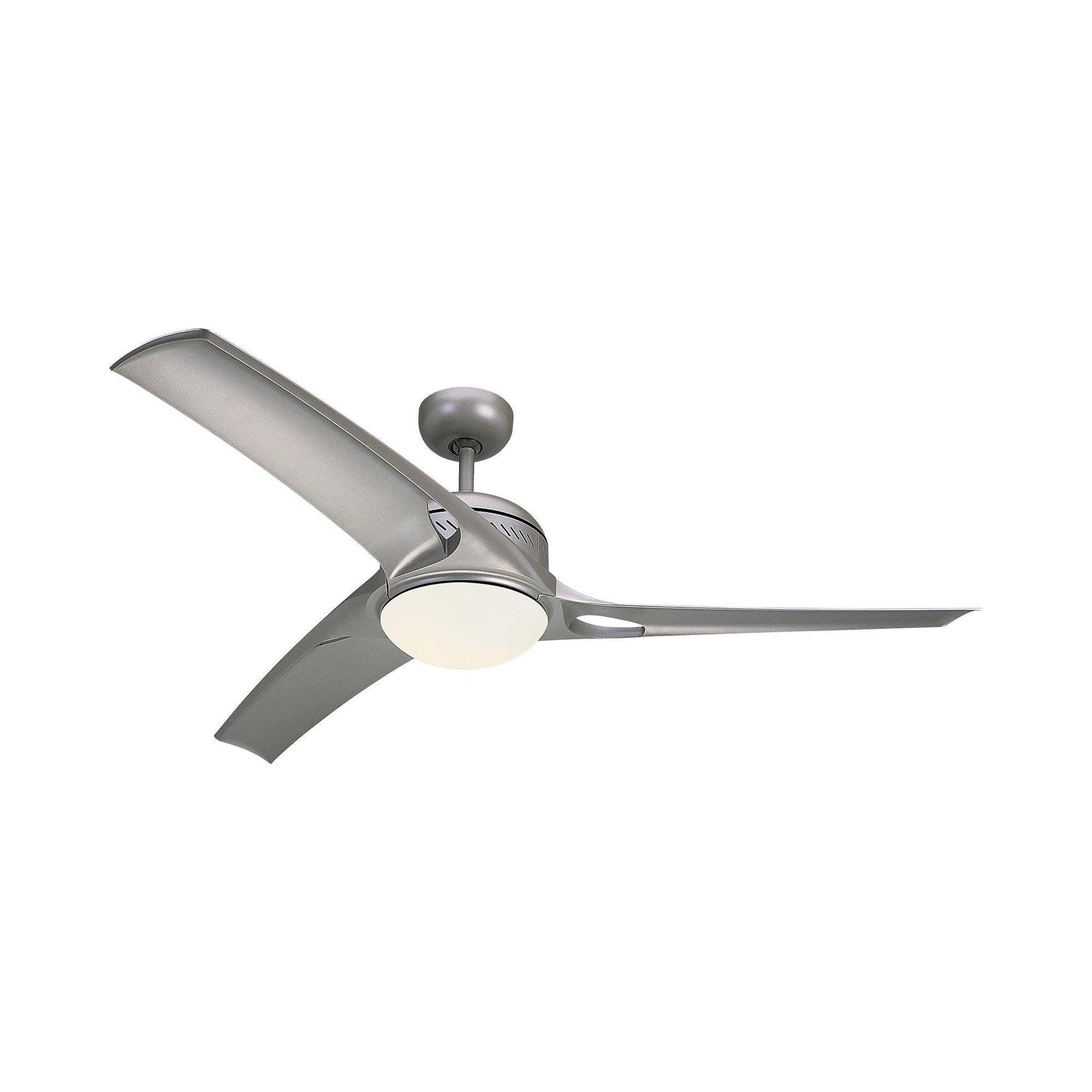 The modern design of the Mach One ceiling fan from Generation Lighting dazzles with an aerodynamic, sleek design with three blades and a 52” blade sweep. The integrated downlight in Matte Opal glass will light up a room. This fan also includes a two-in-one remote (combo hand-held and wall mount).