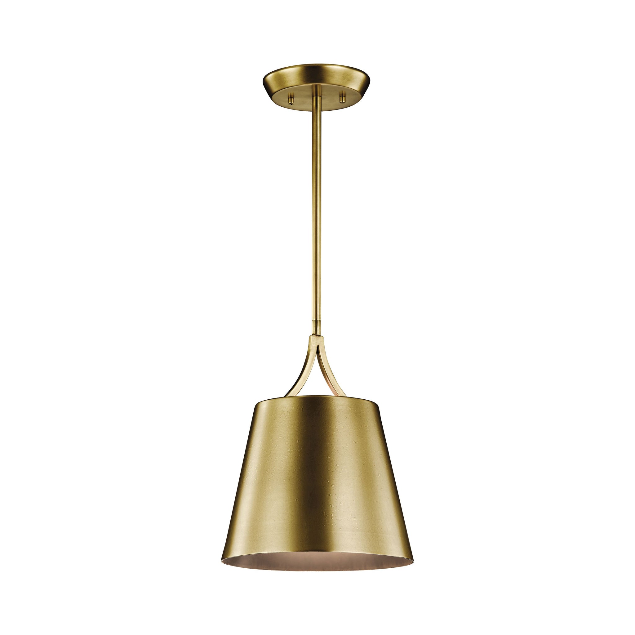 The Maclain Mini Pendant Light from the updated traditional Maclain collection features smooth lines in a Natural Brass finish with subtle and pleasing Satin Etched White glass.