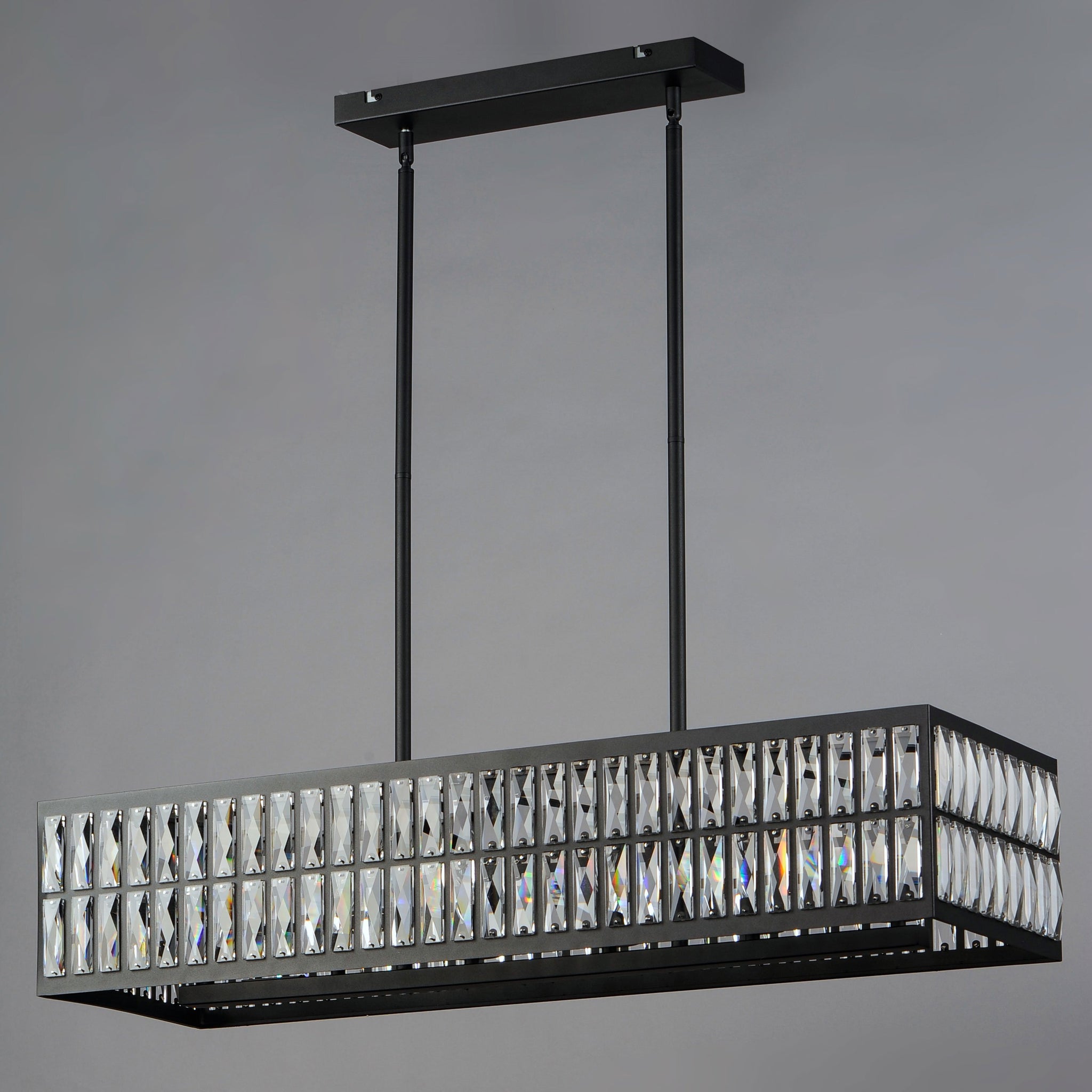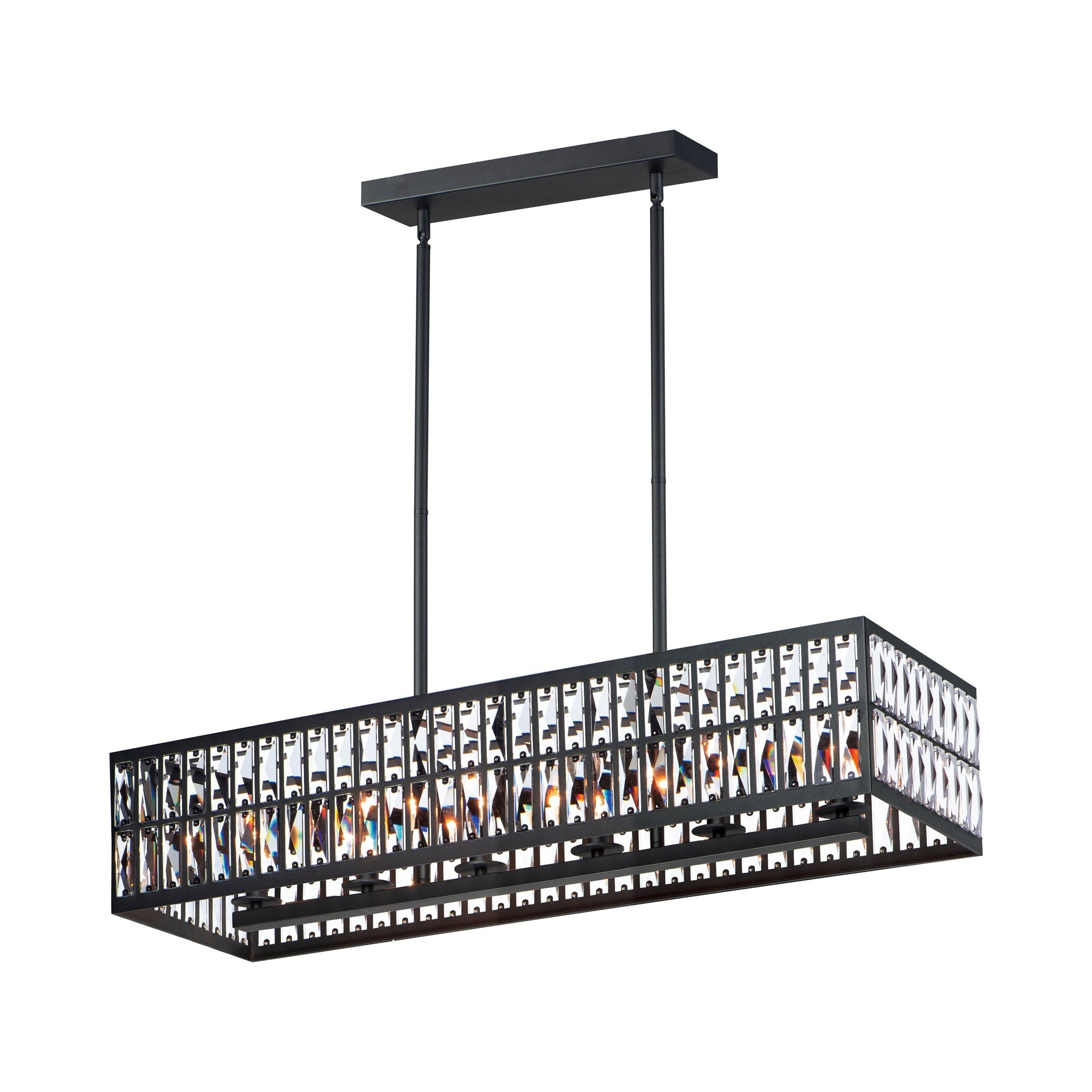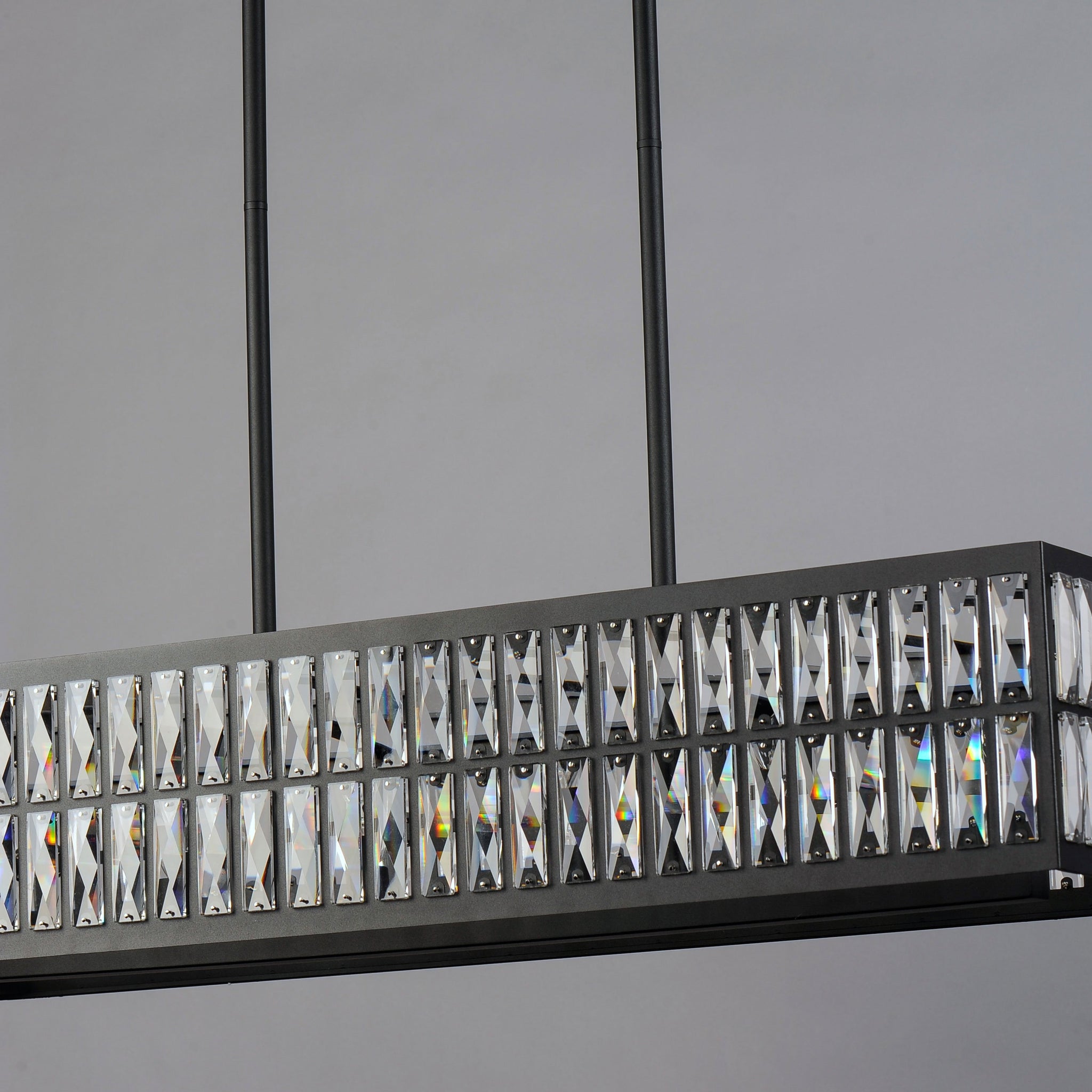 Glamorous and refined, the Madeline Linear Suspension Light from Maxim Lighting features a rectangular-shaped frame bejeweled with dazzling and light-refracting crystals that elevate a dining table or high-top kitchen bar.