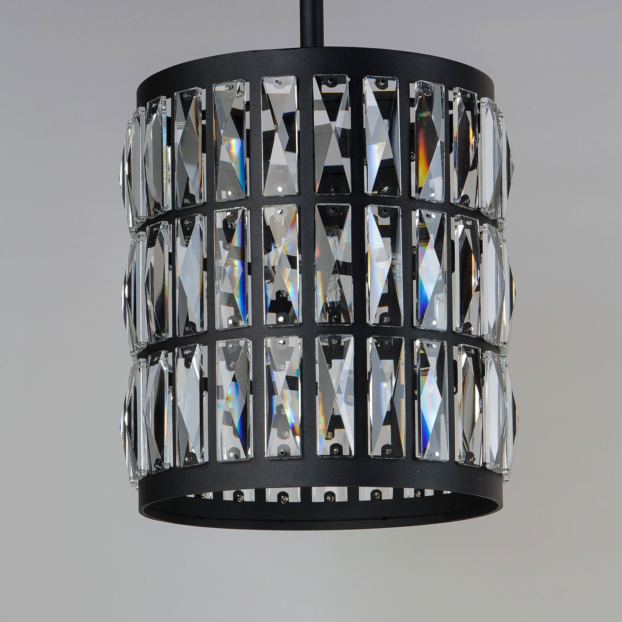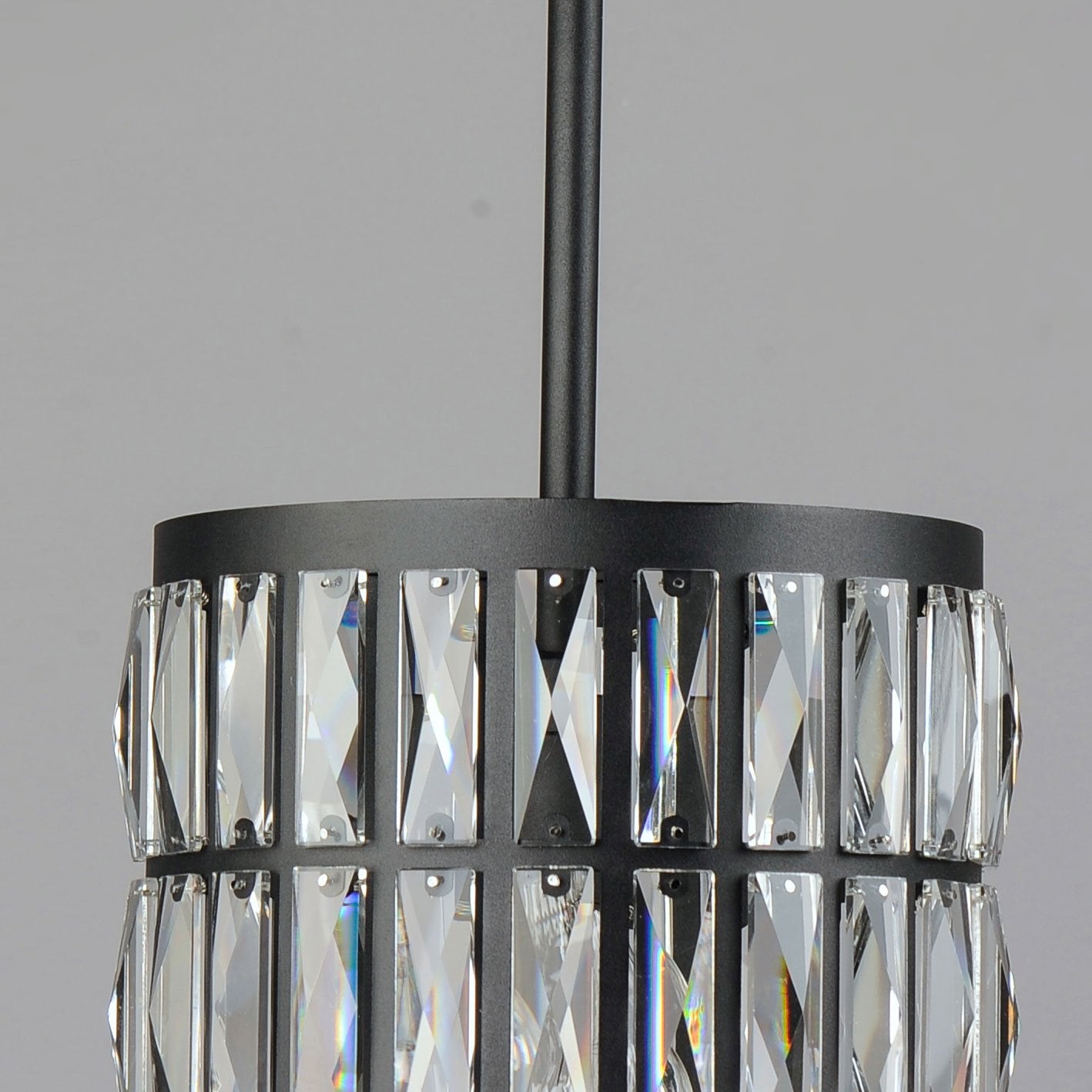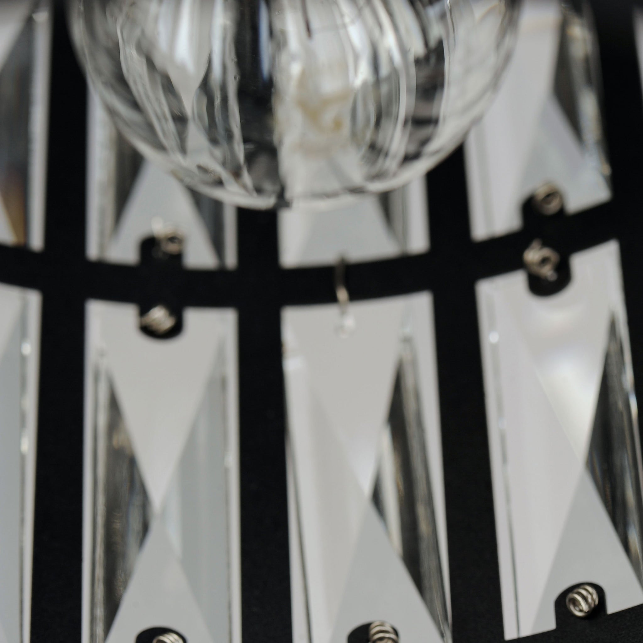 Rectilinear Beveled Crystals bejewel a Matte Black frame creates stark contrast to this radiantly prismatic display of light. The bound crystal is fixed to the frame to reduce time spent dressing the fixture.