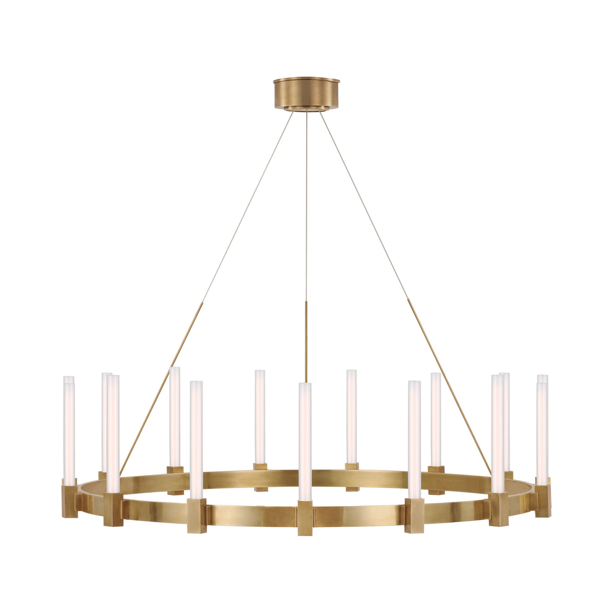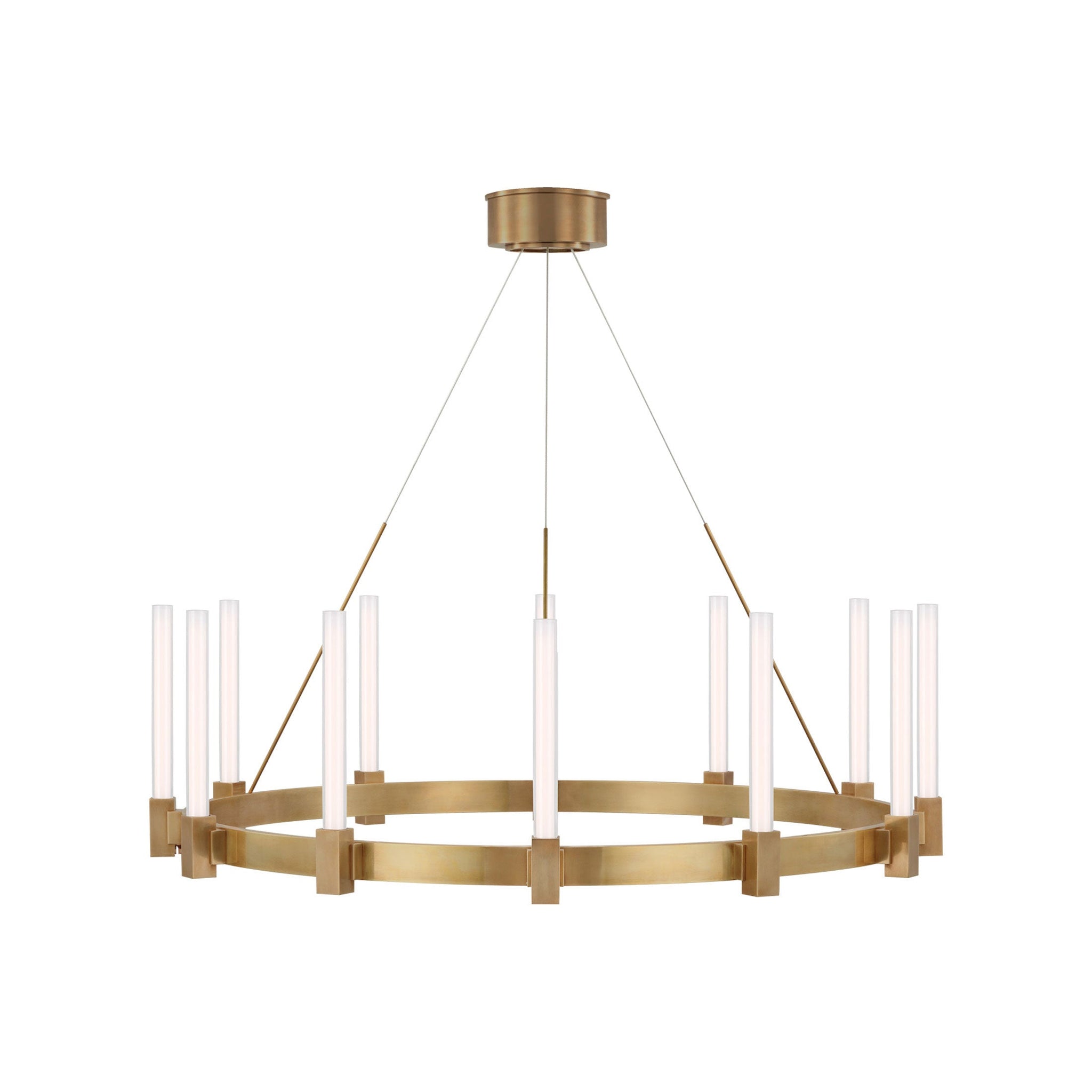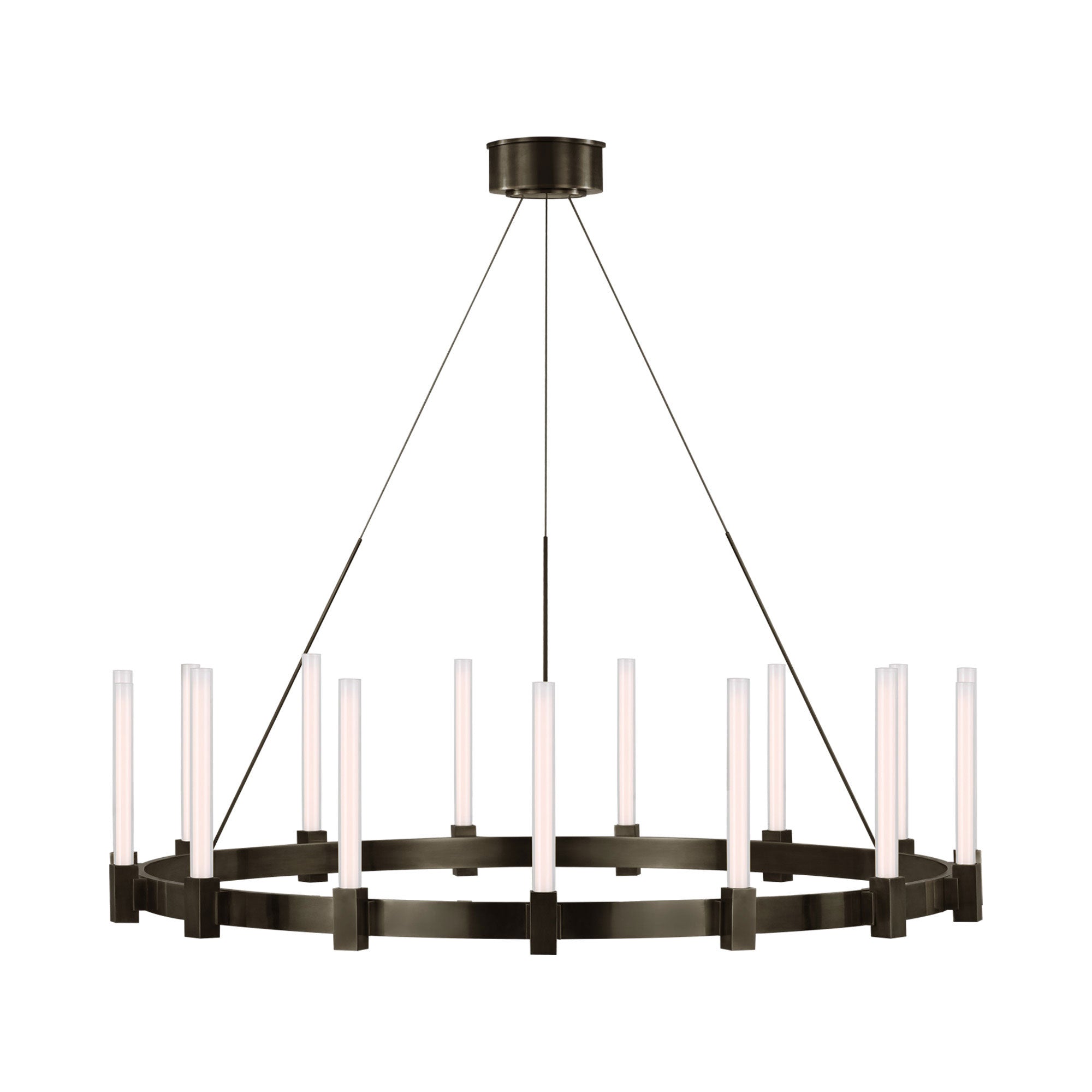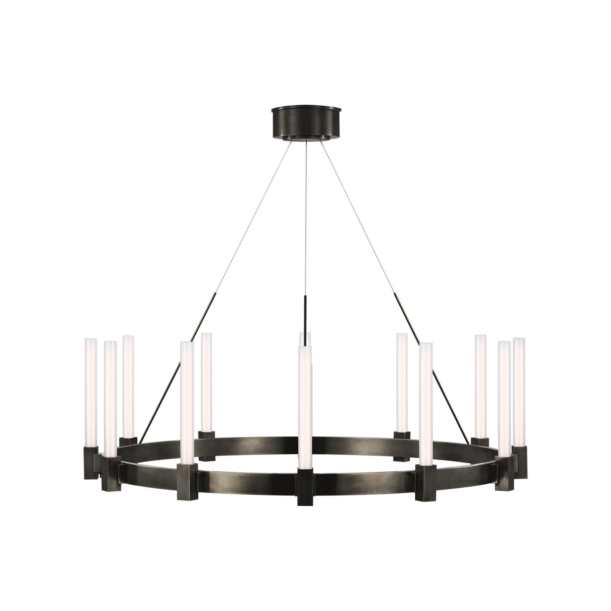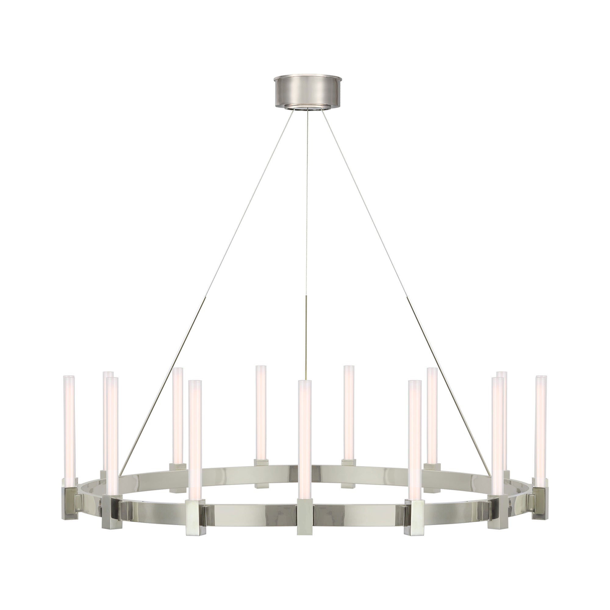 Updated elements spin a contemporary vibe to the Mafra LED Chandelier from Visual Comfort Signature. Enjoy energy-efficient lighting in a fixture styled after a castle motif with a metal ring frame suspended from cables. White glass slender shades opt for a sleek minimalist attitude focusing on shaping and sophistication.