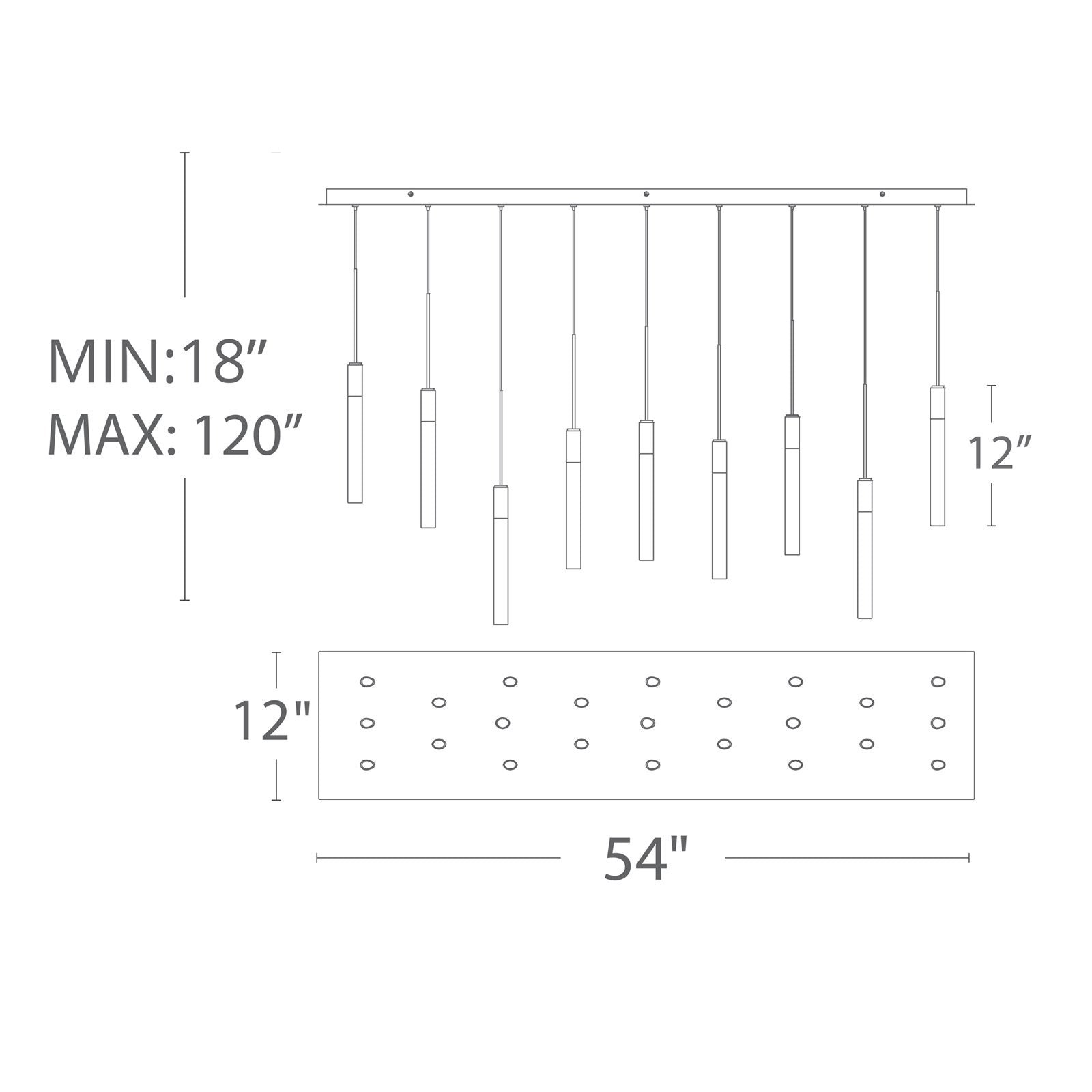 - Fixture Dimensions: 54"W X 12"H