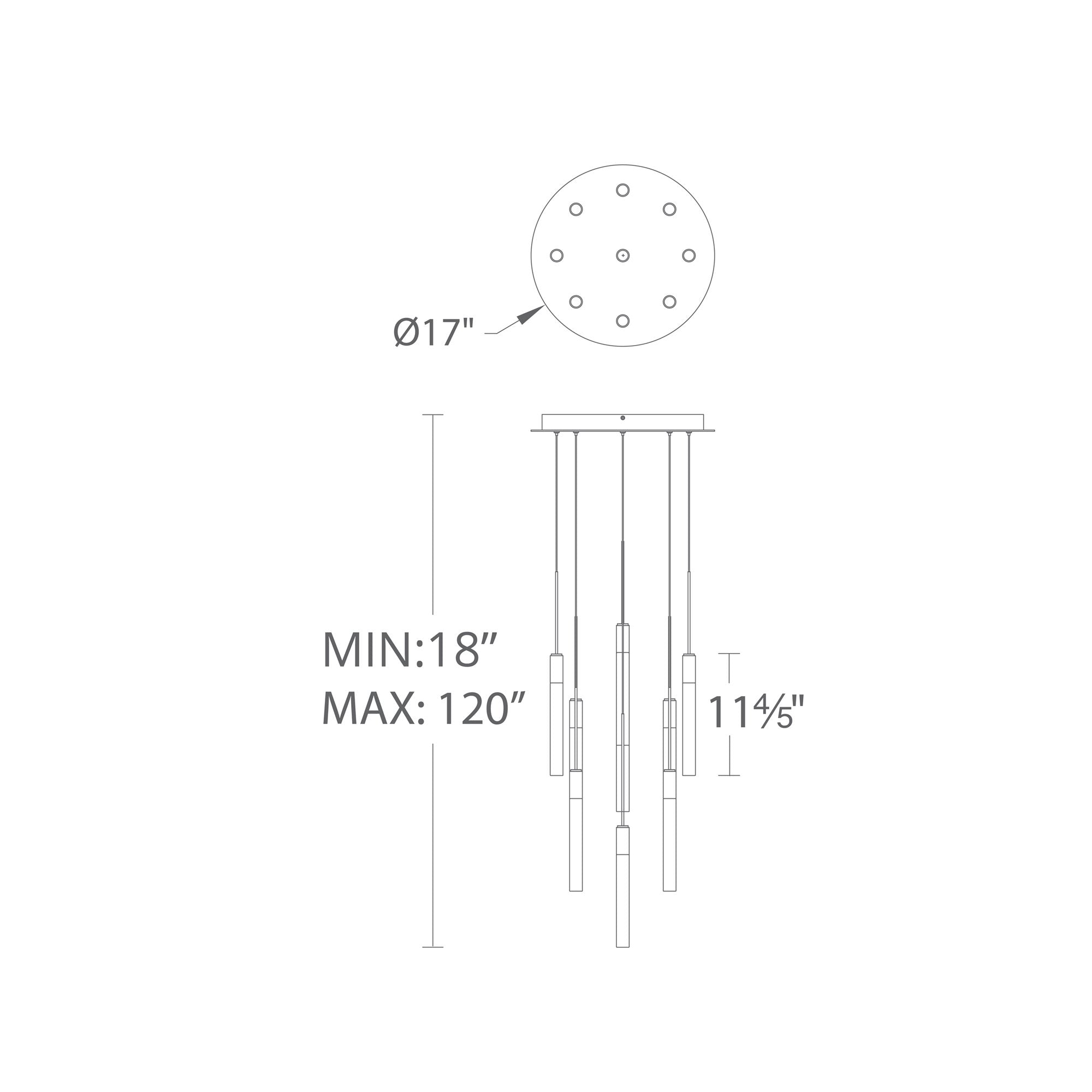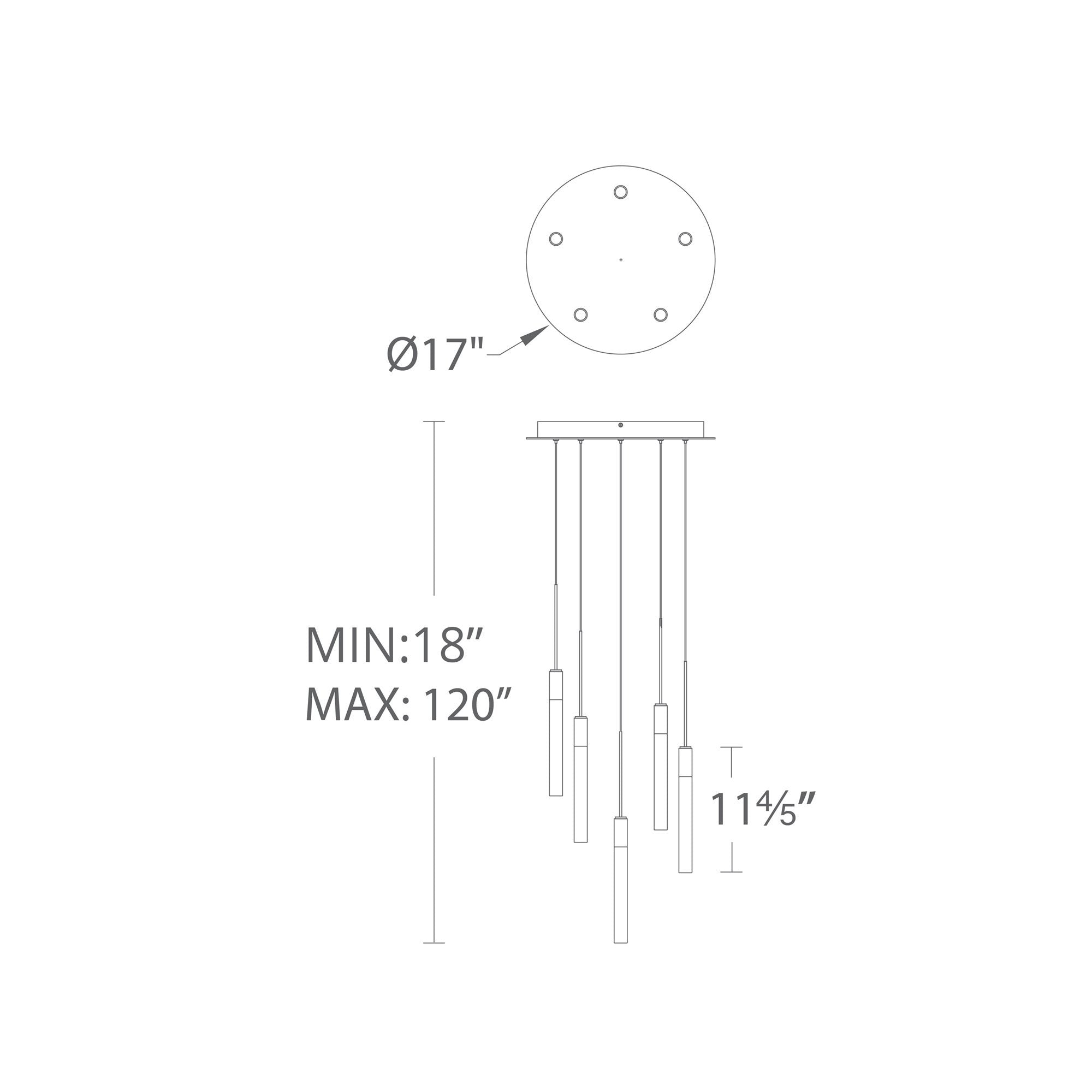 - 5-Light: 17"D X 11.8"H; 120" max height