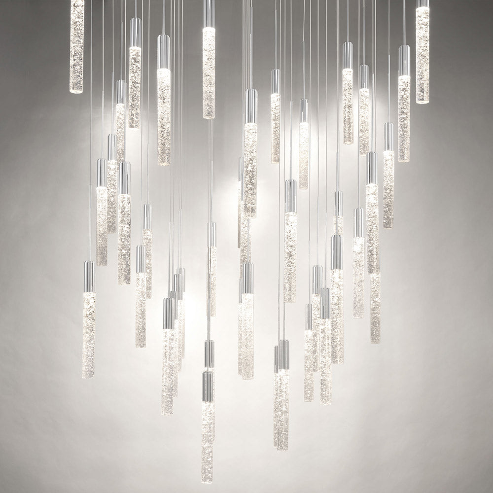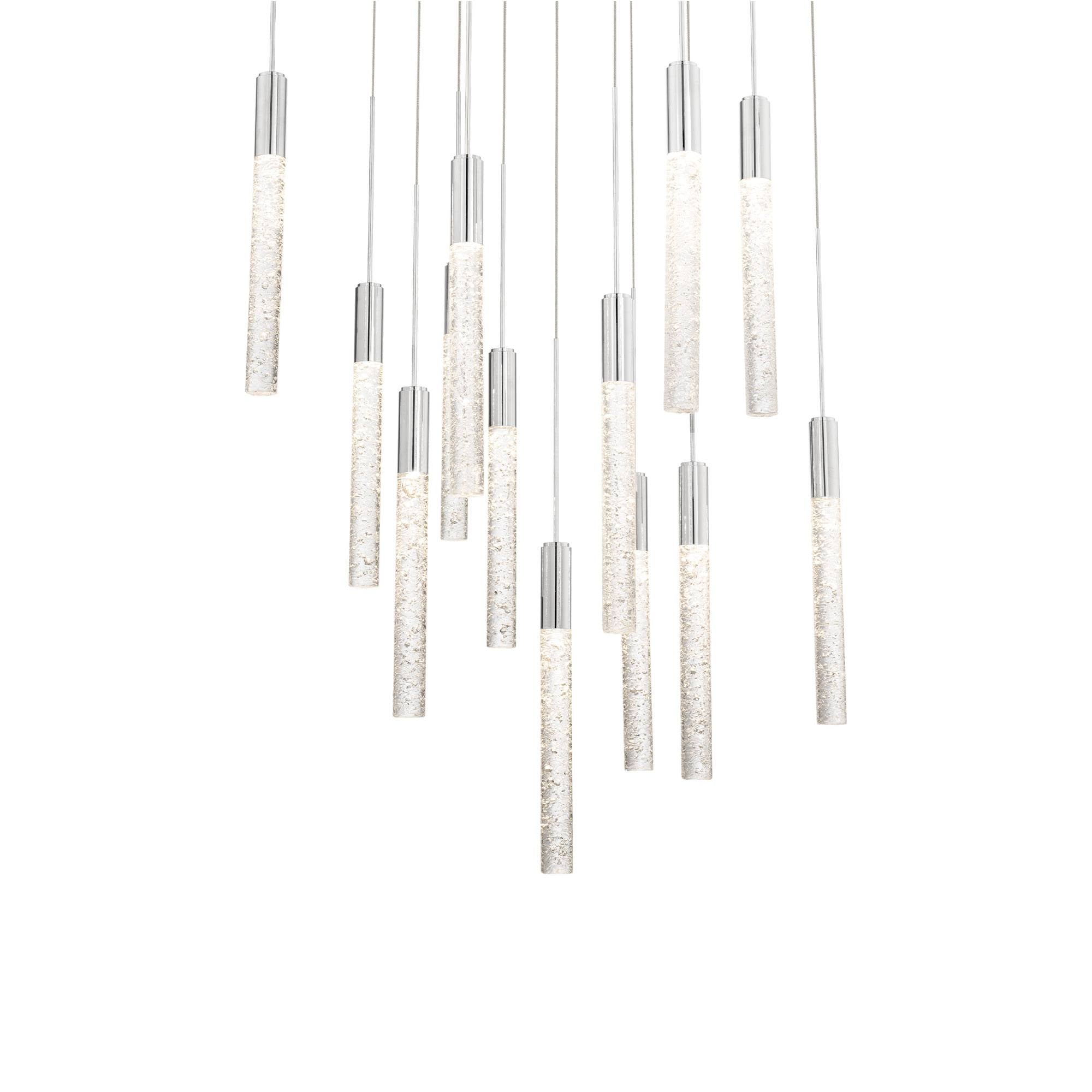 Artful cylinders of Piastra crystal sparkle in the sophisticated Magic Square LED Pendant Light from Modern Forms. A striking arrangement pairs with varied suspension heights, creating a graceful, refined display over gathering spaces within your home.
