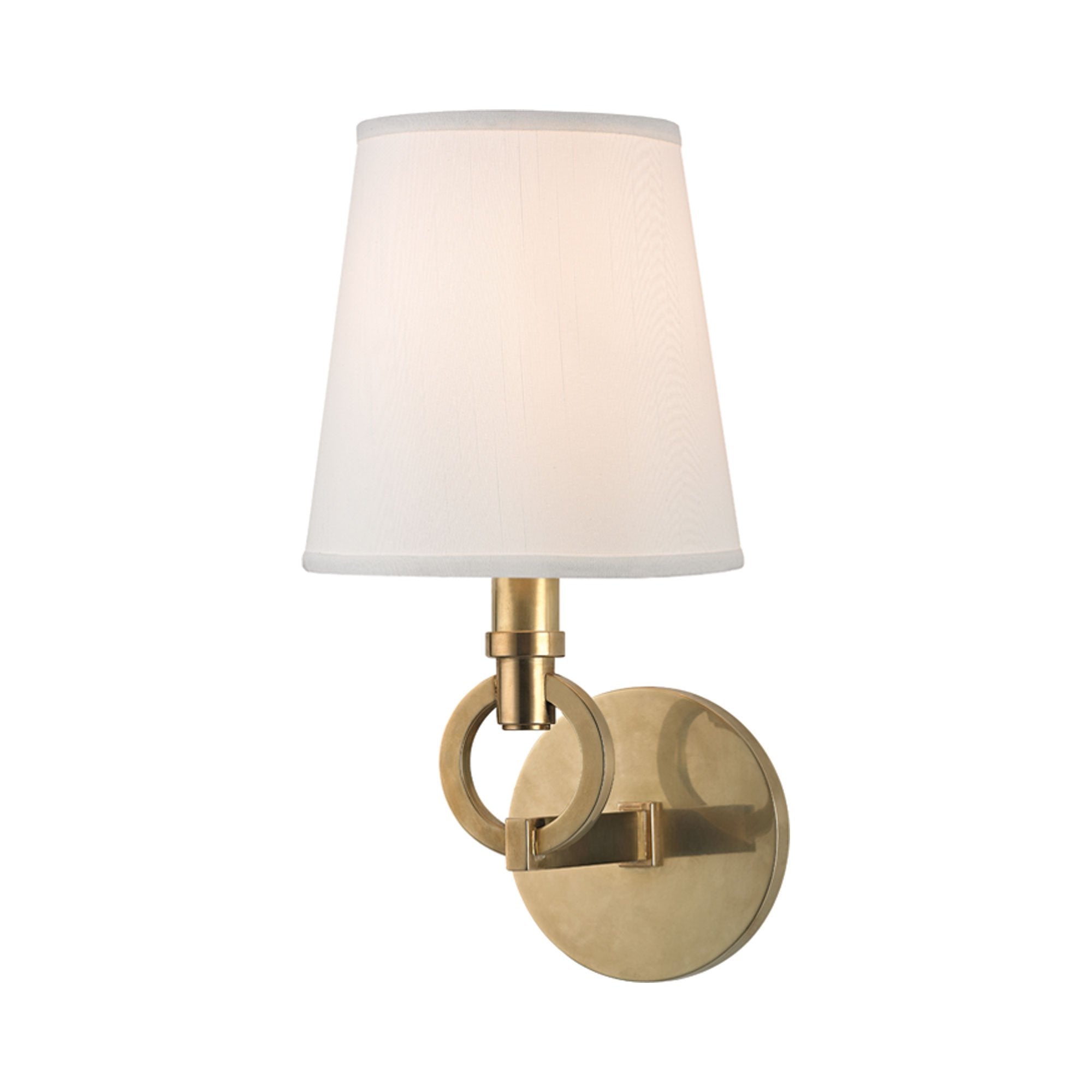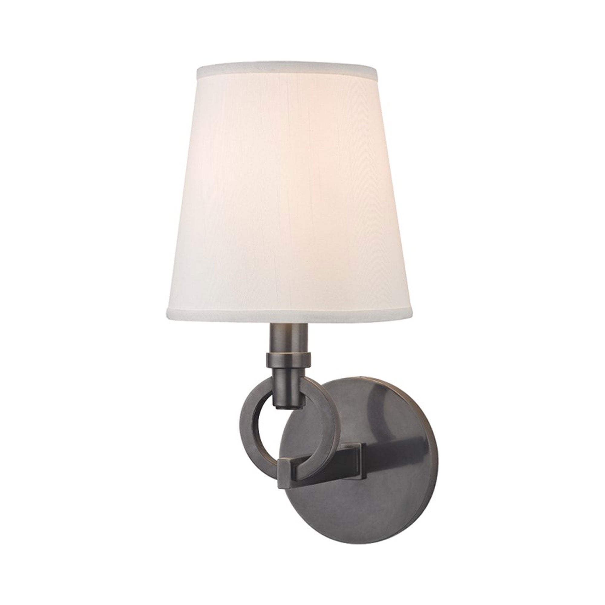 Malibu Wall Light presents a sense of poise and peace, its arm a thick ring of cast metal. A trimmed and tapered shade complements the assured simplicity and round lines of this attractive sconce.