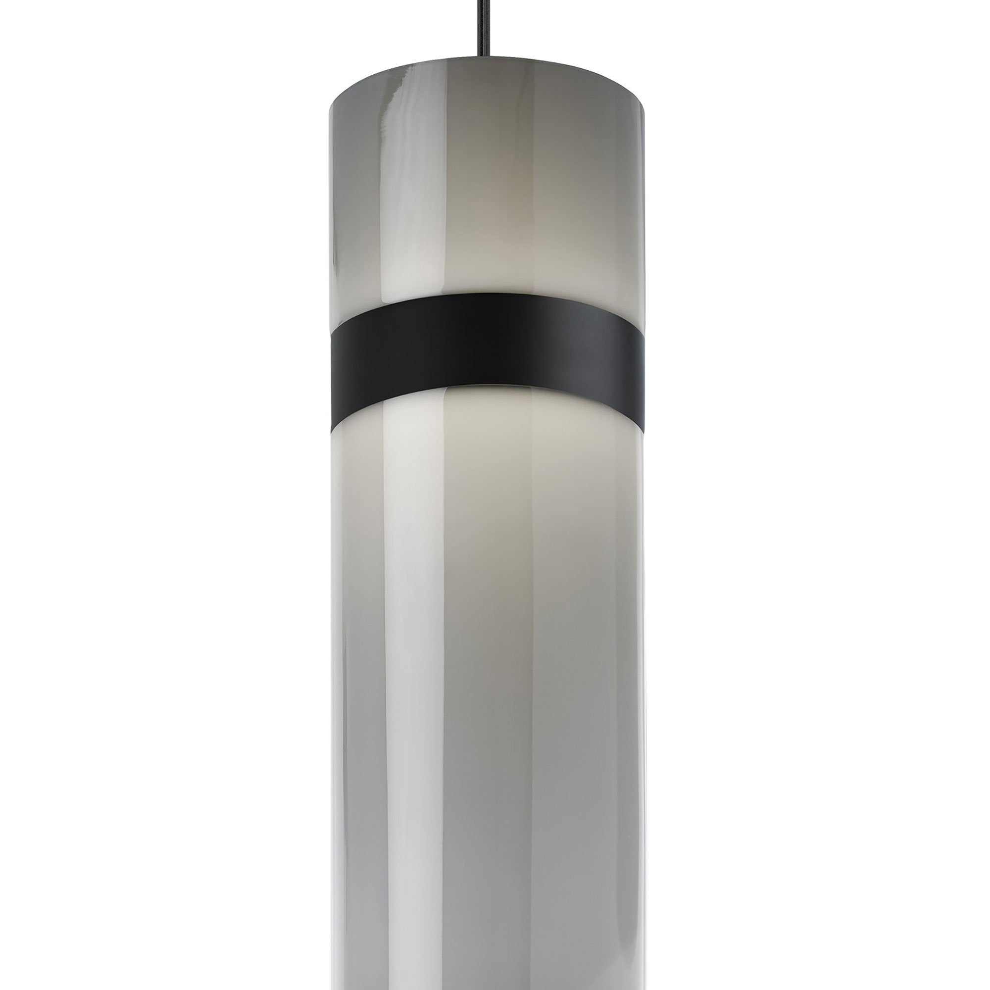 The Manette Grande LED Pendant Light by Sean Lavin for Visual Comfort Modern is an elevated version of the classic cylinder pendant. With its simple cylindrical design and added sleek metal bands, the Manette Grande exudes style and simplicity. This hand-blown pendant can be customized via several color combinations to match your unique preferences. Available color options include Clear, Smoke, White and Transparent Smoke. Three on-trend hardware finishes are available along with your choice of energy efficient LED lamps. Due to its larger size, the Manette Grande is ideal for kitchen island task lighting, dining room lighting and home office lighting applications. Your choice of 5 upper and lower glass and acrylic color combinations allow opportunity for incredible personalization. LED light sources fire simultaneously up and down to evenly illuminate the glass while contributing both direct and indirect illumination.
