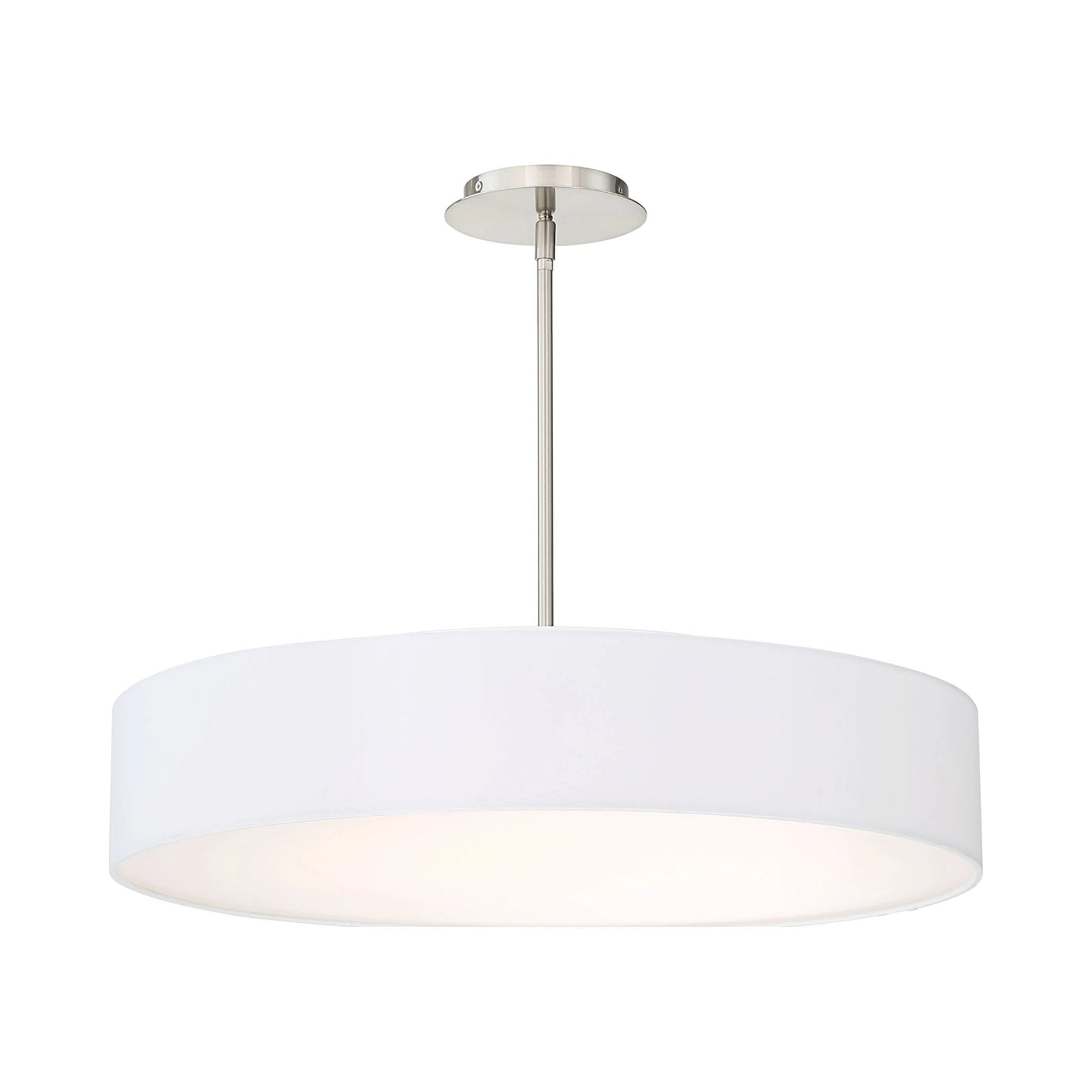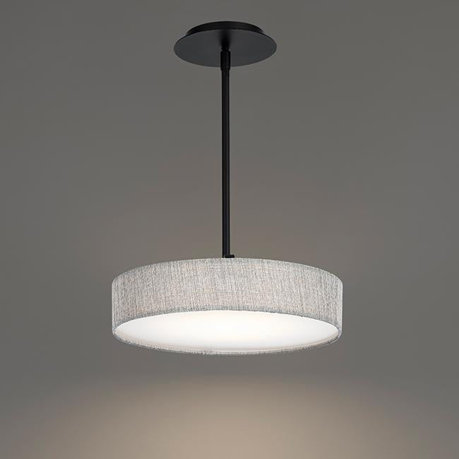 A Luminous fabric shade with urban chic sophistication & LED illumination softened with a fabric shade. Manhattan easily converts from a Semi-flush mount to a pendant.