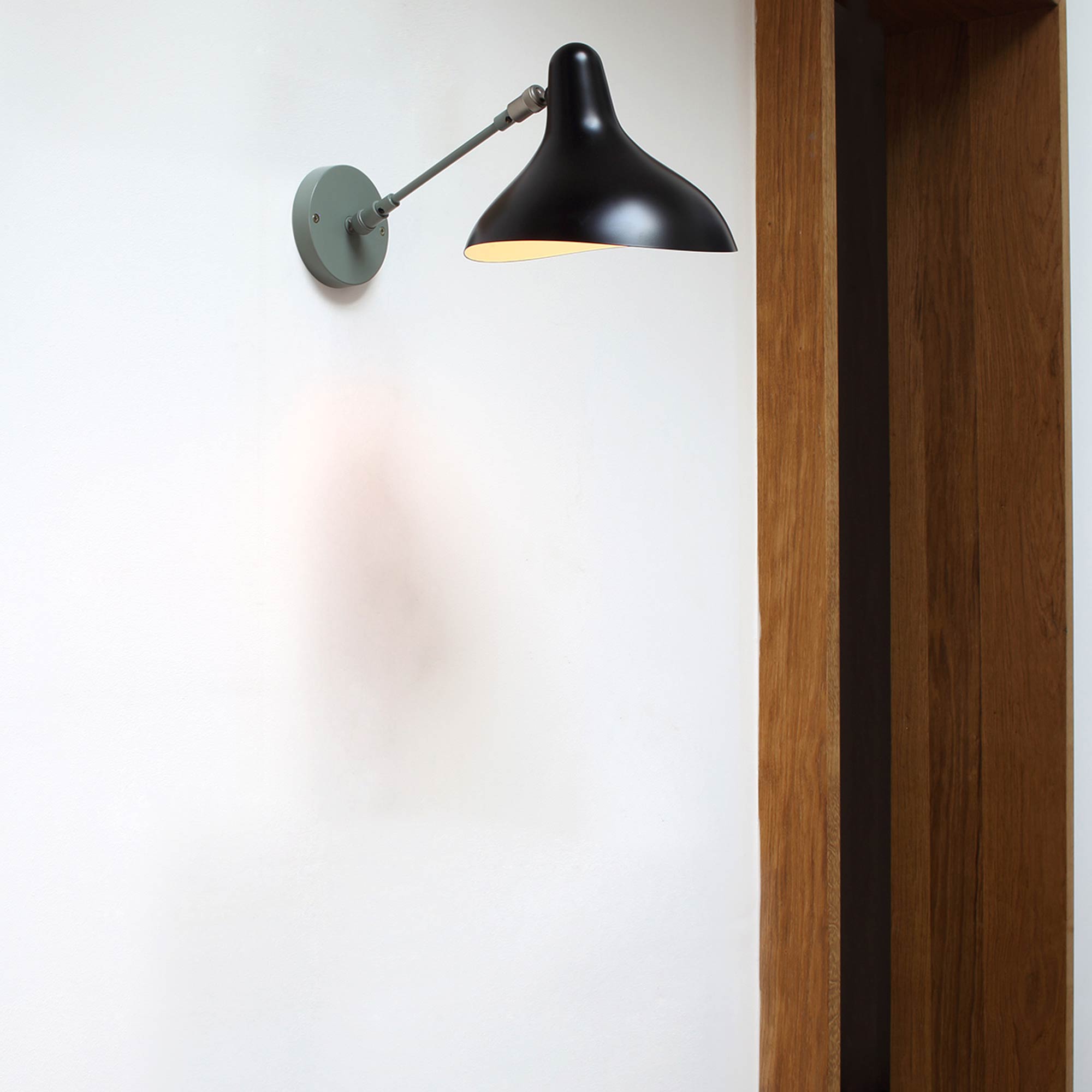 Wall lamp in steel and aluminum. Movement is the source of inspiration for all Bernard Schottlander's work: artist, engineer-handyman, he has perfected a clever pivot-counterweight system, using flexible and resistant metal rods.