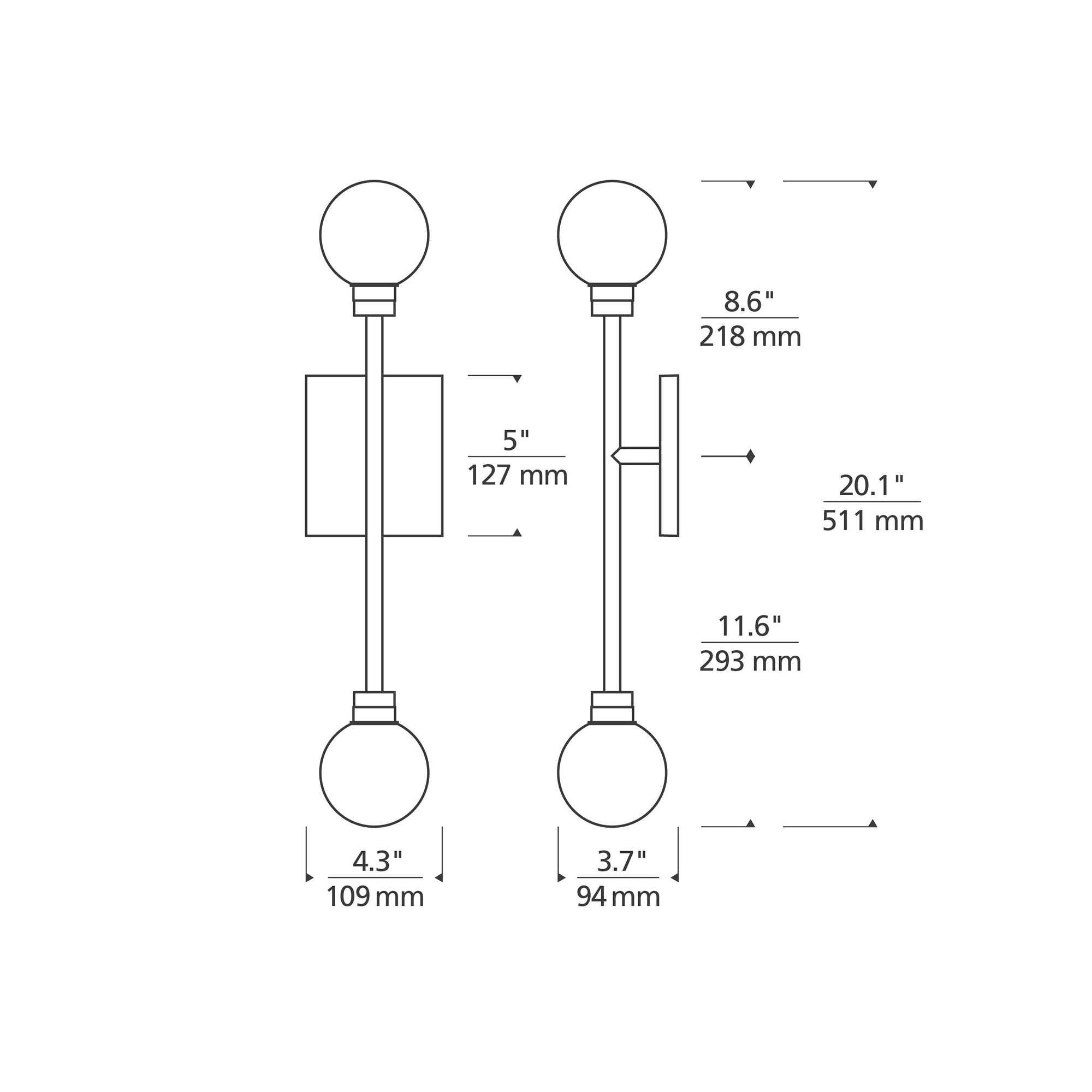 The Mara LED Wall Light by Sean Lavin for Visual Comfort Modern features two frosted glass orbs adding charm as the LEDs illuminate through diffusers to create a soft glow. Offered in three distinct finishes, the Mara LED Wall Light rounds out the entire Mara family of chandeliers, pendant and ceiling mount. Mounting options include vertical or horizontal, great for any bathroom or vanity lighting. Lamping options are compatible with most dimmers.