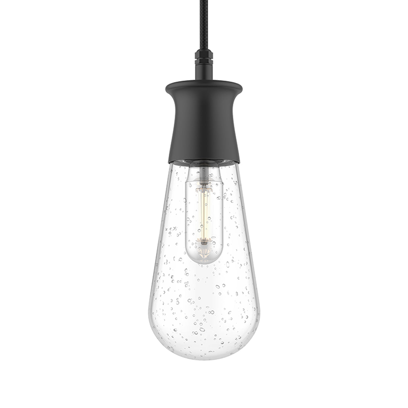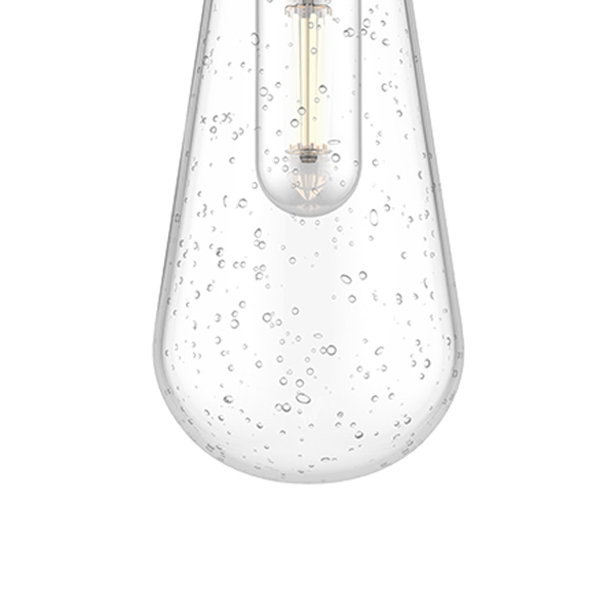 Visualize the emulation of a delicate droplet adding soft lighting in a compact space. The Marcel Outdoor Pendant Light from Alora Mood creates a minimalist aesthetic with visual impact, blending clear bubble glass and metal to illuminate outdoor entertaining settings.