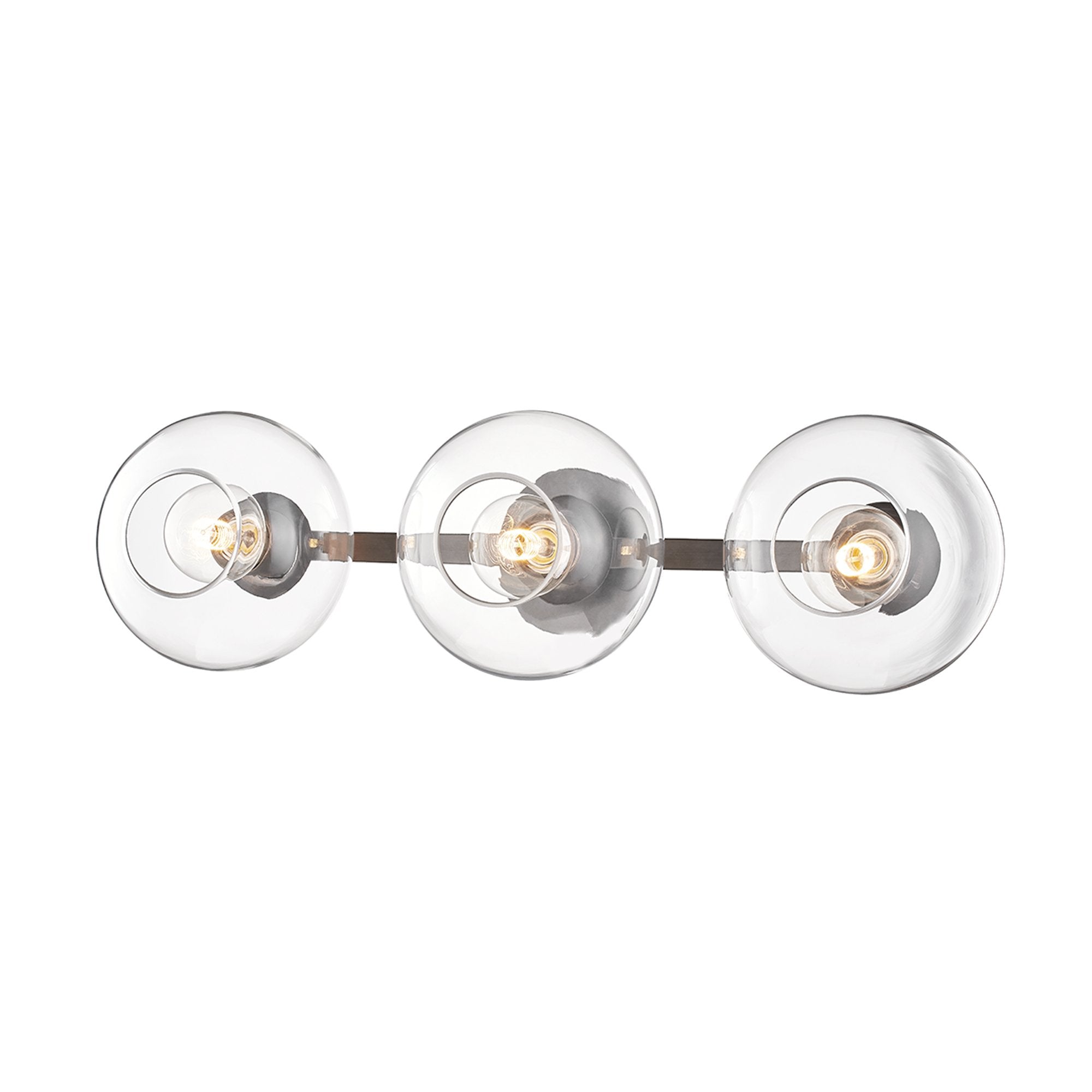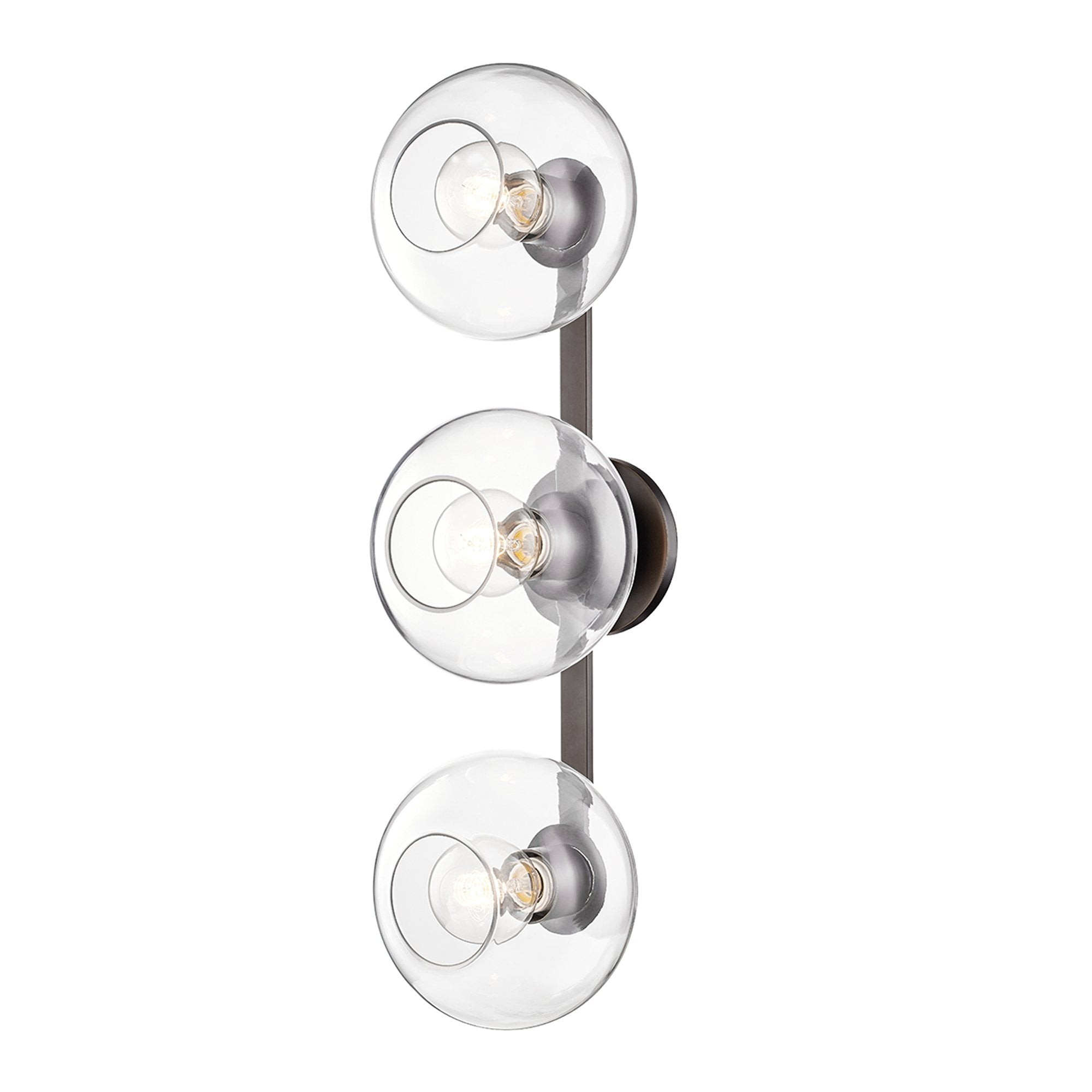 Harness the artisan character of delicate glass to embellish a modern space, adding the Margot 3-Light Wall Light from Mitzi to a contemporary bath or living space. With a classic and cheerful semi-orb design, its oblong clear glass shades and metal frames deliver metropolitan aesthetics to update a space with a signature style.