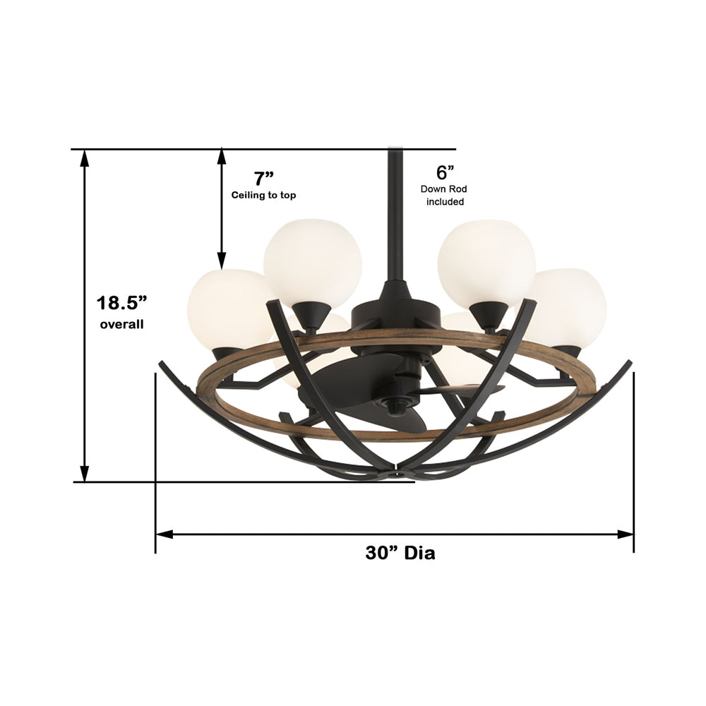 Embrace a striking look of detail-rich design elements that form a ceiling fan with brilliant lighting functions. The Marilyn LED Ceiling Fan from Minka Aire puts rustic style on full blast with a mix of metal and wood, as prominent globe shades emit energy-efficient ambient lighting. Combining modern farmhouse with vintage nautical vibes, this ceiling fan and light become a focal point in any setting.