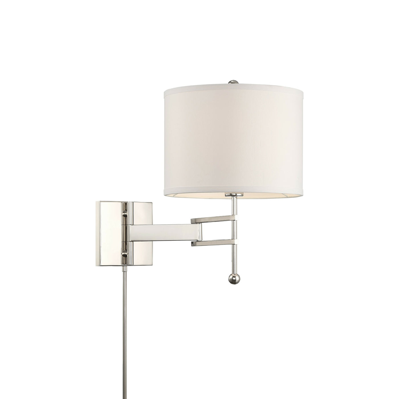 Functionality and fashion work in tandem in a light fixture with a sense of classic style. The Marshall Wall Light from Crystorama delivers a conventional shaded lamp design, wall-mounted with an adjustable metal frame that moves light direction as desired. A minimum of accent elements works to its cleanly styled advantage, producing a timeless and versatile imprint.