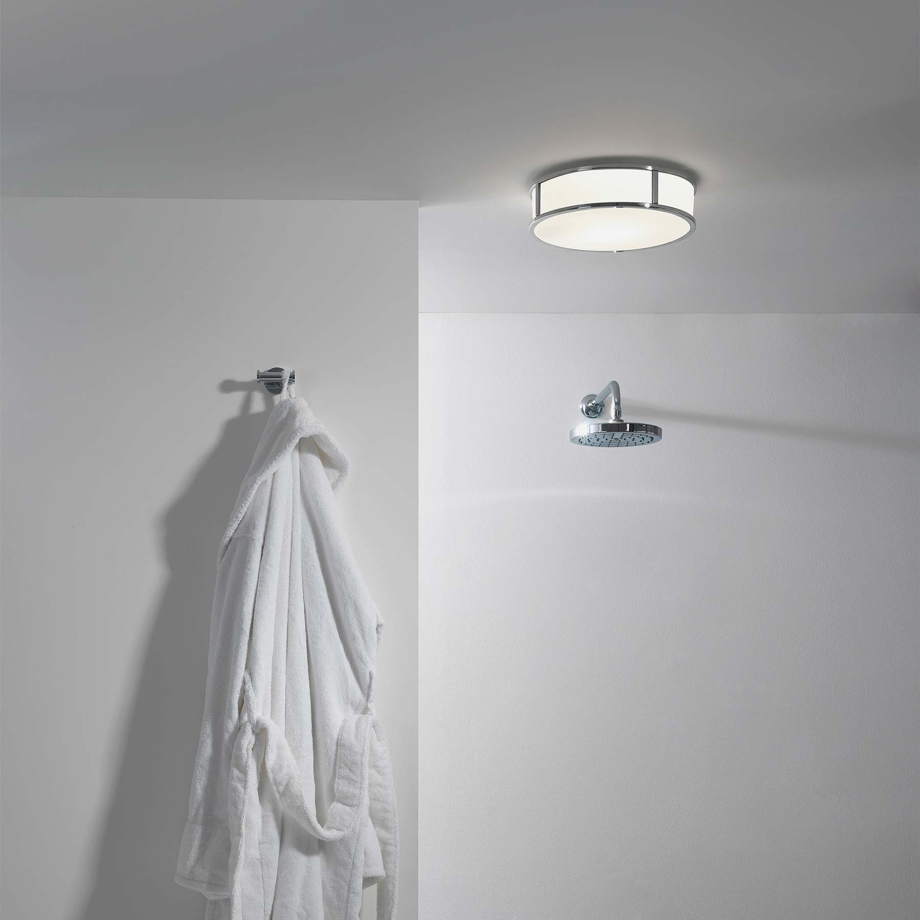 Iconic Art Deco style delivers cool retro attitude to any room or hallway when the Mashiko Round Flush Mount Ceiling Light from Astro Lighting becomes a primary source of illumination. Crisp linear styling blends circular and straight-line framing in stainless steel, surrounding a glass shade and diffuser that sends ambient lighting in a main living space.