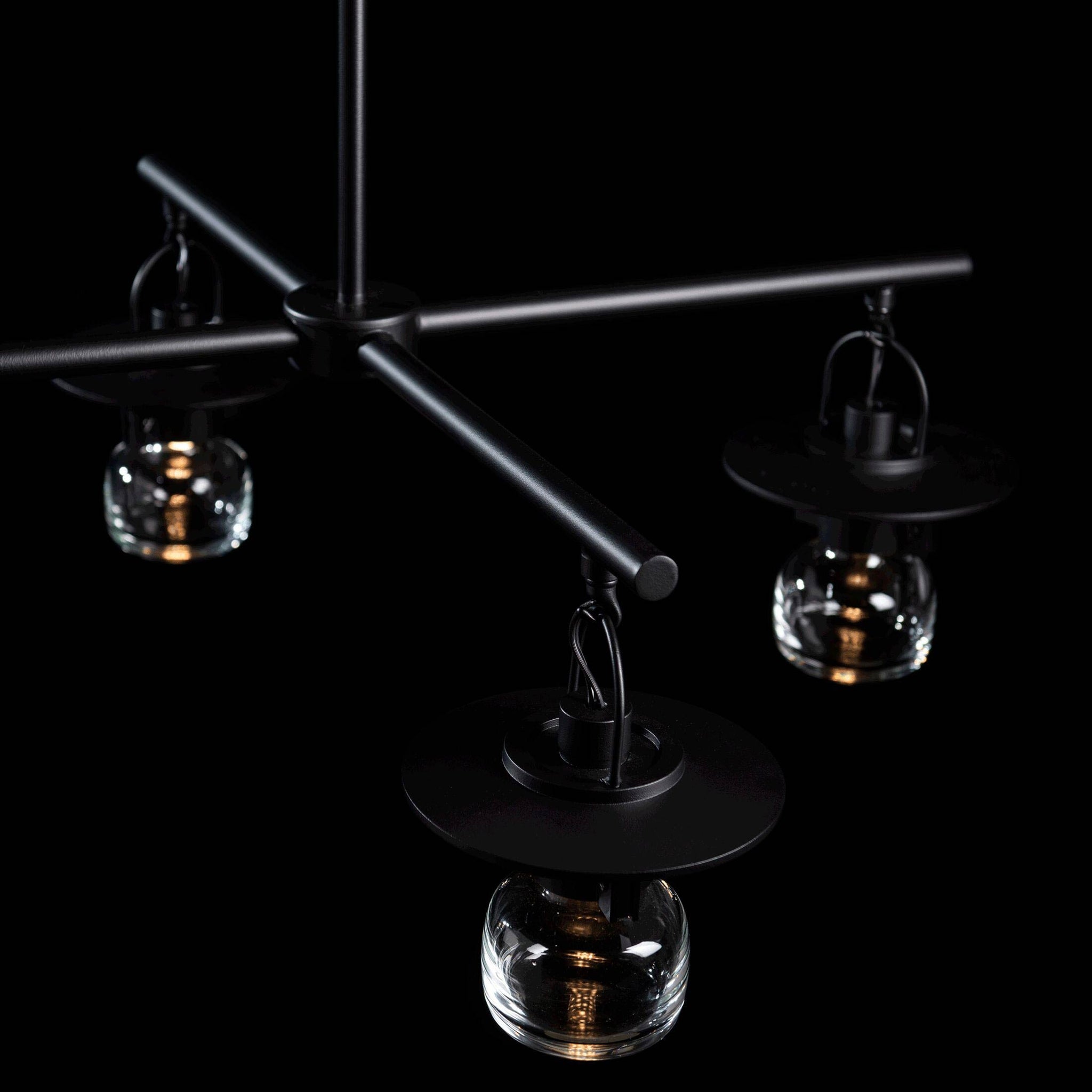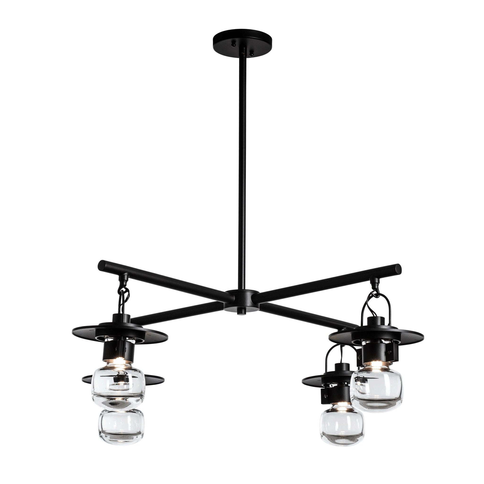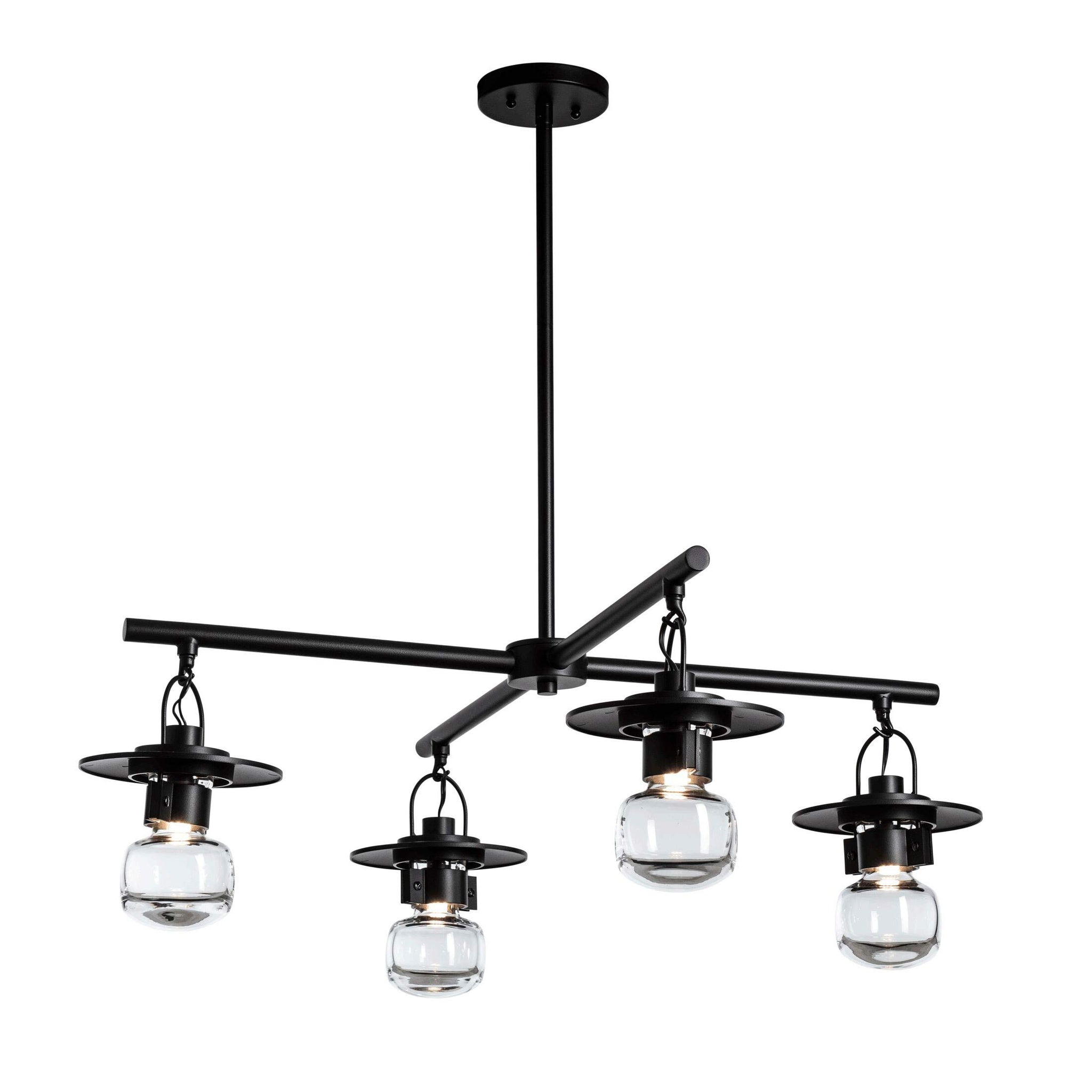 Modern meets industrial on the design of the Mason Multi-Light Outdoor Pendant Light from Hubbardton Forge.