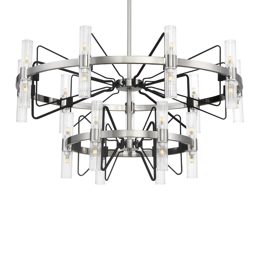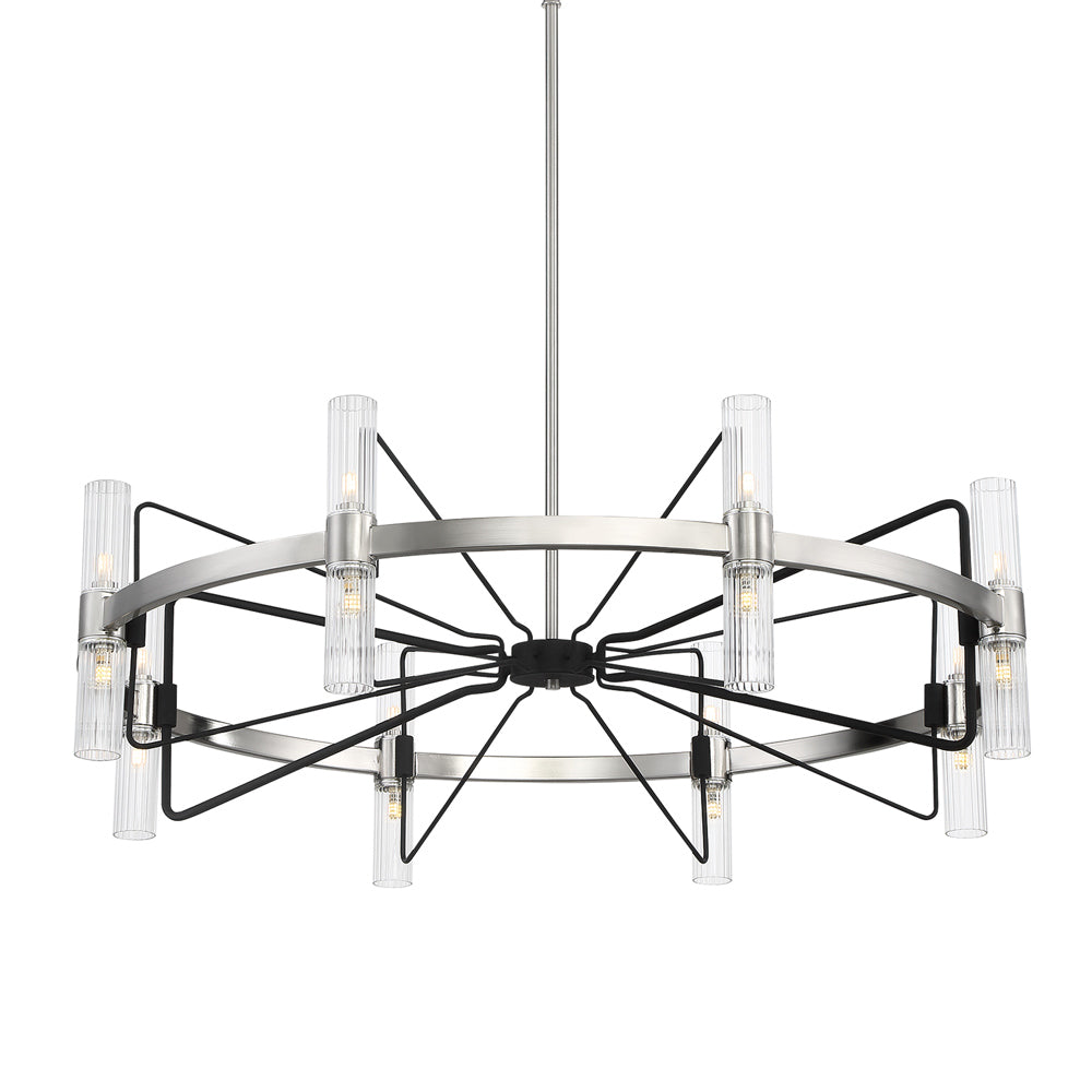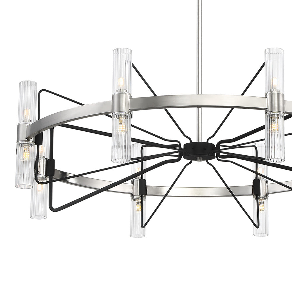 A design aesthetic reflects the chaotic yet energy-abled spirit of an urban center, adding a dramatic look with impact. The Mass Transit LED Pendant Light from George Kovacs is inspired by an engineered design scheme and blends clear ribbed glass cylinder shades arranged carefully around a metal ring with geometric dark metal accents. With energy-efficient illumination and an industrial vibe, this chandelier makes a splash in modern spaces.