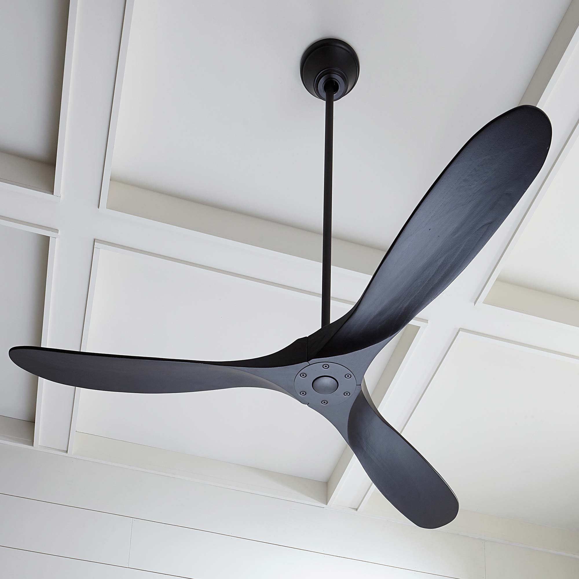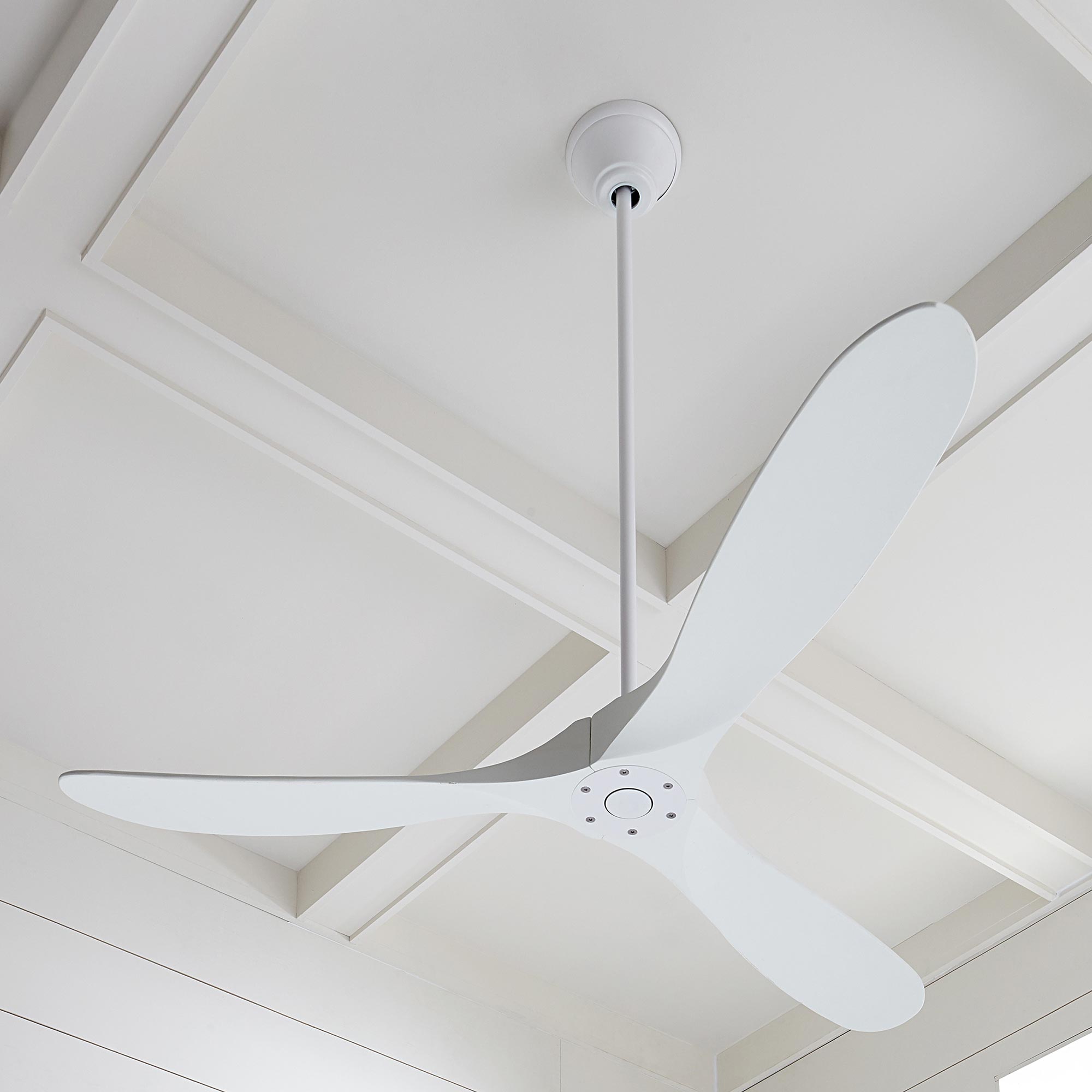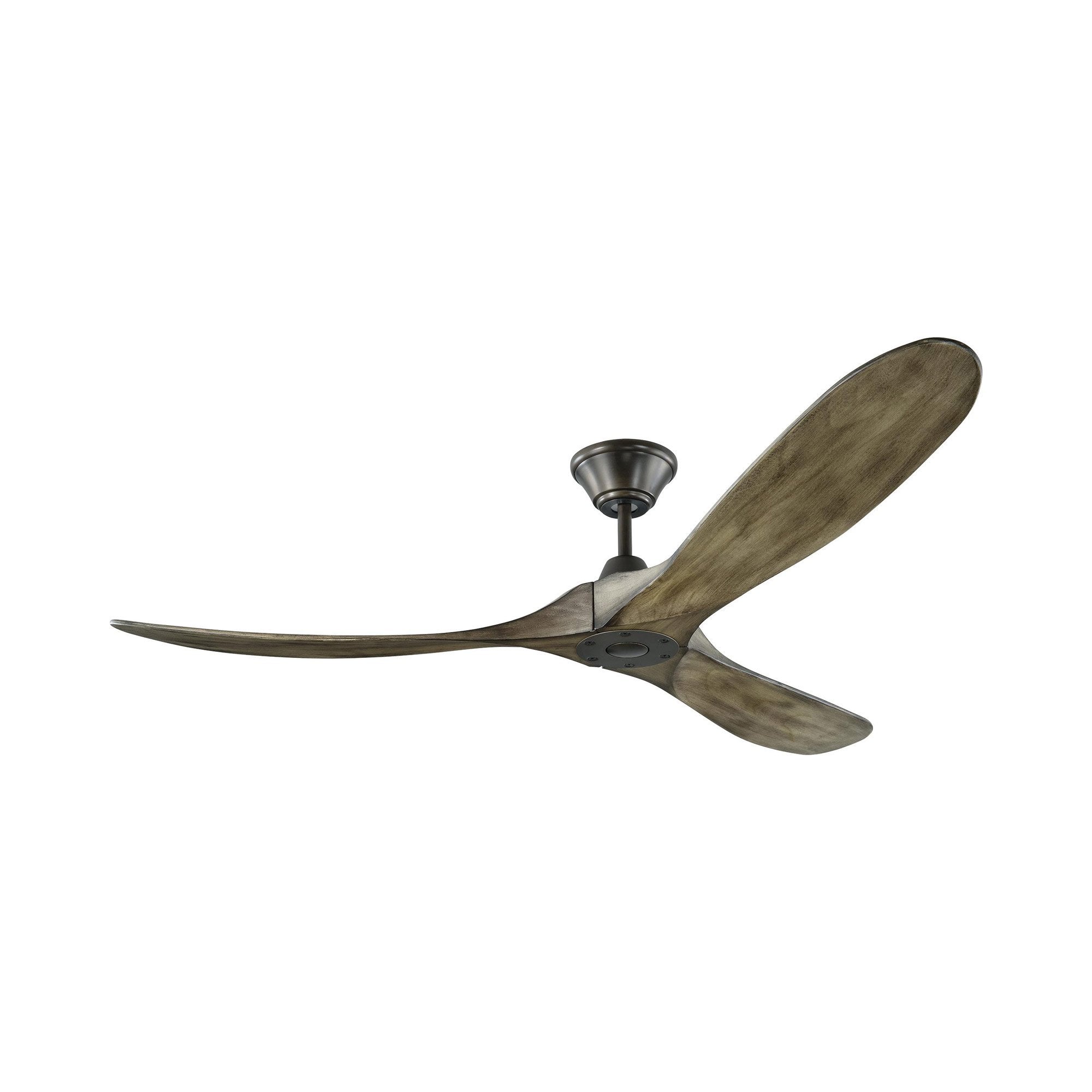 With a sleek modern silhouette, a DC motor and super energy-efficiency, the 60" Maverick ceiling fan from Visual Comfort Fan features softly rounded blades and elegantly simple housing. Maverick has a 60-inch blade sweep and a 3-blade design that delivers a distinct profile and incredible airflow for living rooms, great rooms or outdoor covered areas. It includes a hand-held remote with six speeds and reverse, and is available in six distinct finish options: Brushed Steel housing with Dark Walnut blades, Brushed Steel housing with Koa blades, Matte Black housing with Dark Walnut Blades, Aged Pewter housing with Light Grey Weathered Oak blades, Matte Black housing with Matte Black blades and Matte White housing with Matte White blades. All versions feature beautiful hand-carved, balsa wood blades. ENERGY STAR qualified. Maverick fans are damp-rated, and may be used indoors and in covered outdoor spaces.
