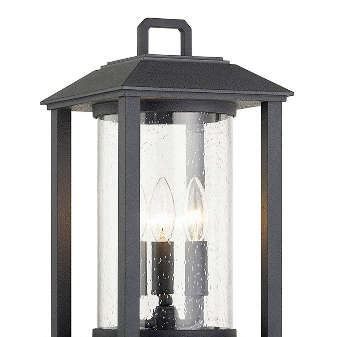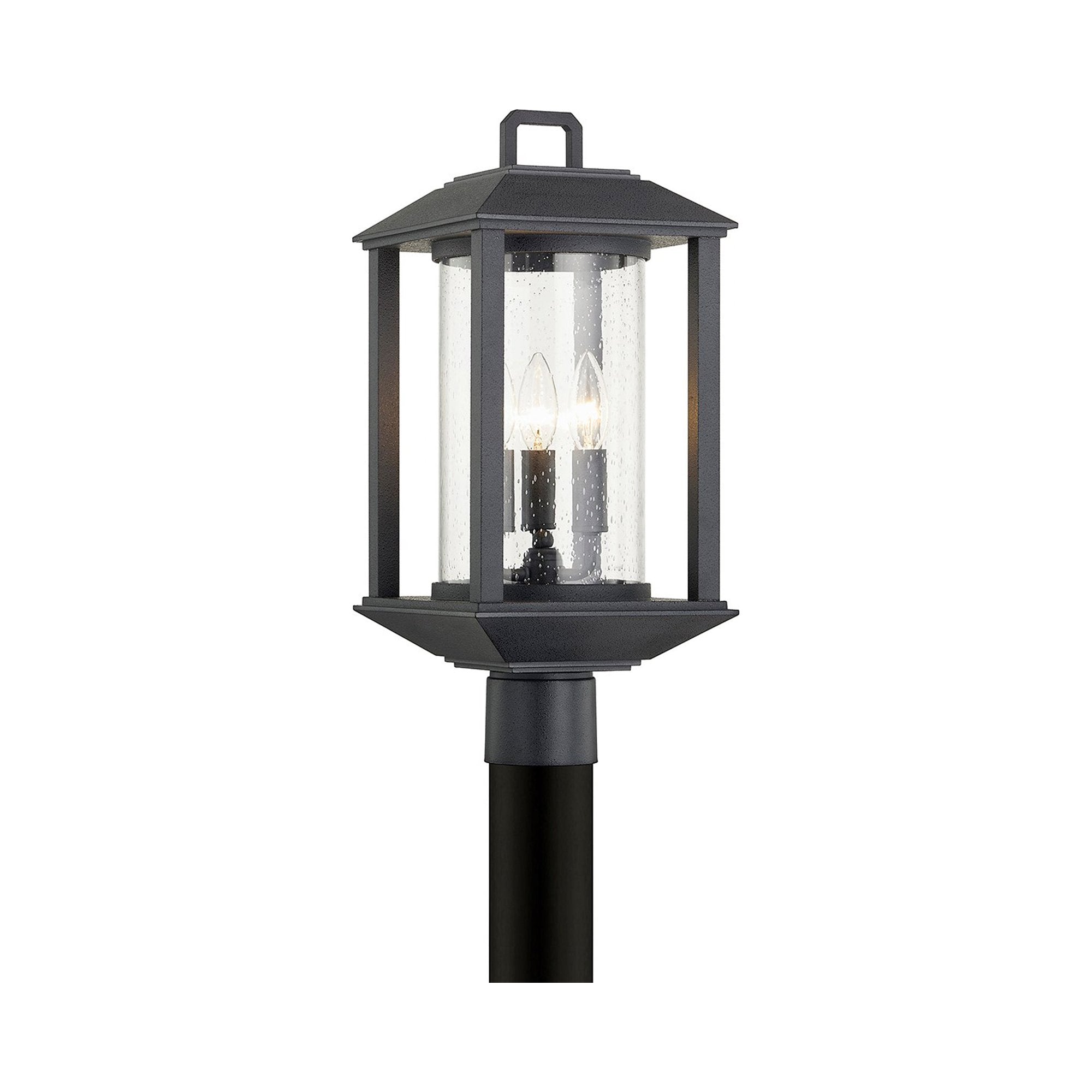 Classic village vibes embellish the weathered graphite finish hand-crafted aluminum construction of the McCarthy Outdoor Post Light from Troy Lighting, which offers a romantic clear seeded glass shade.