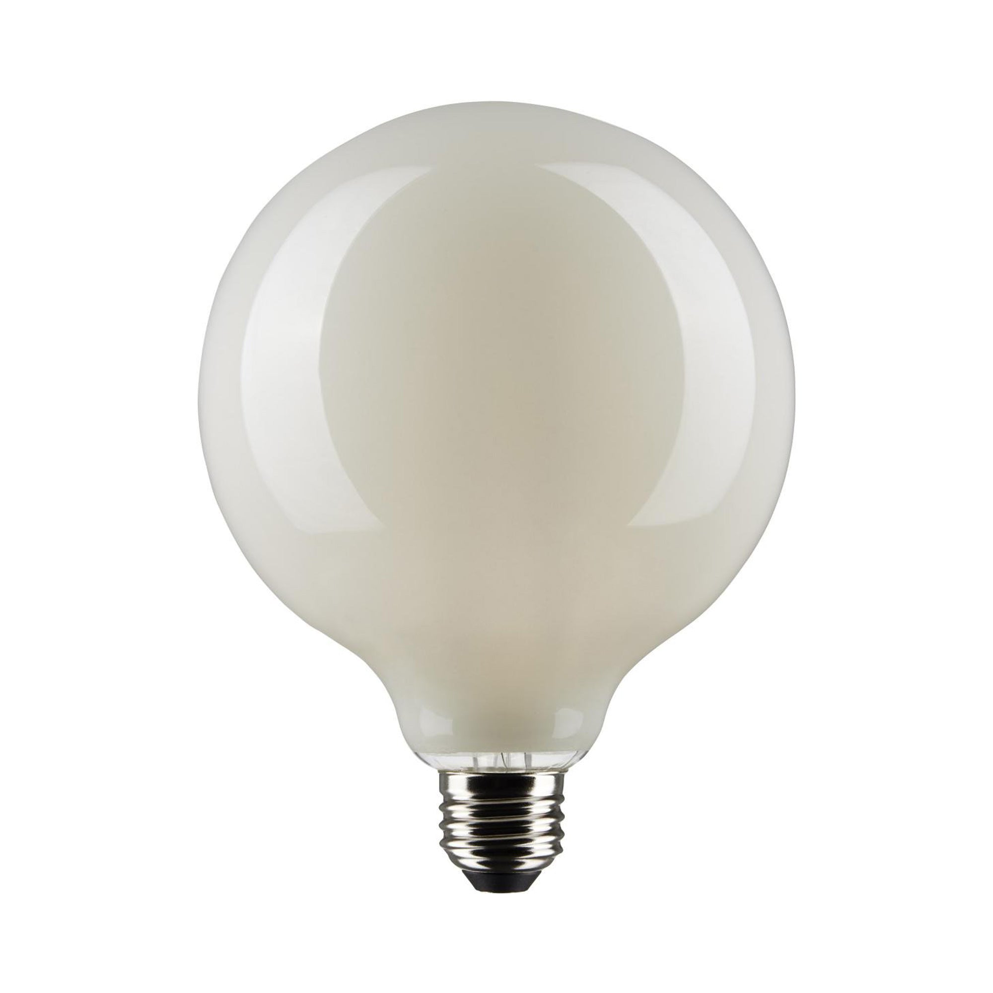 Soft white light emanates from the orb shape of the Medium Base G Type LED Bulb from Satco.