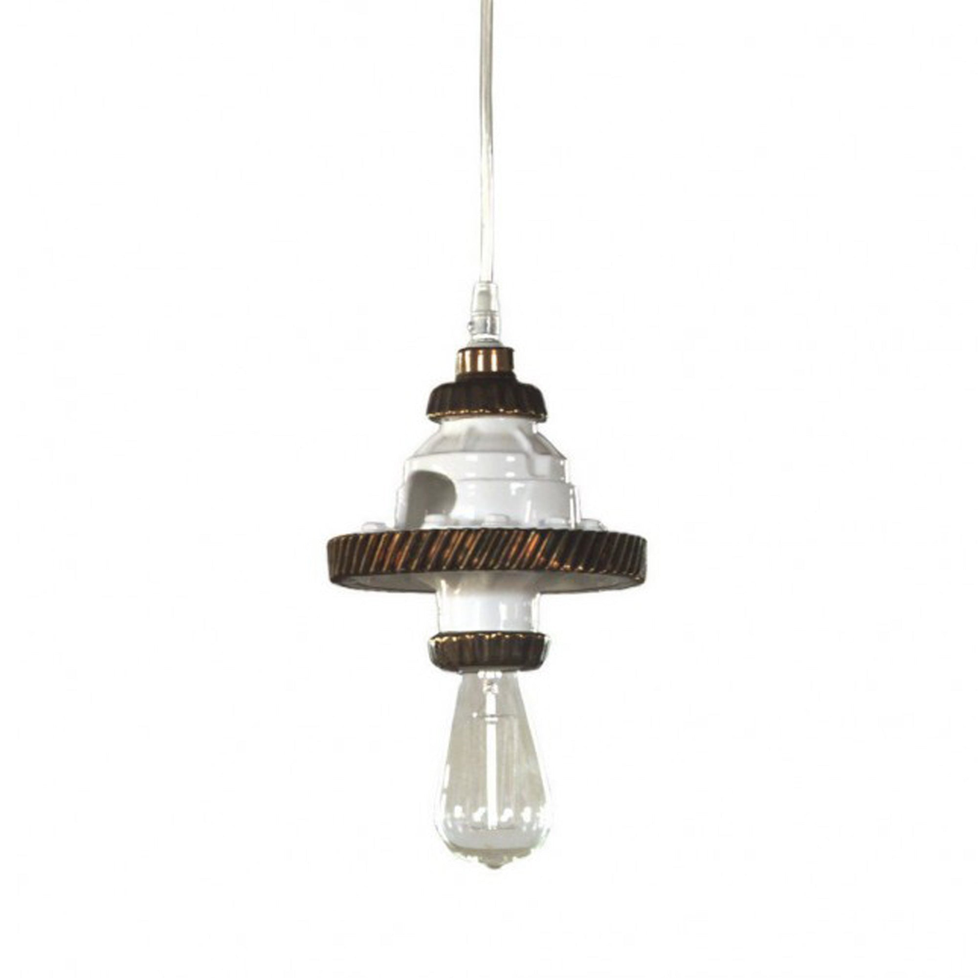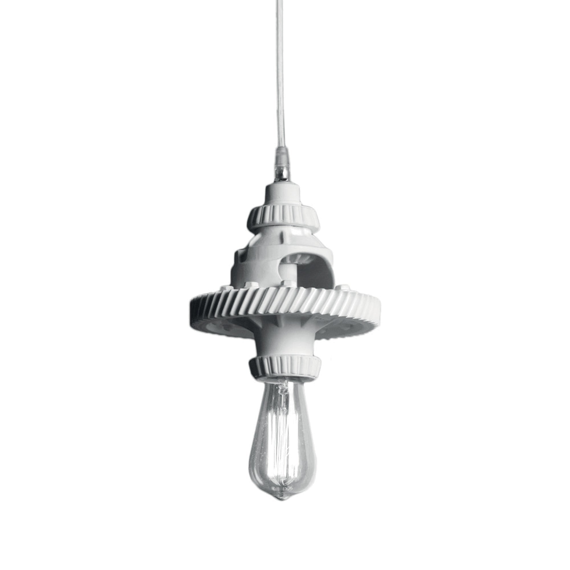 Pure industrial touches of the MEK 1 Pendant Light from Karman make it a charming utilitarian lighting piece for loft apartments and beyond. An array of stacked gears supports an exposed LED bulb, further lending to the bare-bones aesthetic.