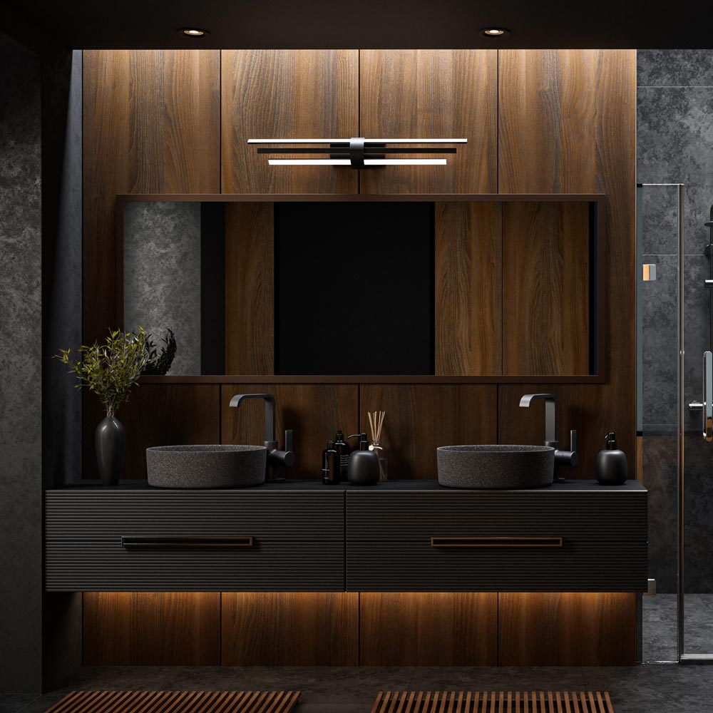 An industrial motif comes to mind when the Melody LED Bath Wall Light from dweLED adds a powerful geometric vibe to contemporary bath spaces. Straight slices of extruded aluminum taper as they cascade downward, with full-length silicon diffusers offering tantalizing light flow. This energy-efficient fixture may be mounted in the orientation of your choice.