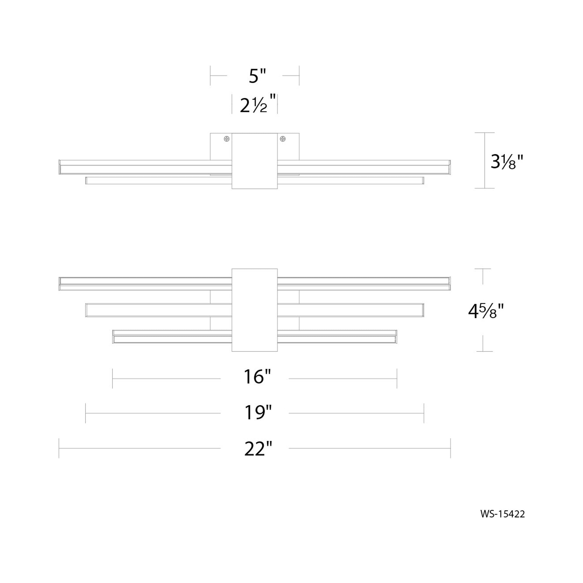 - 22-Inch: 22"W X 4.63"H; 3.13" Extension