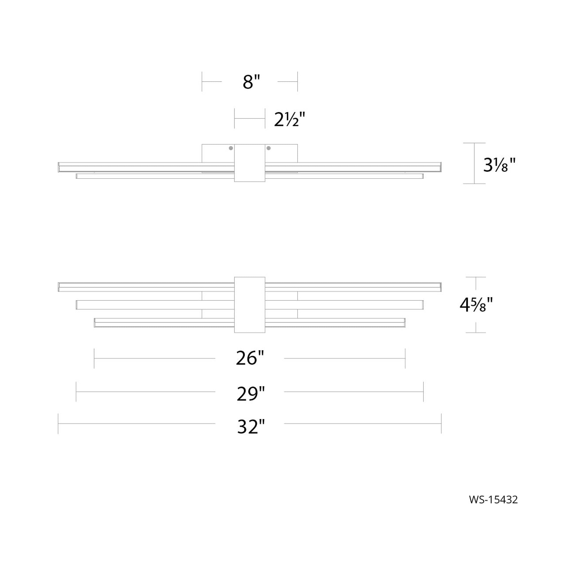 - 32-Inch: 3 X 14W 120V-277V integrated LED modules; 621 lumens, 90 CRI, 3000K (included)