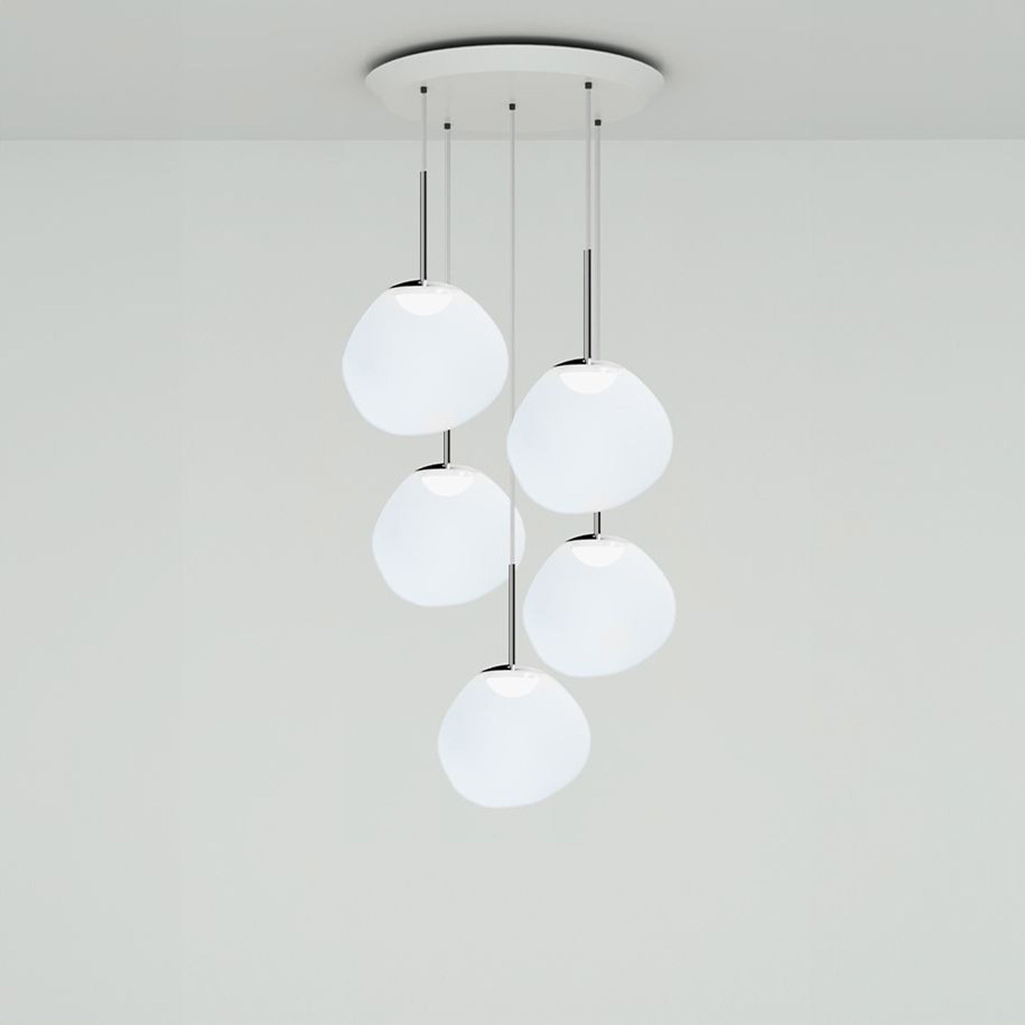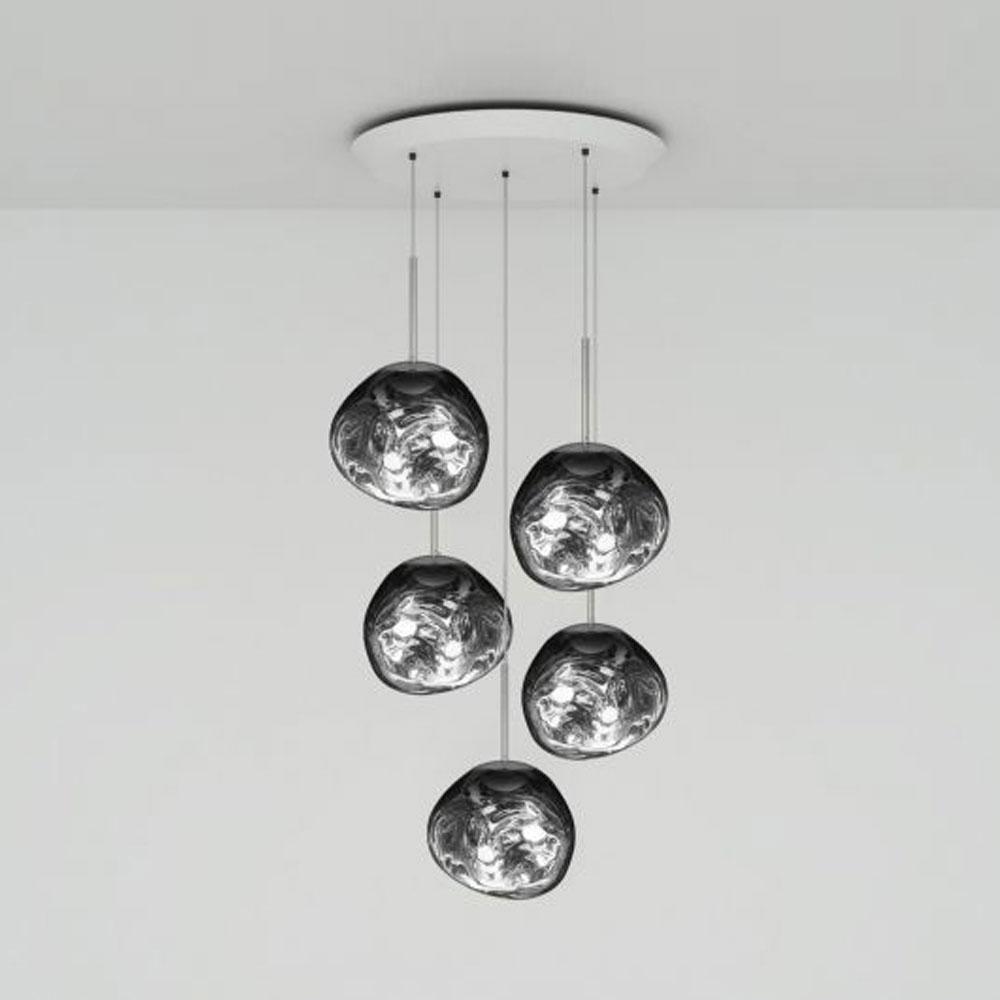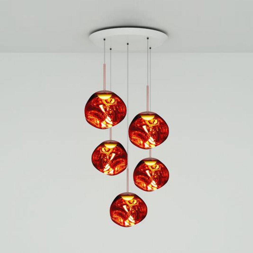 Each light on the energy efficient Melt Mini Round LED Pendant Light from Tom Dixon offers the essence of molten lava serving as a work of art.