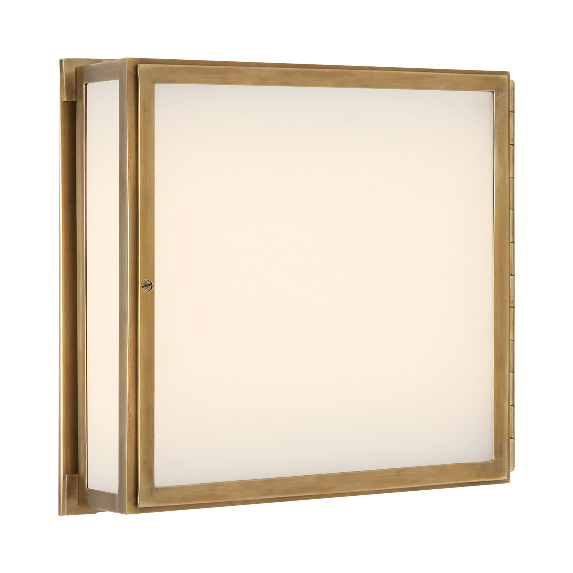 Transform a conventional bath space into an iconic nod to village industrial personality. The Mercer Square Bath Wall Light from Visual Comfort Signature and its open-box styling blends sleek white glass panels couched in a frame constructed of metal in lush finishes.