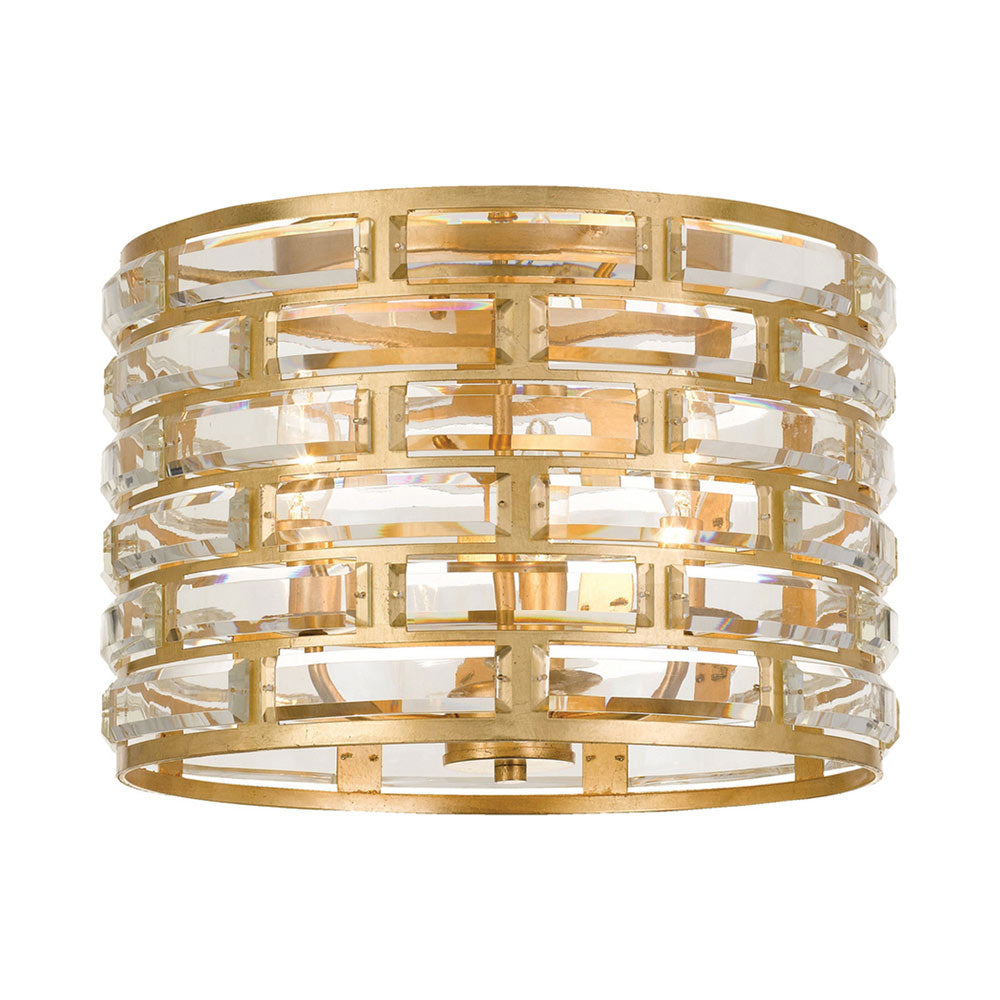 Glam hints infuse the Meridian Flush Mount Ceiling Light from Crystorama. A striking choice in antique gold, it's a rich hue and engaging texture are a perfect complement to jewel-inspired crystals that create a chic drum shade. This flushmount design is the perfect choice for a den, living area or hall.