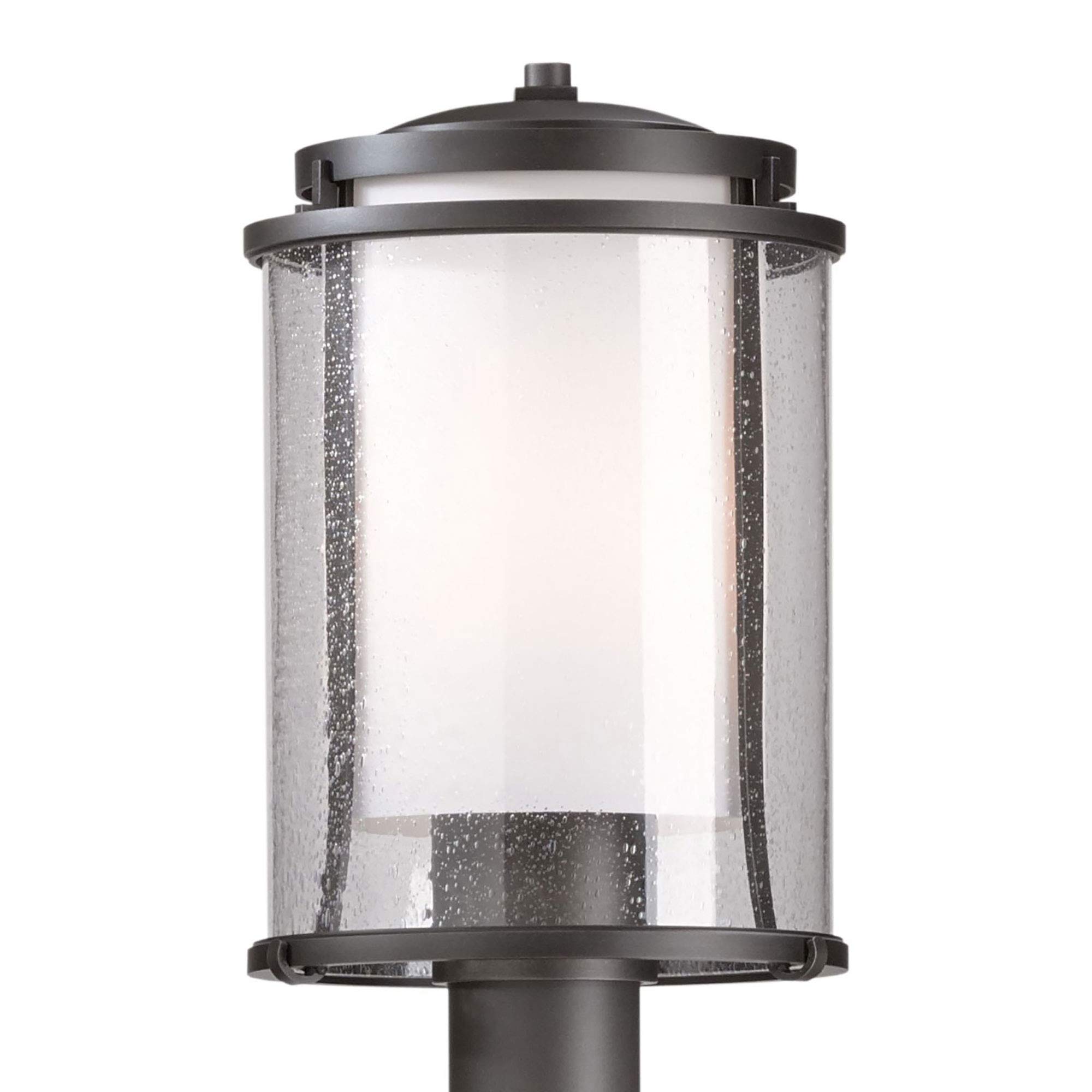 The Meridian Outdoor Post Light from Hubbardton Forge offers a warm glow in the night with a stylish silhouette by day.