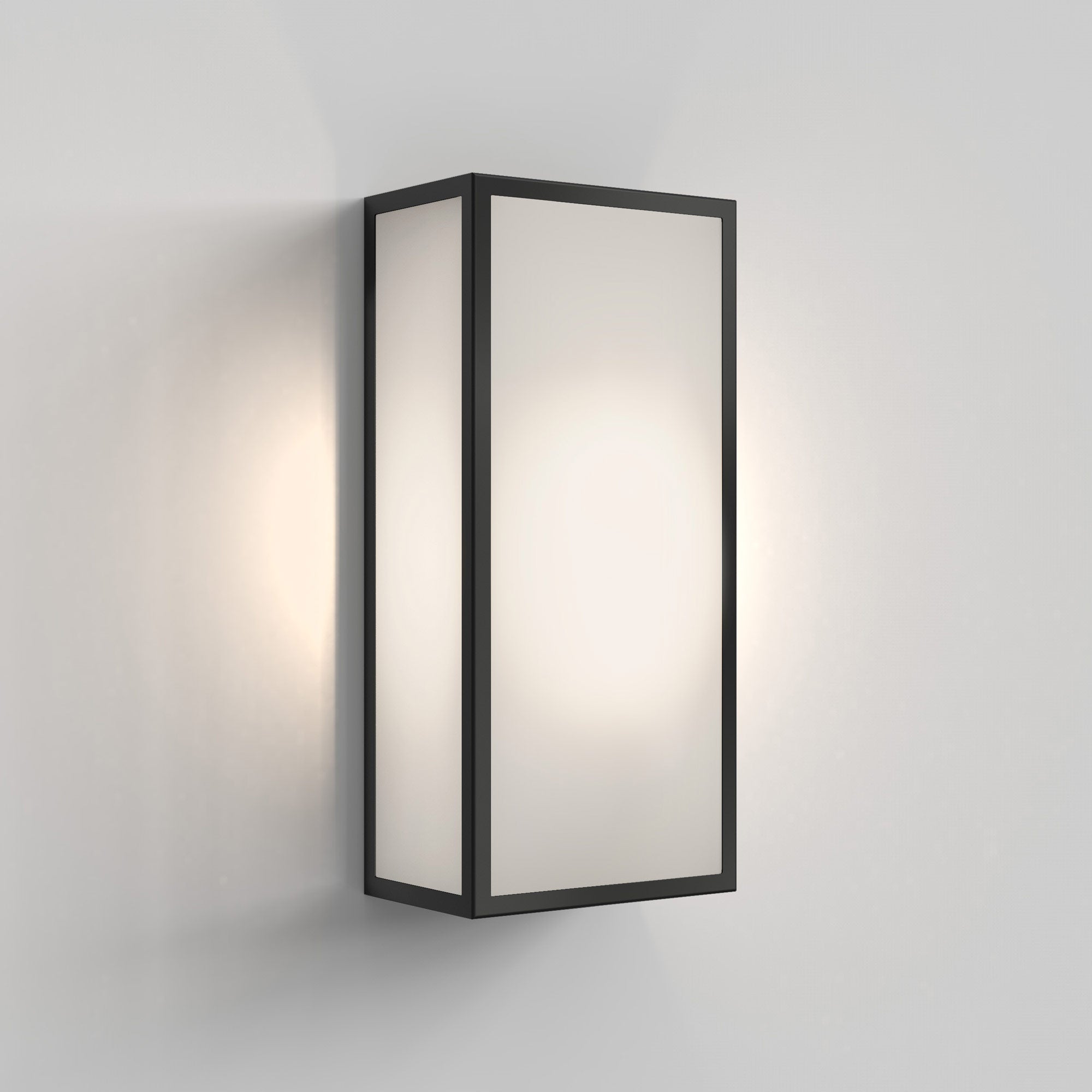 Blending artistry with conventional geometric form, the Messina Outdoor Wall Light from Astro Lighting maintains sophistication in exterior lighting. Ideal for a residential porch or backyard deck space, this metal and glass lantern-inspired light introduces a hint of industrial vibes with the additional convenience of dimming to accommodate time-of-day lighting purposes.