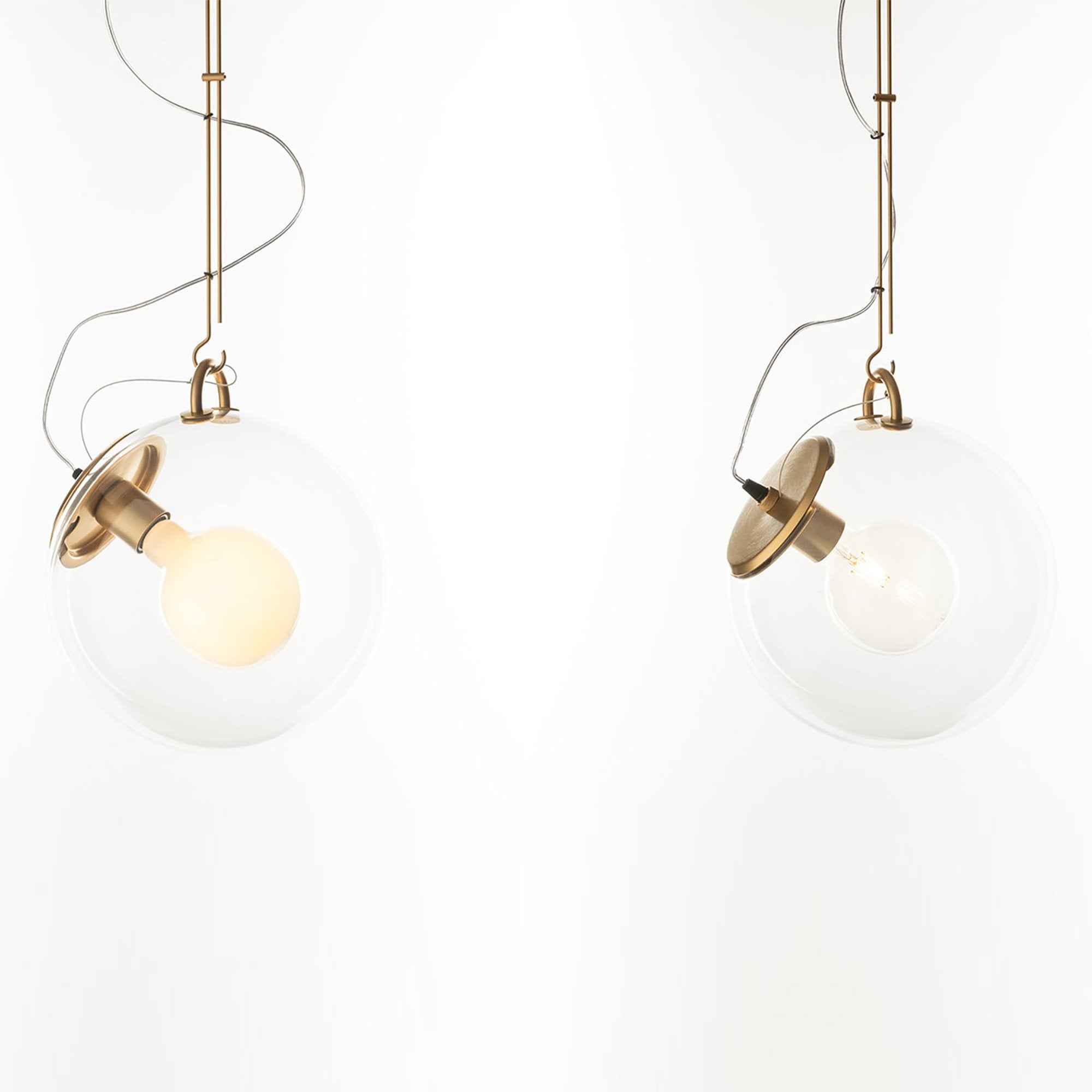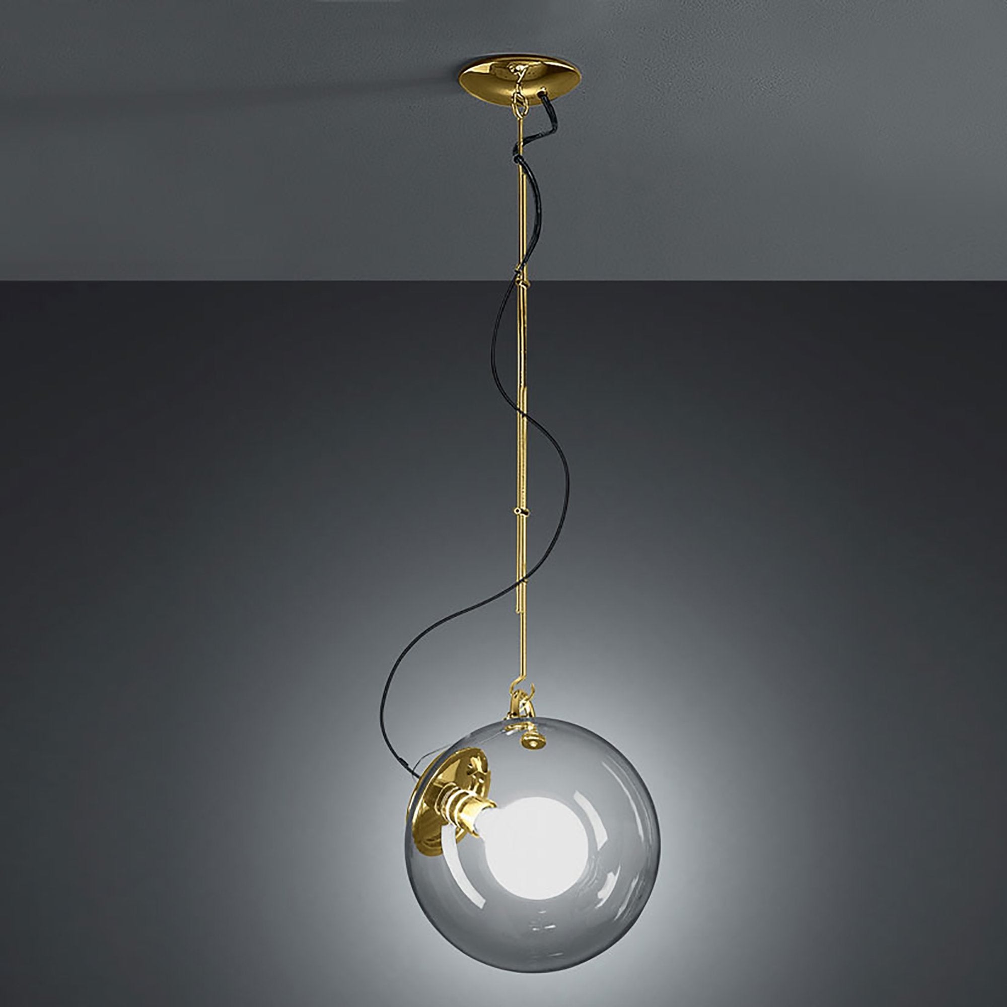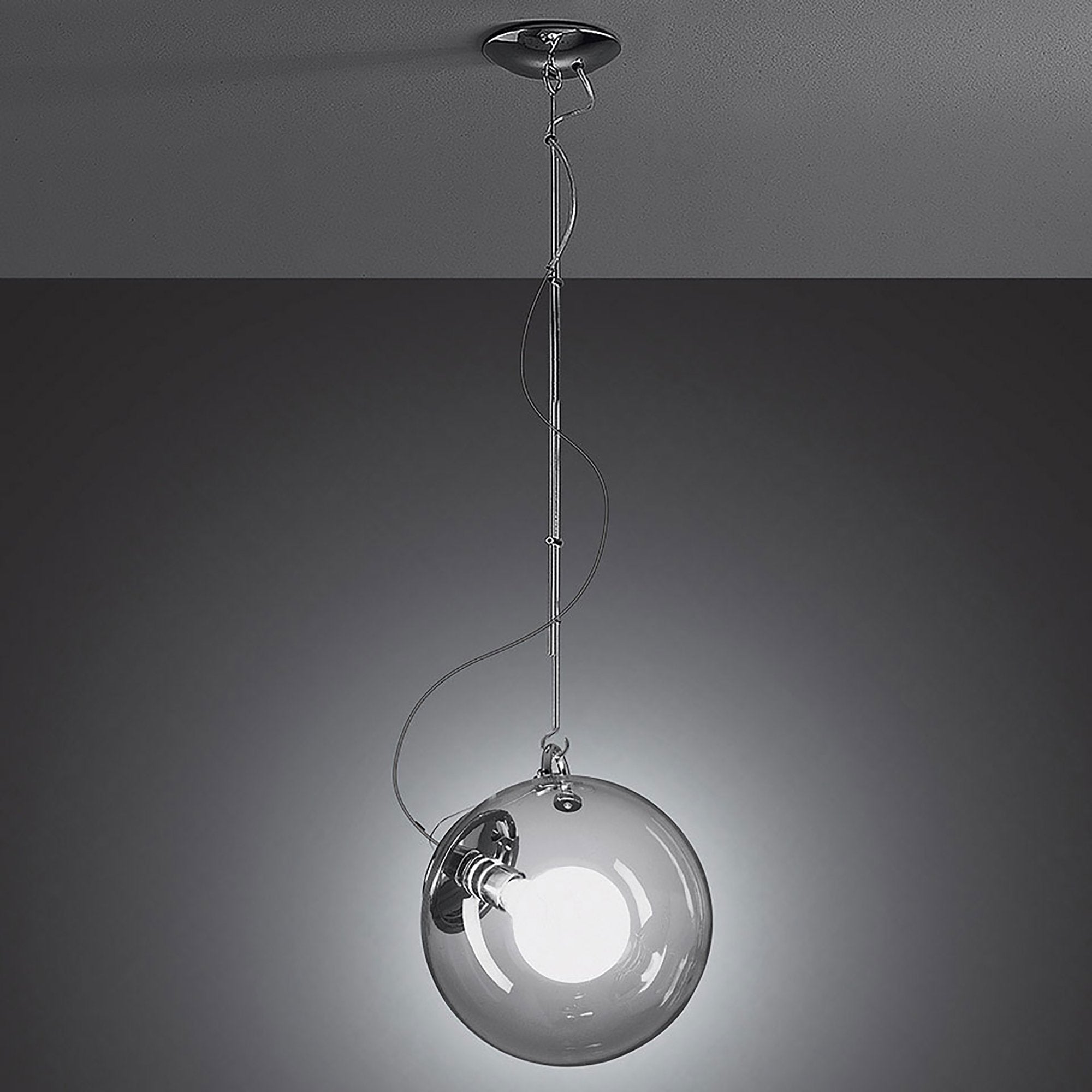 A compelling mix of modern and industrial influences, the Miconos Pendant Light from Artemide features a round glass shade with an off-center light within.
