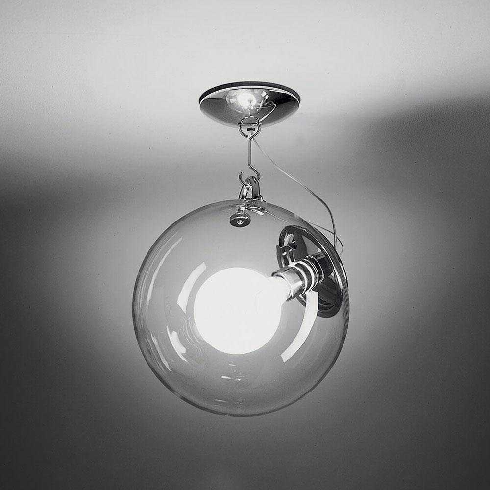 A simple orb of gorgeous glass is elevated with an off-center light that creates a striking profile for the Miconos Semi-Flush Mount Ceiling Light from Artemide.