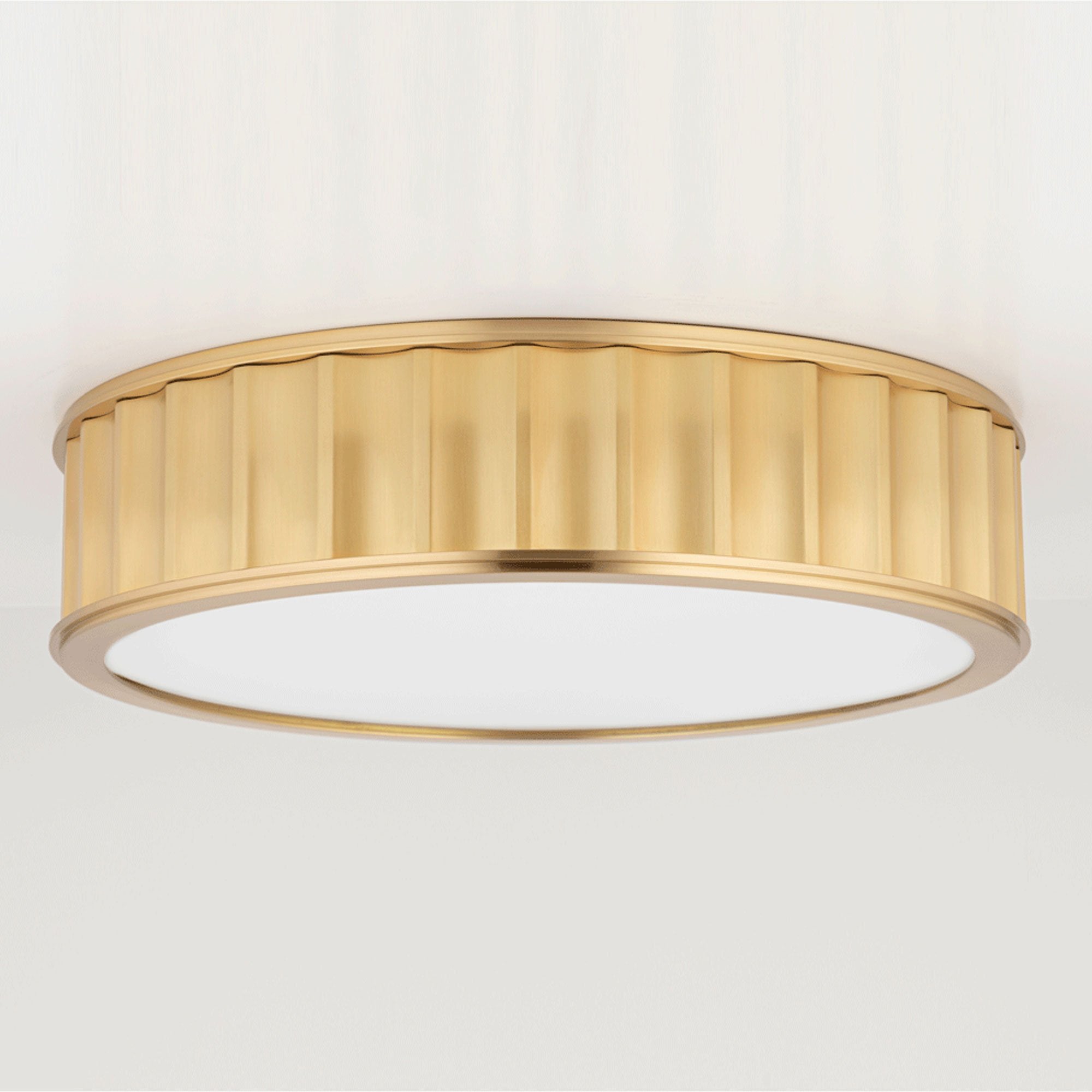 A litany of cool shapes and finishes embellishes the classic design of the Middlebury Flush Mount Ceiling Light from Hudson Valley Lighting, offering a fixture that complements surrounding décor as it infuses ambient lighting in a modern space.