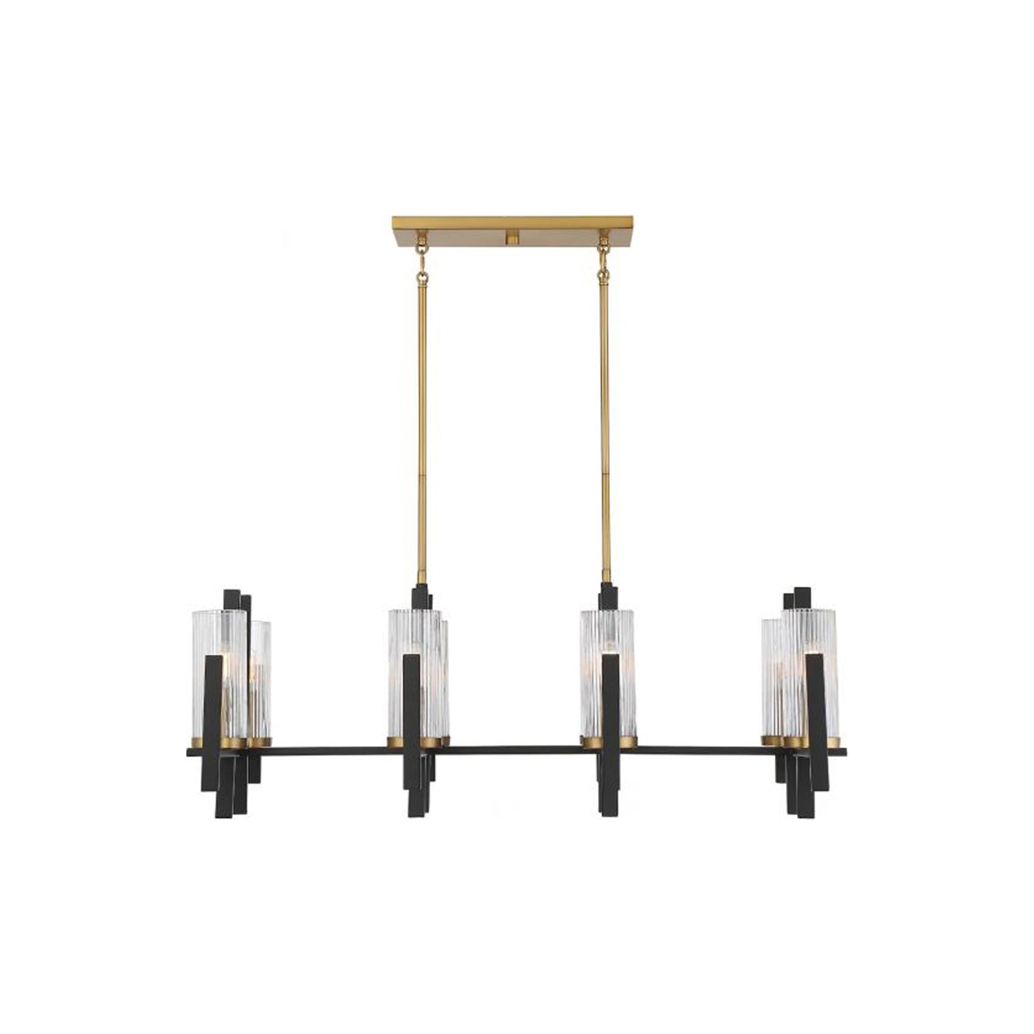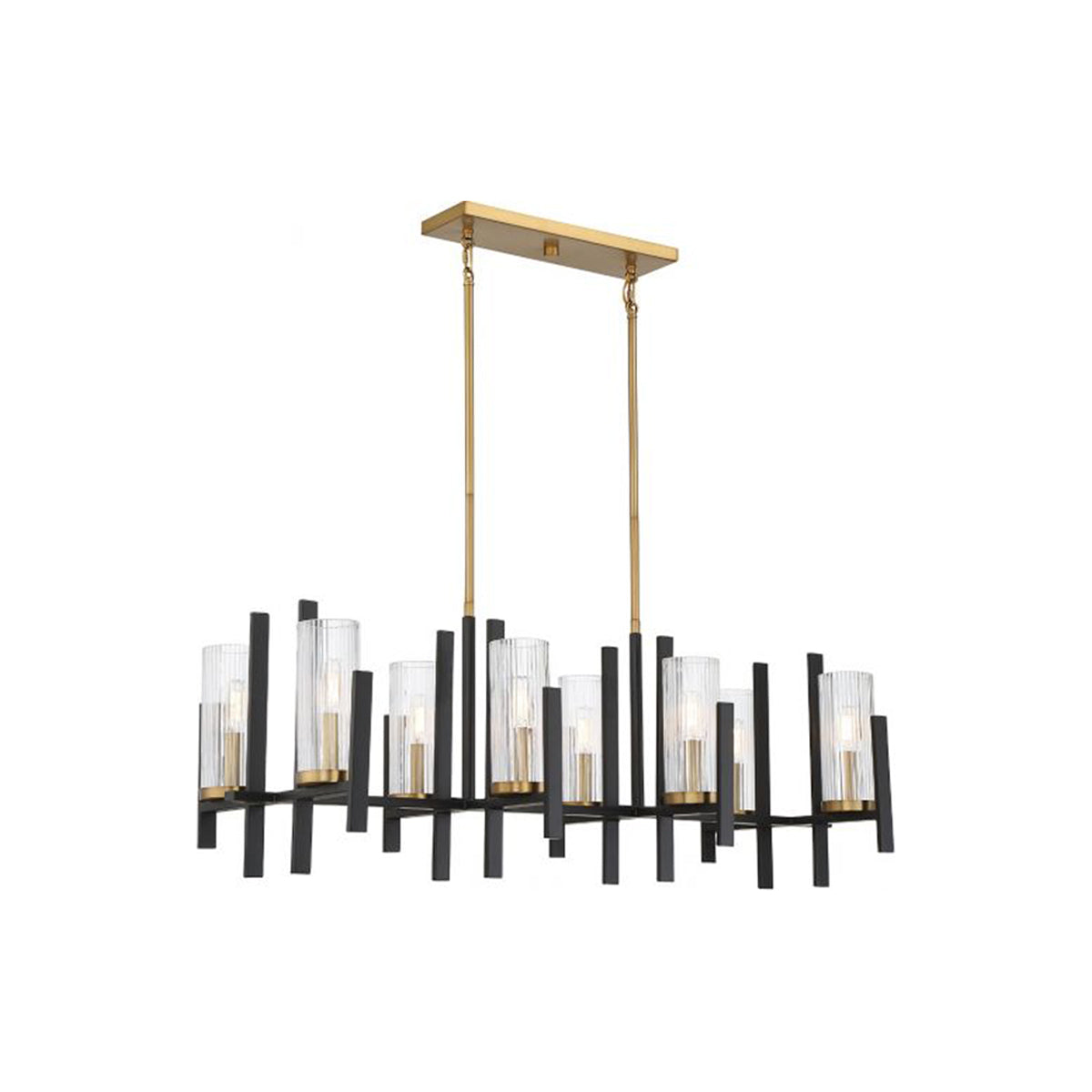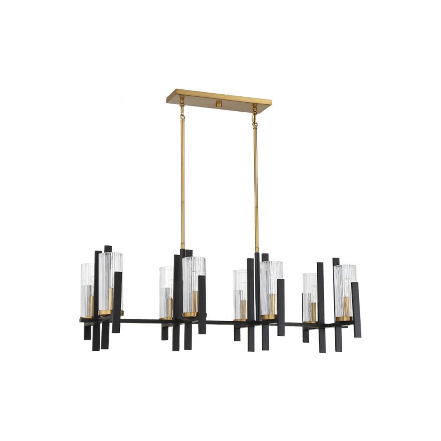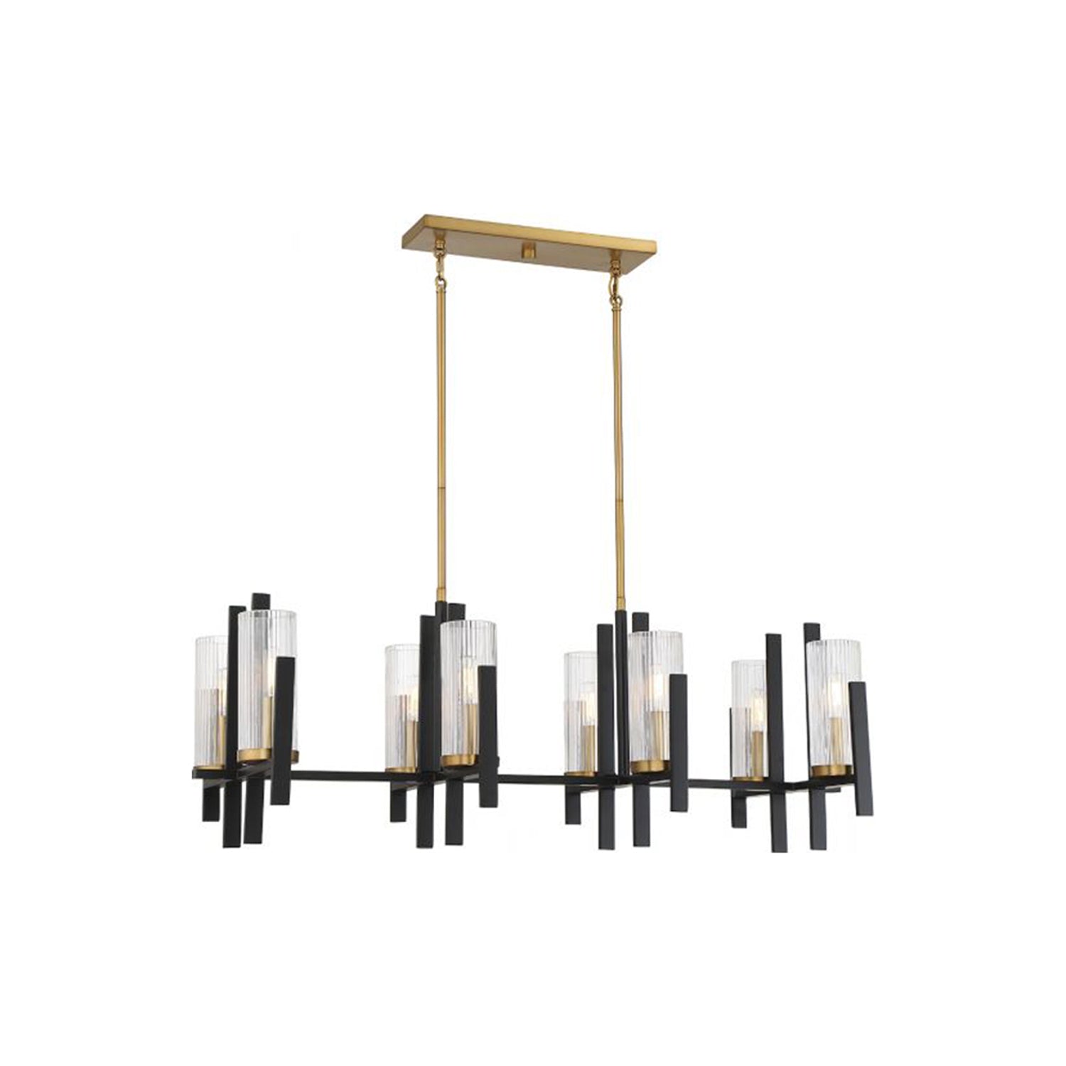 Add Mid-Century Modern style with a deliciously bold energy to a kitchen or dining space. Mixing finishes and incorporating delicate glass with metal, the Midland Linear Pendant Light from Savoy House makes a definitive statement with clustered lights and linear styling, perfect for highlighting a custom-designed transitional setting.