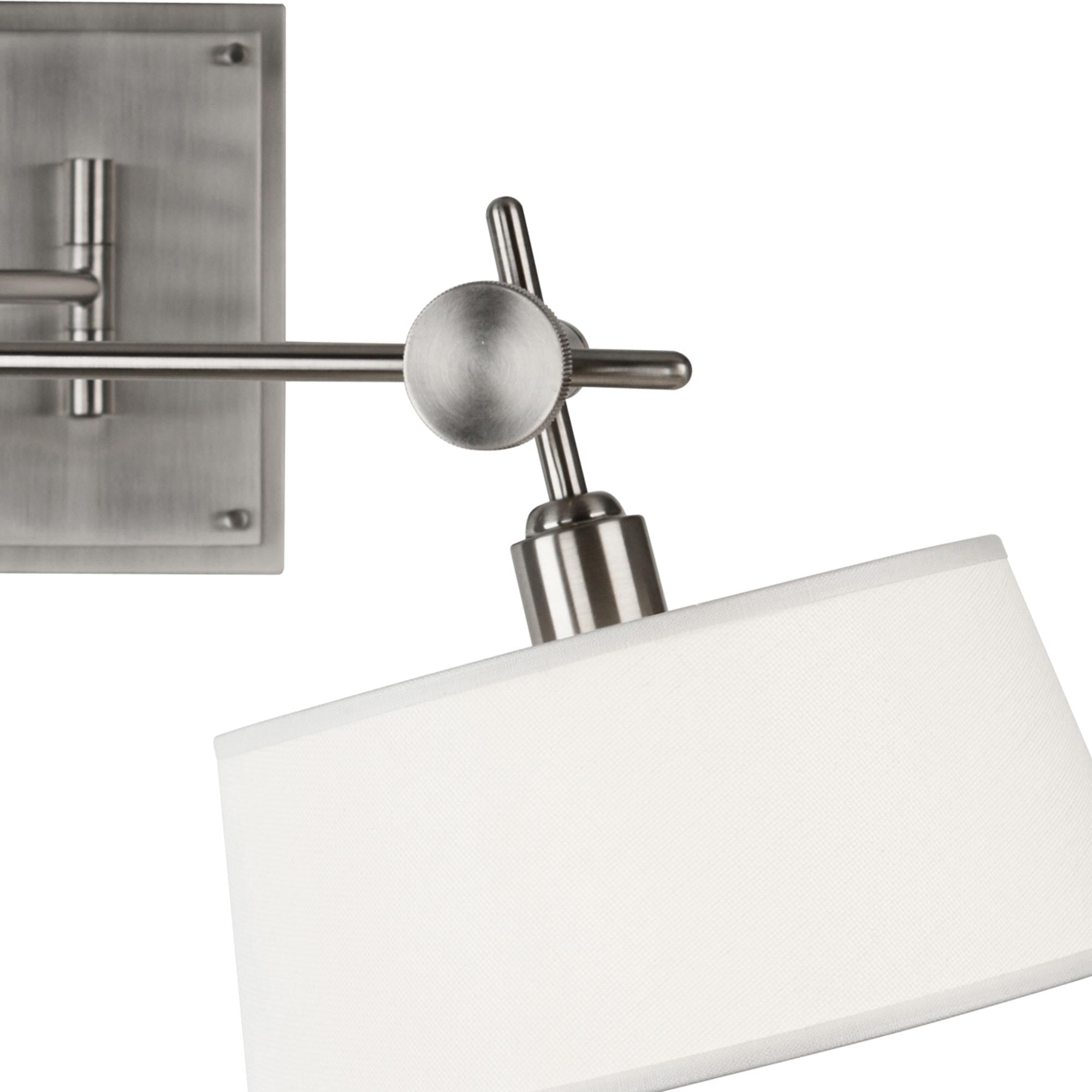 With a functional approach unique to industrial design, the Miles Wall Light from Robert Abbey offers a busy aesthetic blending metal and a fabric shade with adjustable lighting options to make the most of lighting.