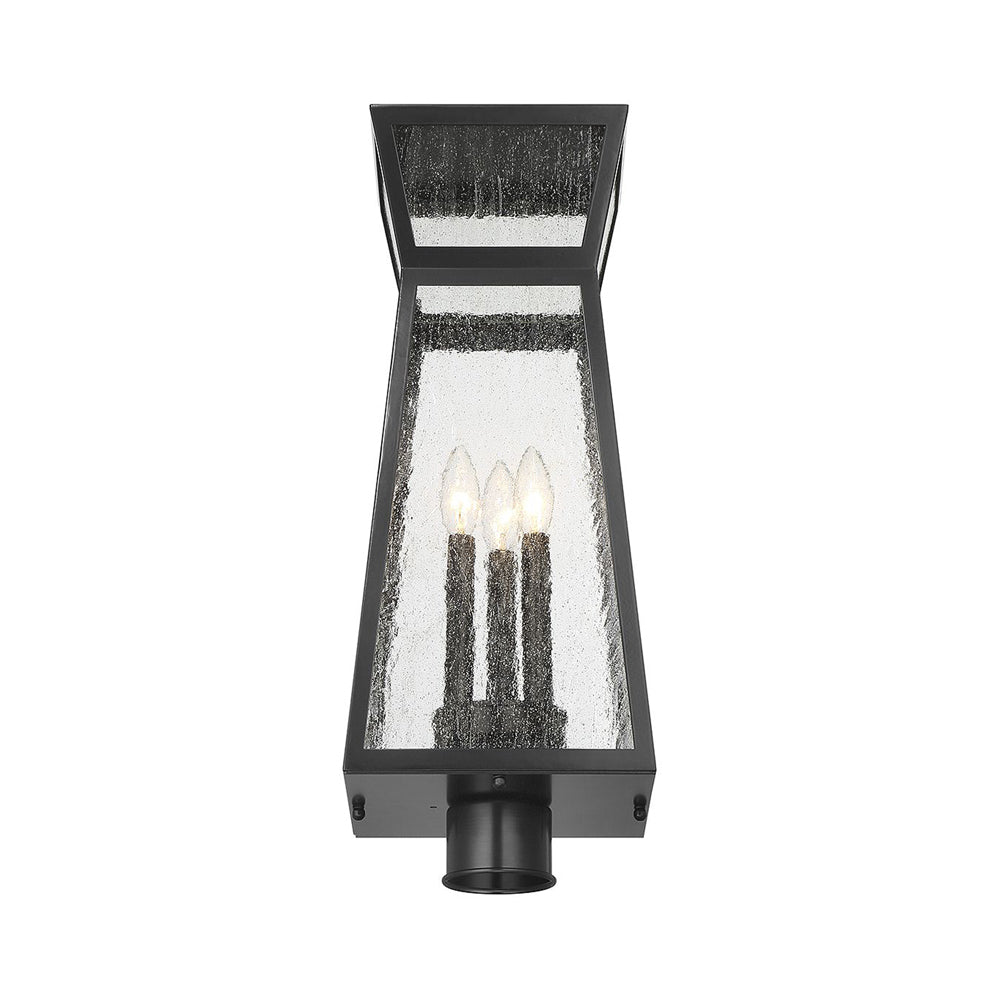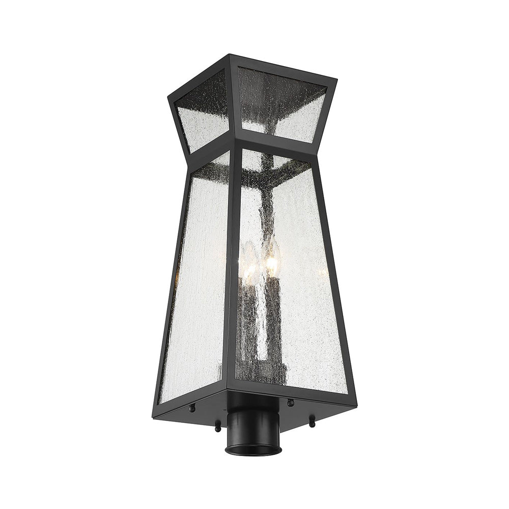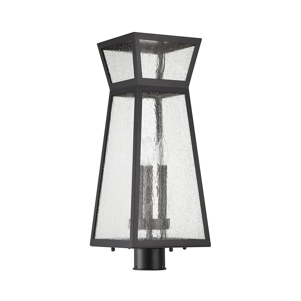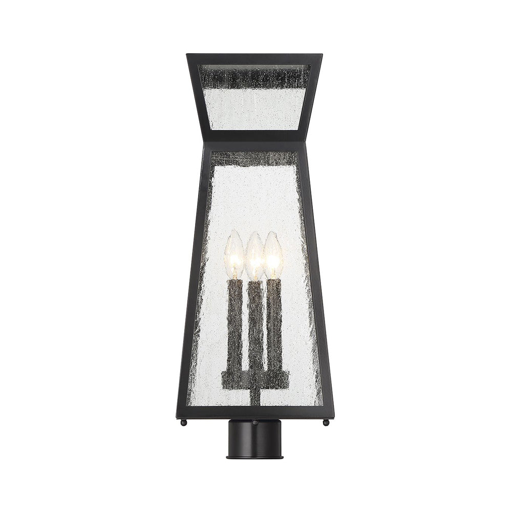 The Millford Outdoor Post Light from Savoy House delivers a perfect blend of old and new as it illuminates a custom garden space or walkway. Intriguing silhouetting begins with a concave lantern-inspired frame fashioned of matte black metal with clear seedy glass panels creating a romantic motif. Candelabra-style interior lights add softening allure with traditional elegance.