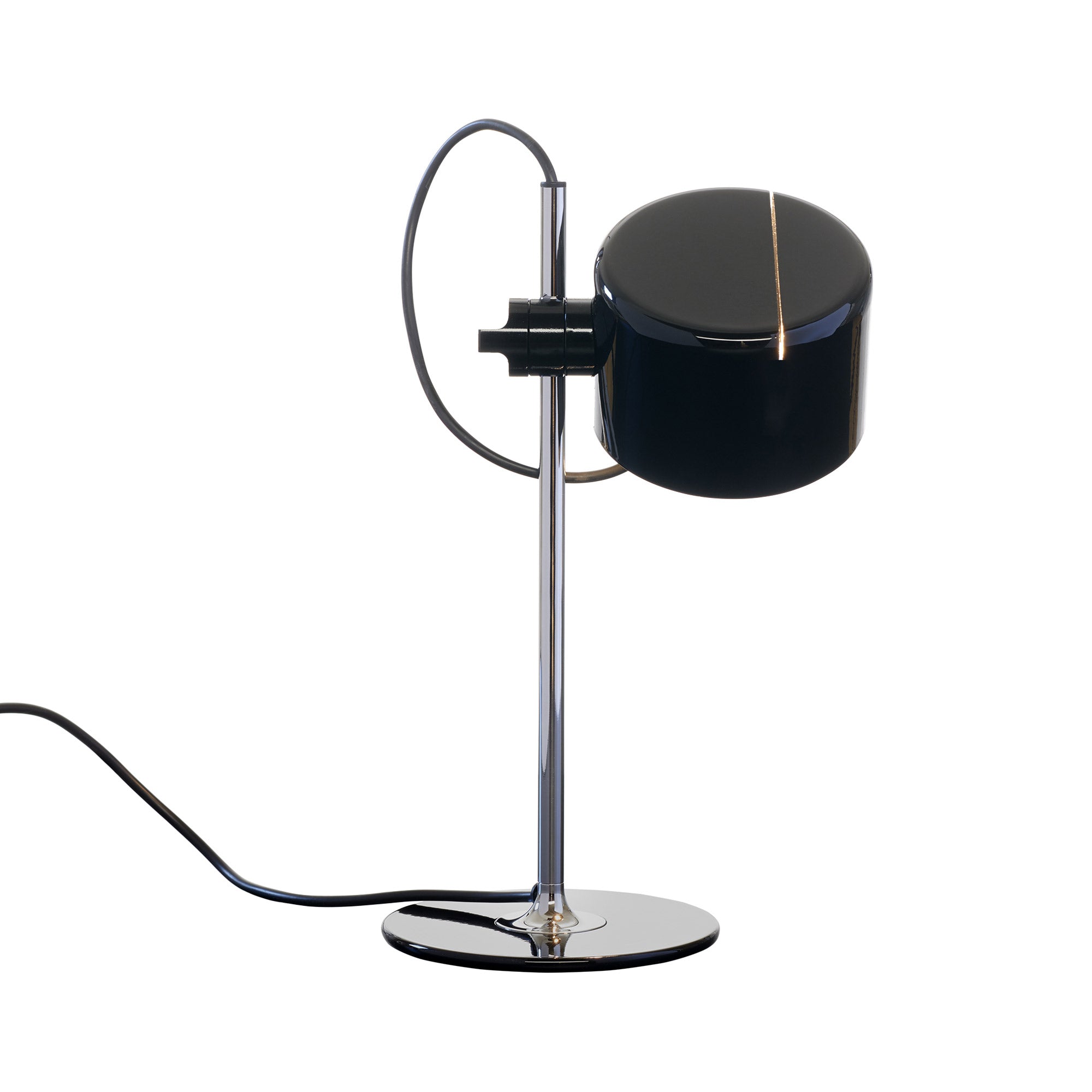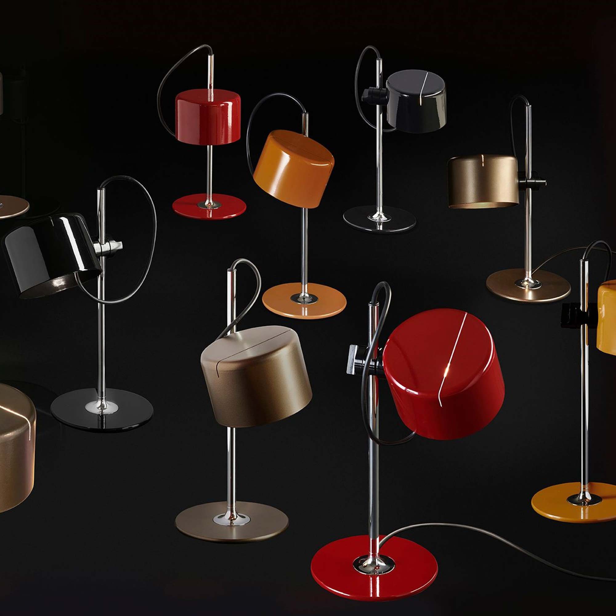 Oluce is expanding the family with the introduction of Mini Coupé, a smaller scale version of the table lamp, available in a stunning new contemporary range of 4 new colors, Lacquered black - Anodic bronze - Scarlet red and Mustard yellow. Coupé originated in 1967 from the creative intuition of Joe Colombo, who initially designed it as a variation on a lamp already in the company’s collection. At 13.4" in height, the Mini Coupé wittily maintains all the vigour common to Joe Colombo’s designs of the 60s. The Mini Coupé, with its chrome stem and semi-cylindrical shade, retains the distinctive profile and bold character which define the Coupé collection and which have always made it an exceptionally modern lighting range, now even more complete. As a testament to its international success, it won the International Design Award from the American Institute of Interior Designers in Chicago the year after its creation and is included in the permanent collection of both the MoMA in New York and the Neue Sammlung Museum in Munich.