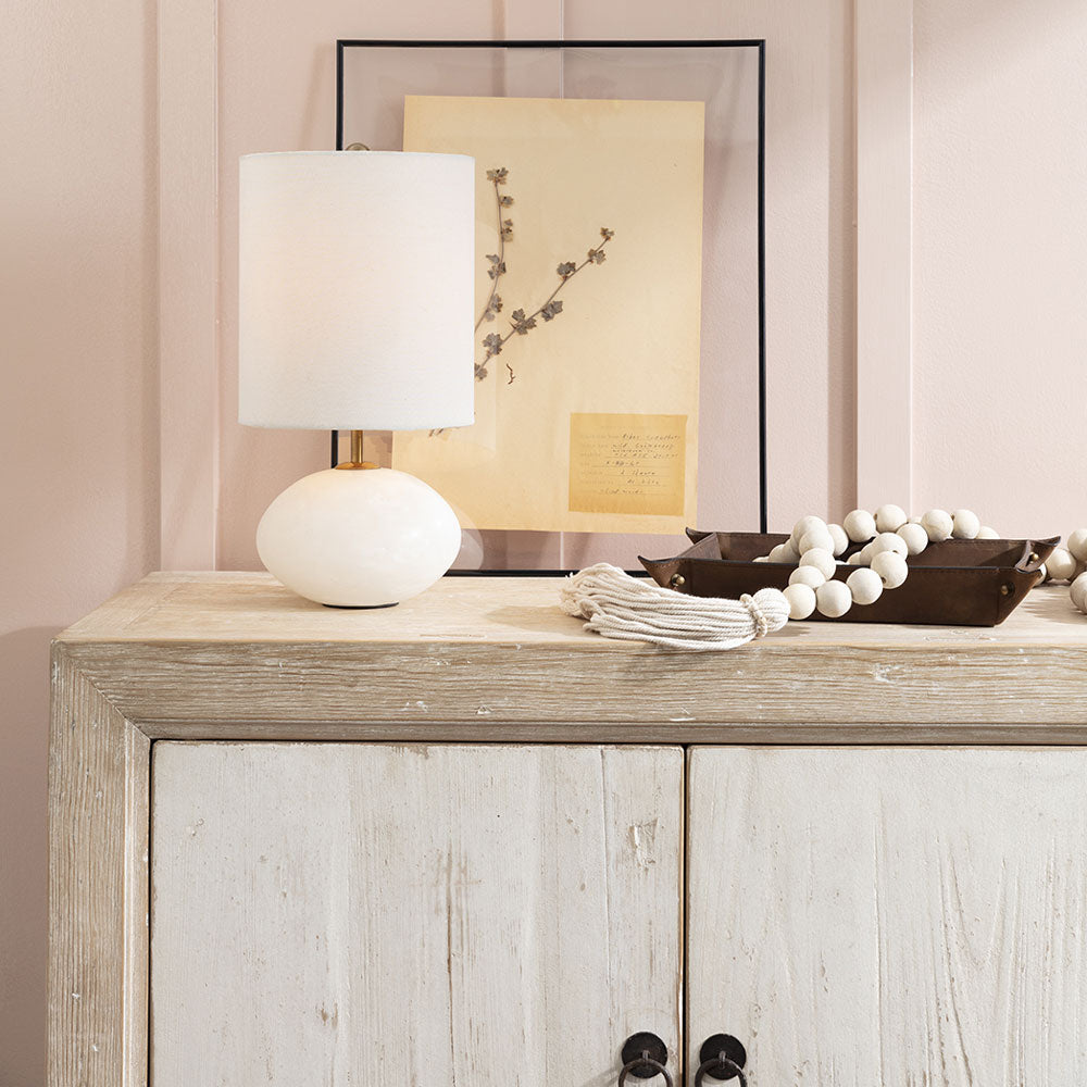Silhouetting dominates the exotic look of the rustic Mini Orb Table Lamp from Regina Andrew. Follow the easy, clean lines of a relatively minimalist motif with an abstract orb body with an extra tall fabric shade creating captivating proportion.