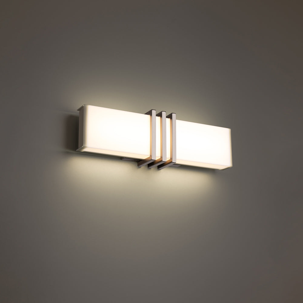 Return to retro style with a charming fixture delivering energy-efficient lighting and a whimsical motif. The Minibar LED Vanity Wall Light from dweLED tempers design simplicity with a charming reflection of simplicity and just enough attitude to be noticed. Energy-efficient illumination glows from an acrylic diffuser set in metal framing with a chic trio of banding at its center.